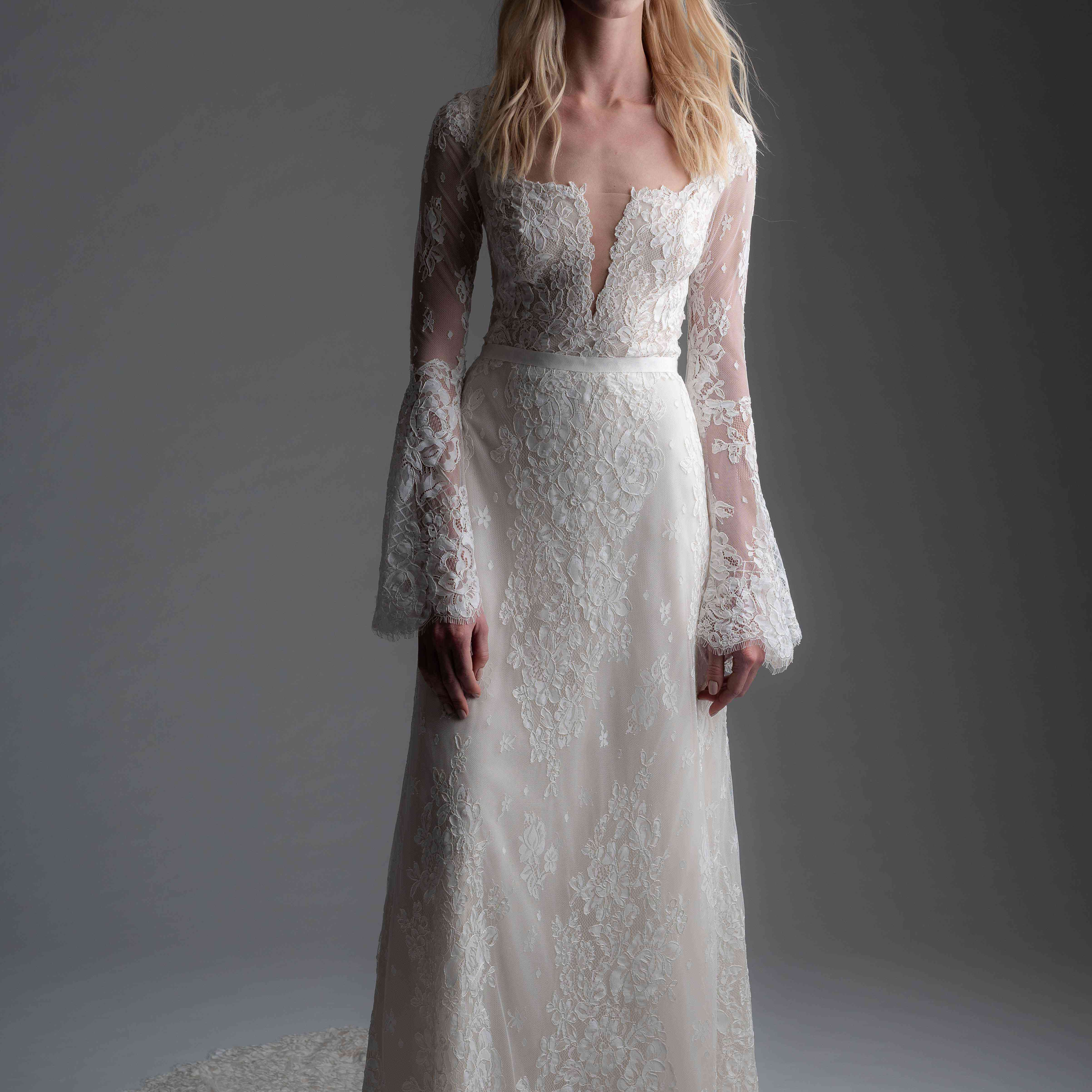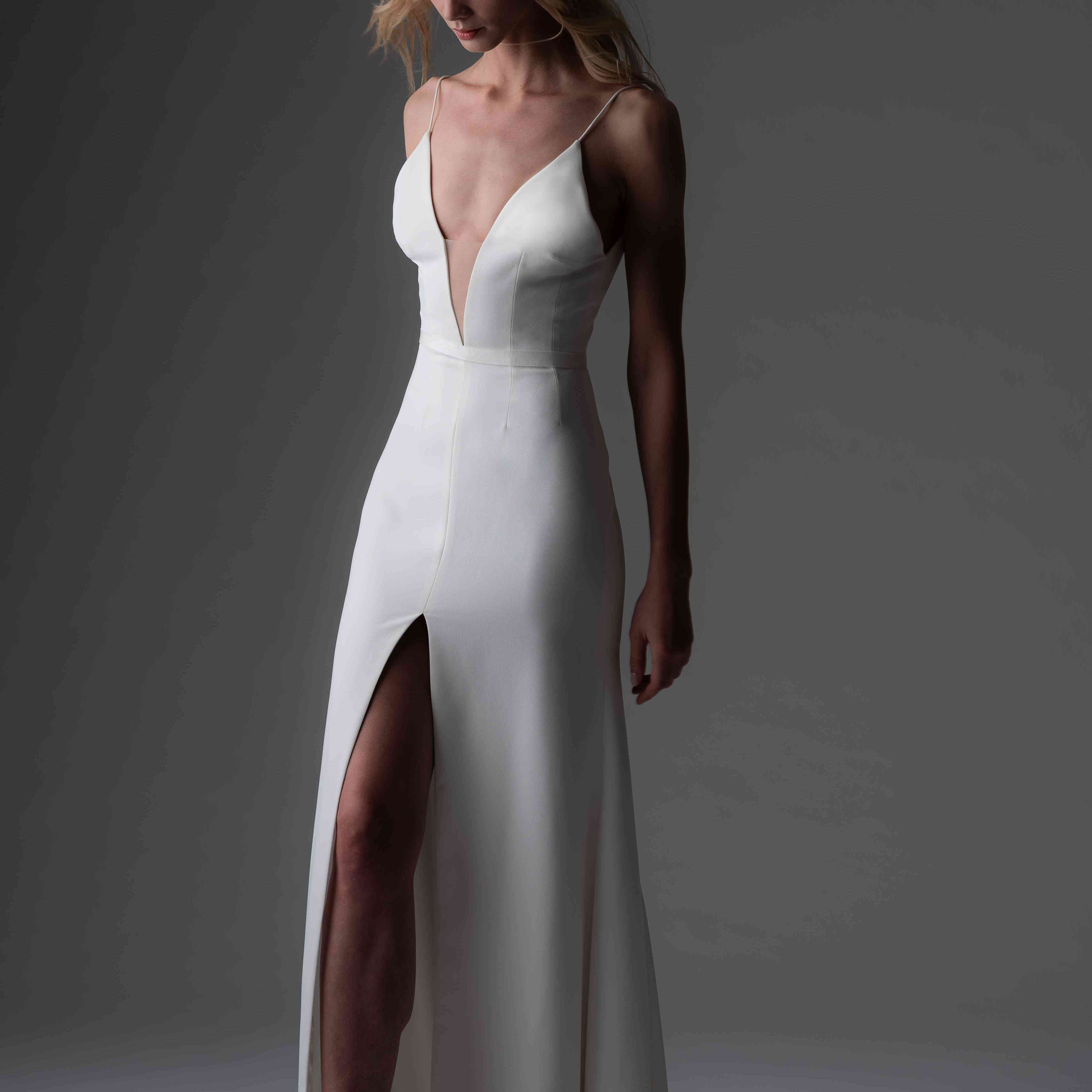 如下所示,她的设计模仿了一种低调的优雅,既赞美每件衣服的工艺,也赞美穿着它的女人。继续滚动看看2020年秋季、2020年春季和2019年秋季婚礼系列丽塔·维尼里斯(Rita Vinieris)著《Alyne》。