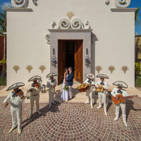 “我们想在某种程度上融入我们的两种文化——我是黎巴嫩人,我是墨西哥人,”唐娜说。于是,我们以肚皮舞(玛雅武士的仪式)和萨克斯管手开始了庆祝活动。这对情侣在詹姆斯·亚瑟的《Say You Won 't Let Go》的伴奏下表演了他们的第一支舞,随后DJ开始了派对。自然,夜晚在酒店的满月派对上结束。