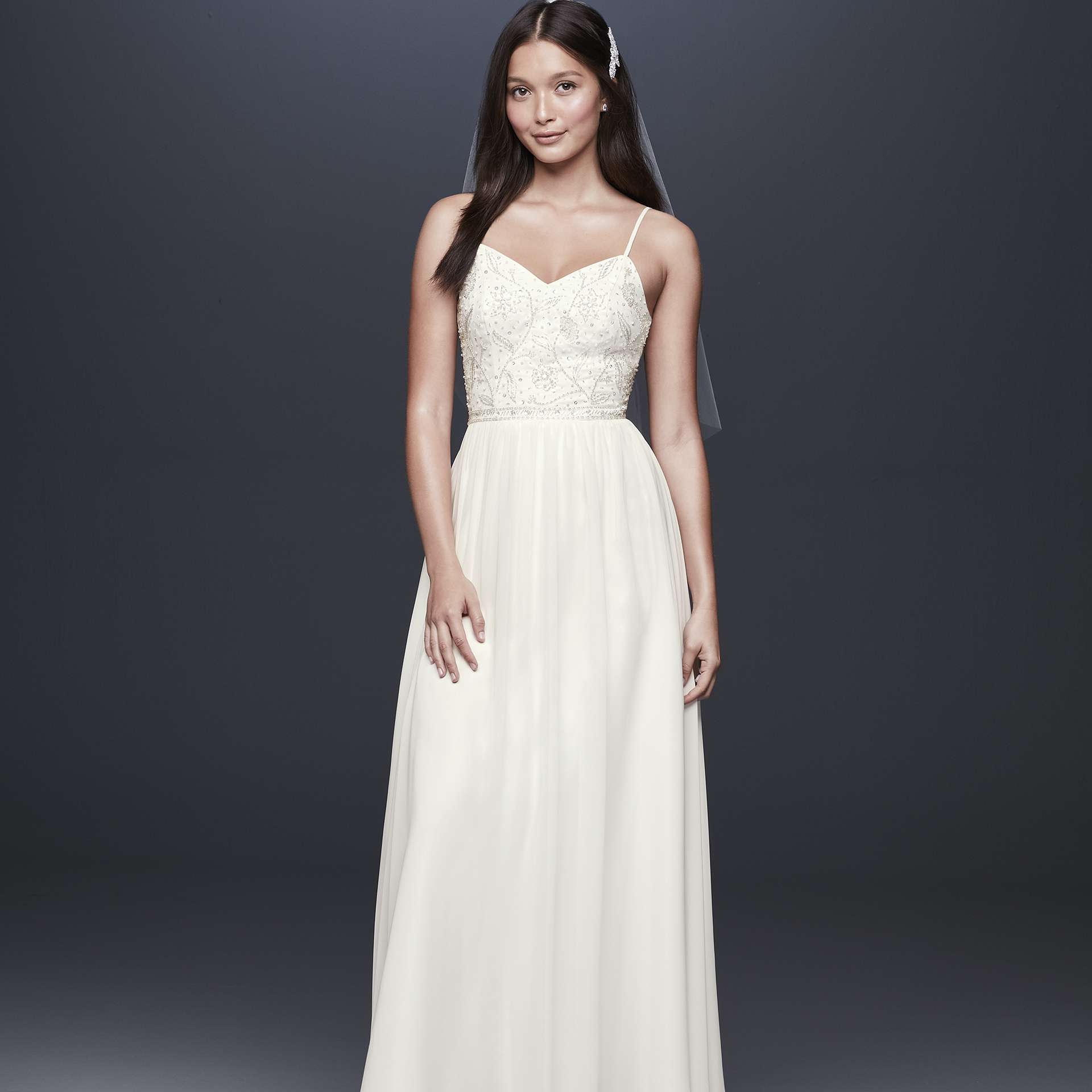 风格HQ07W94D,单套婚纱的细肩带上衣和接缝。
