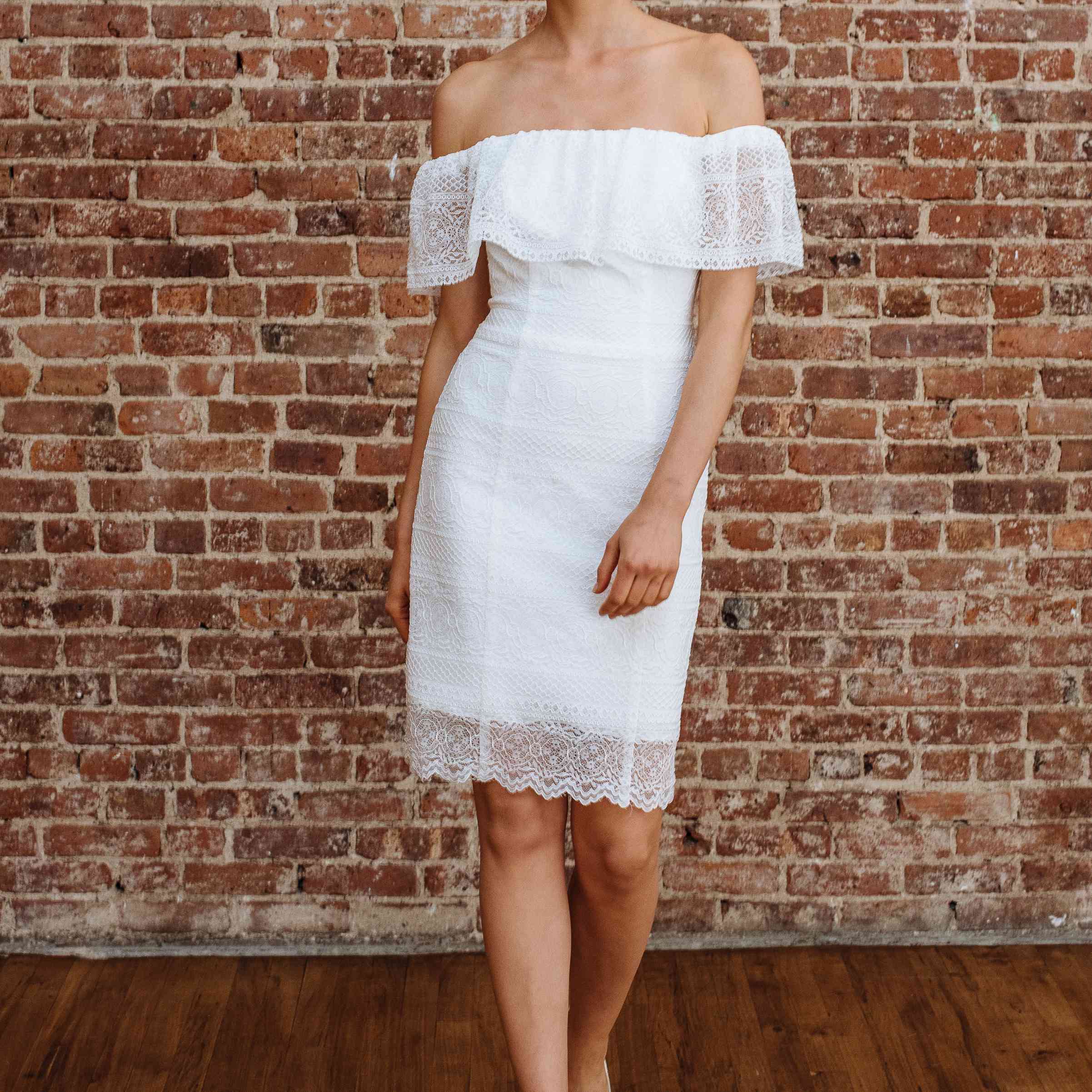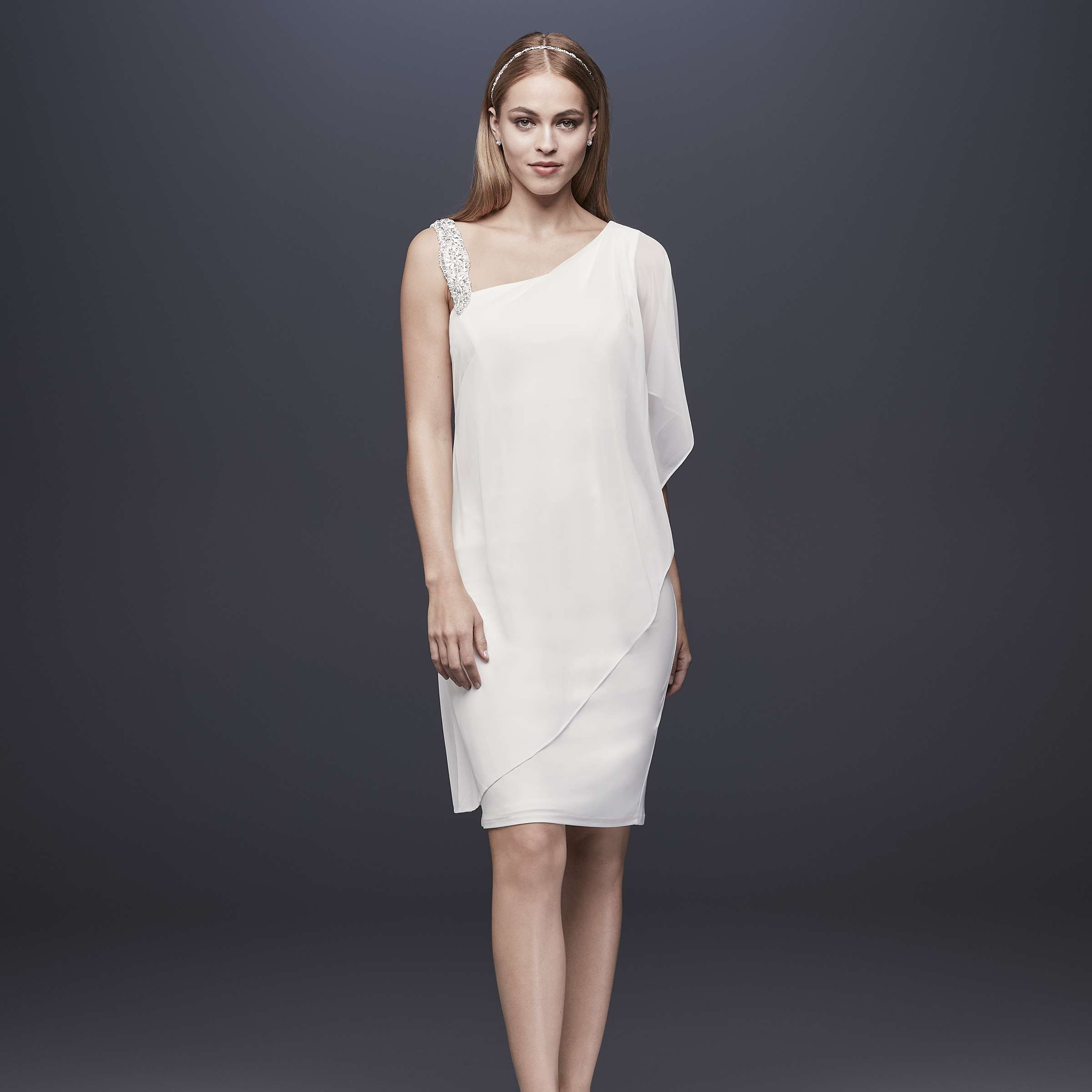 风格184781DB,单肩蕾丝迷你婚纱礼服。
