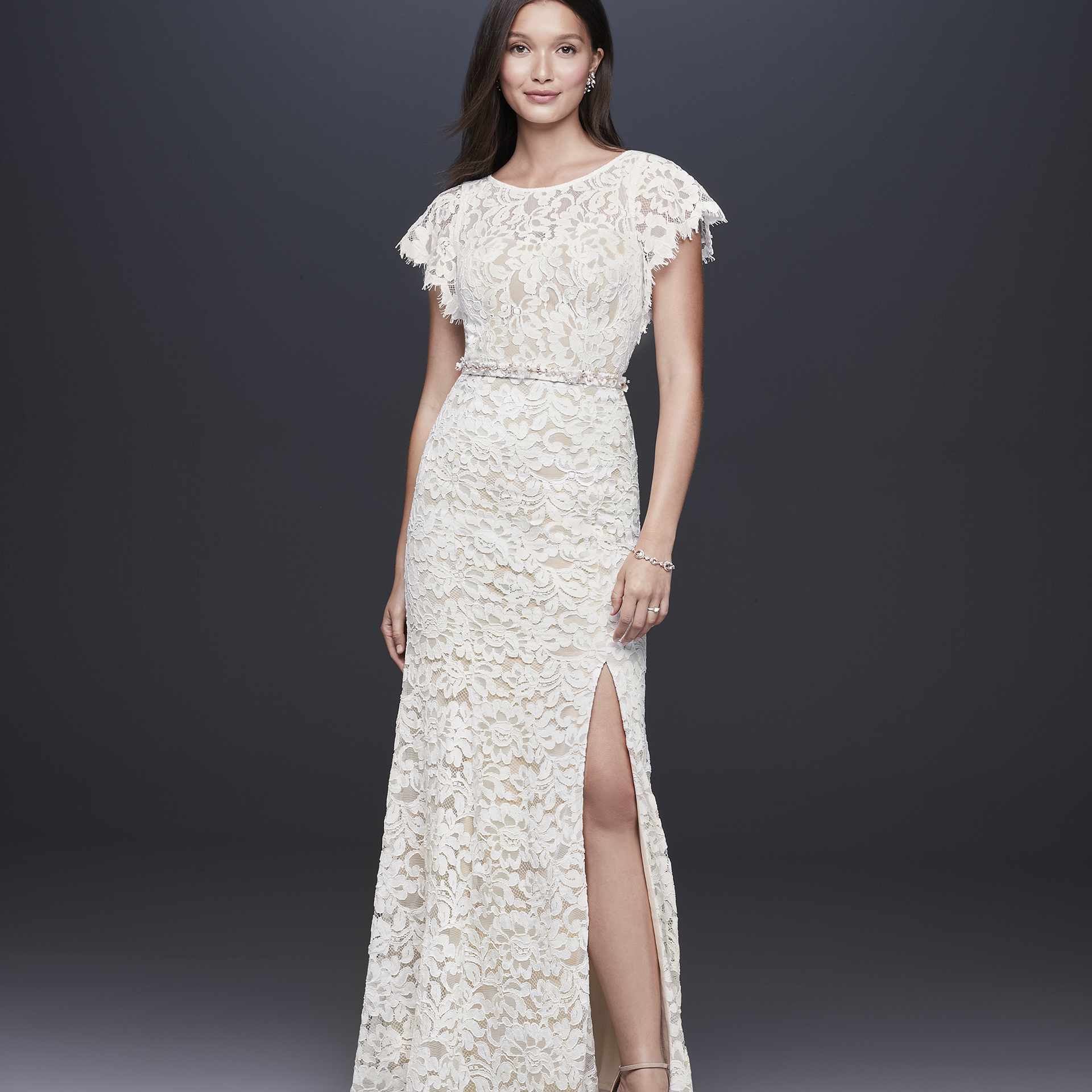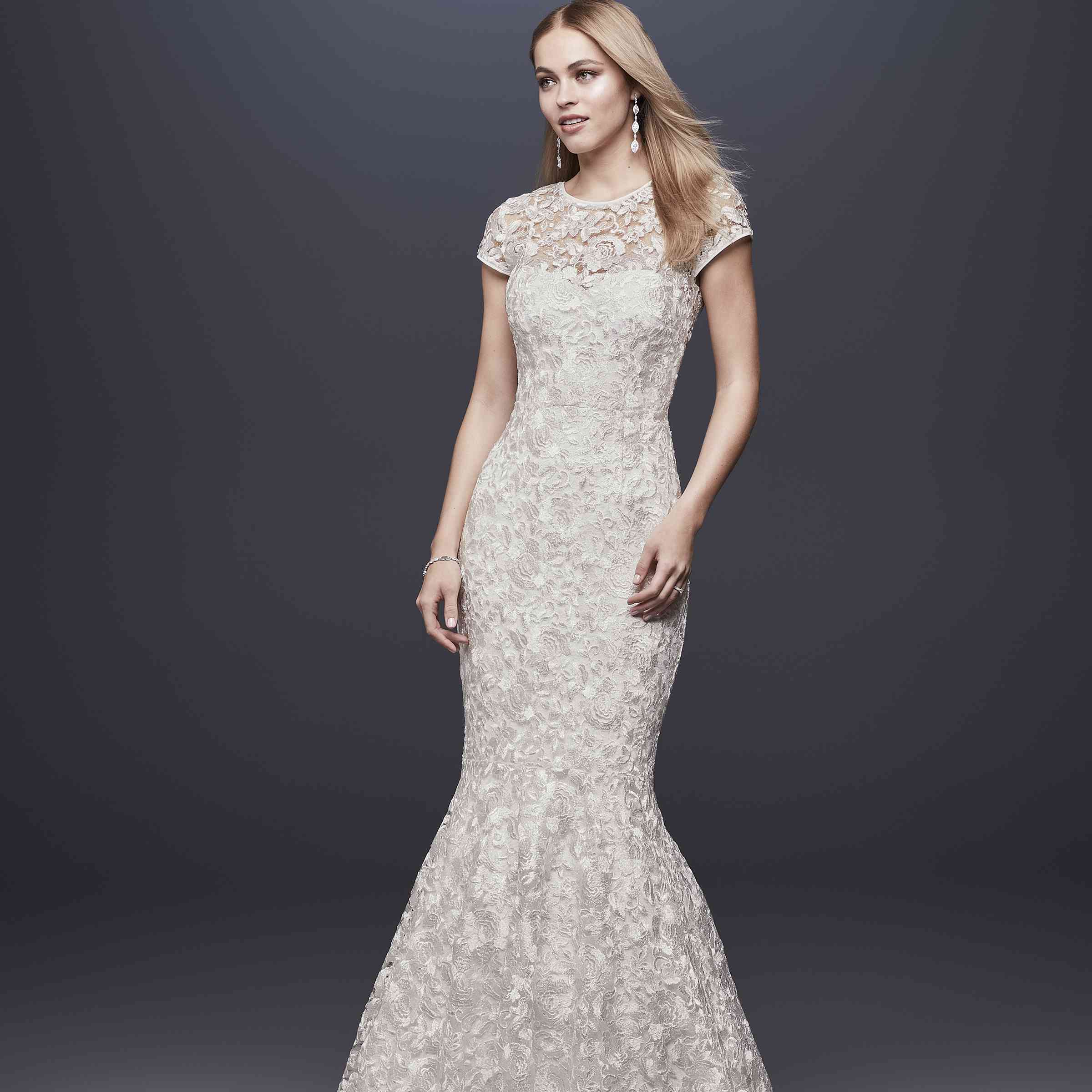 风格SDWG0804,花卉蕾丝及膝婚纱短袖。