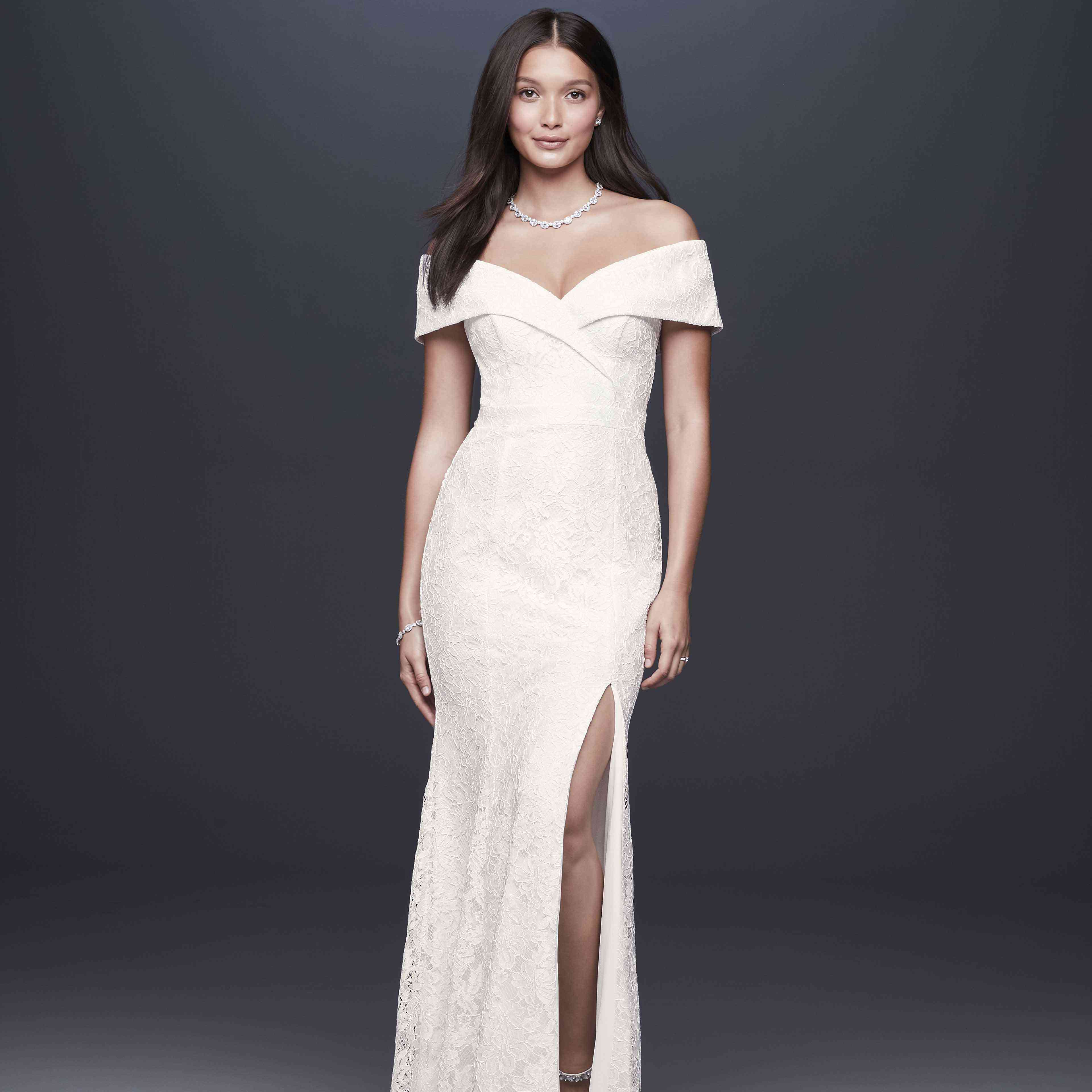 风格DB1531,场外的肩蕾丝婚纱与缝隙。