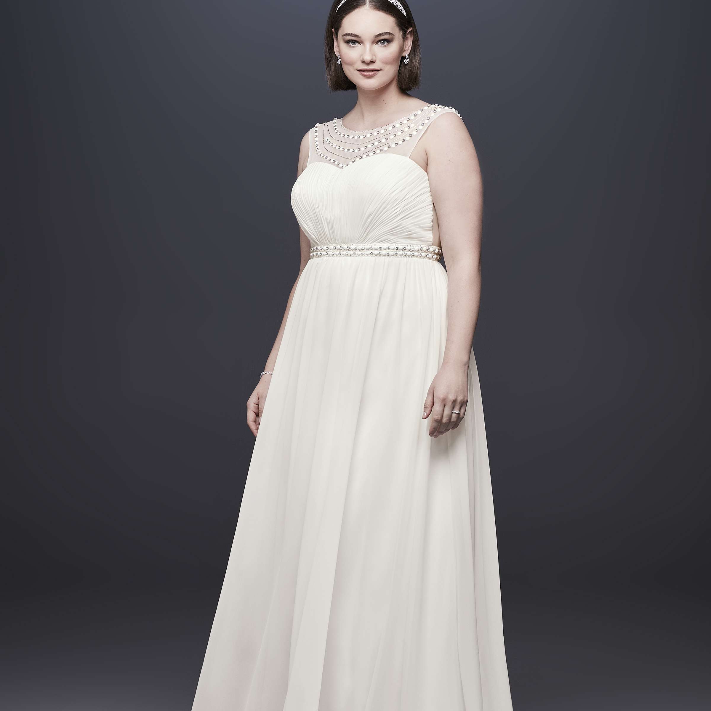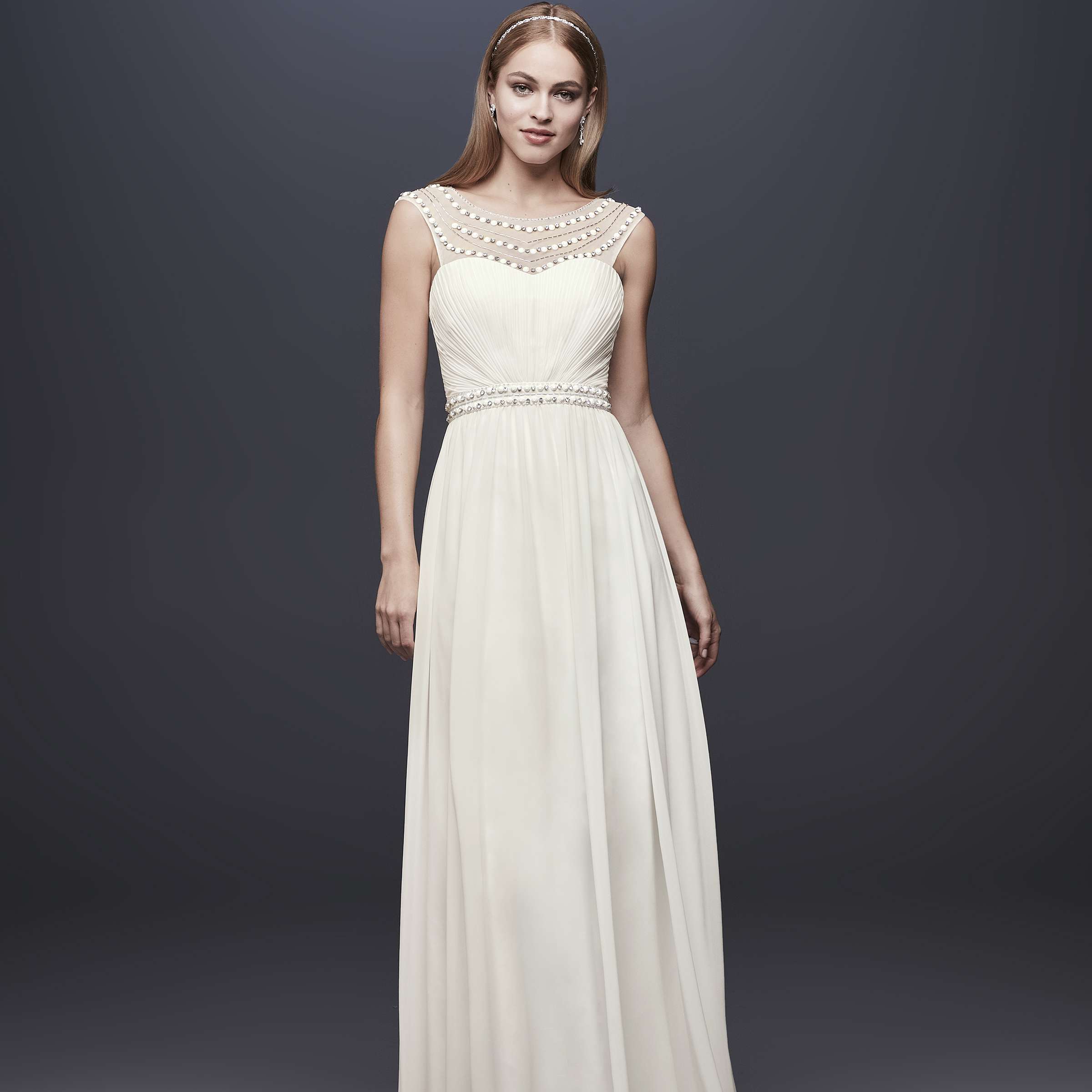 风格184645DBW,A线婚纱点缀腰部和领口。