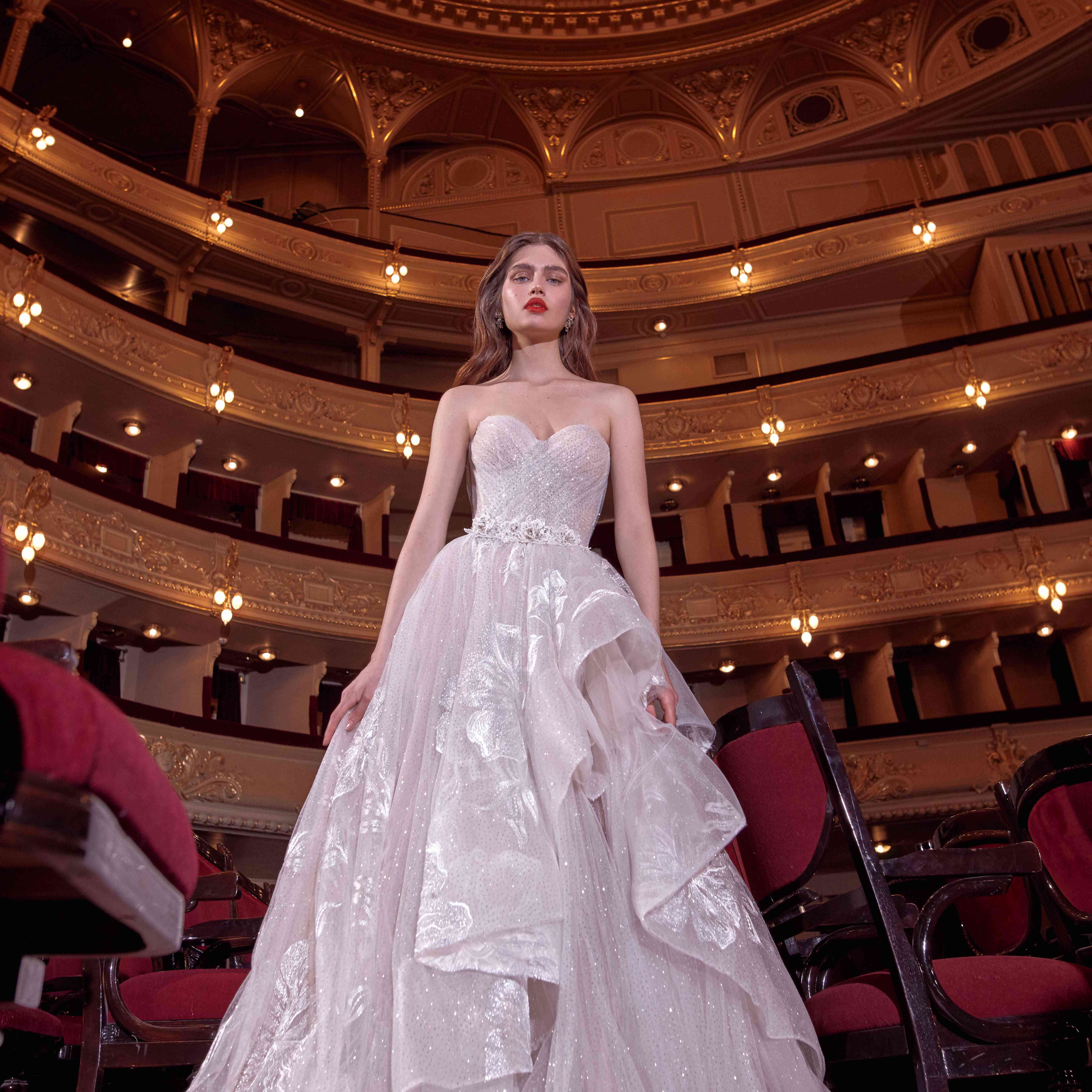 制作场景集的灵感来自于热门音乐剧梦幻女郎。下面你会看到Galia Lahav Couture的2020年春季婚纱系列。