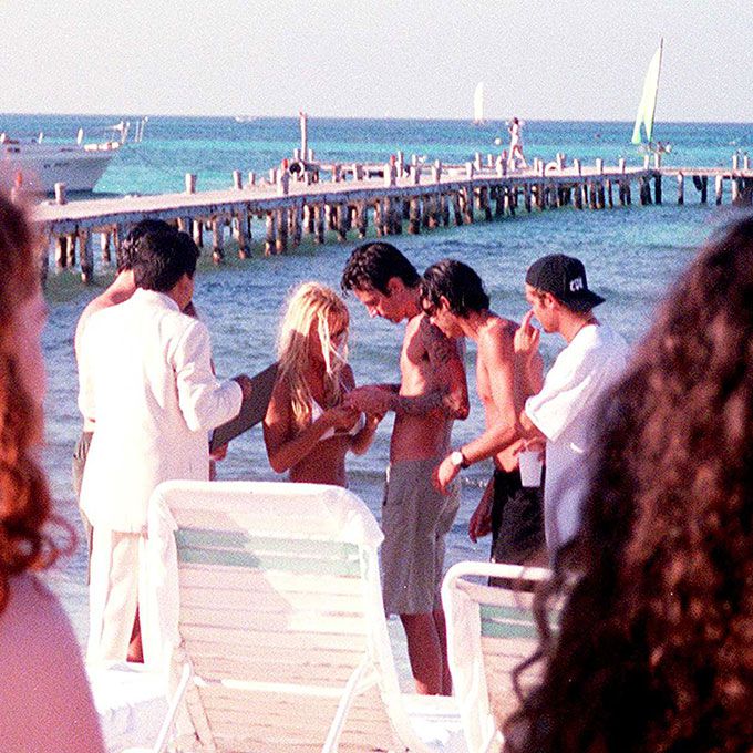 1995年,帕米拉·安德森身着白色比基尼与汤米·李结婚。