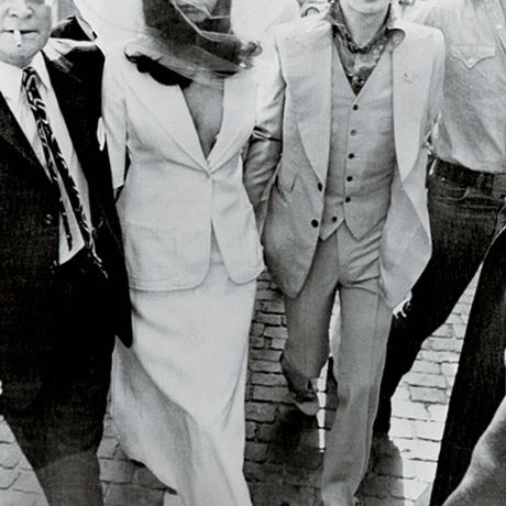 比安卡·佩雷斯-莫拉·马西亚斯结婚米克·贾格尔伊夫·圣·洛朗(Yves Saint Laurent), 1971年。