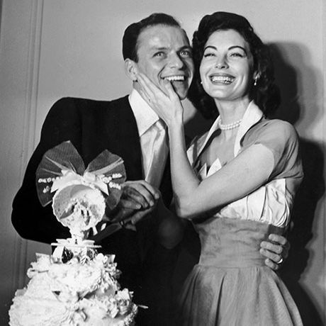1951年,艾娃·加德纳和弗兰克·辛纳屈身着吊带领婚纱结婚。