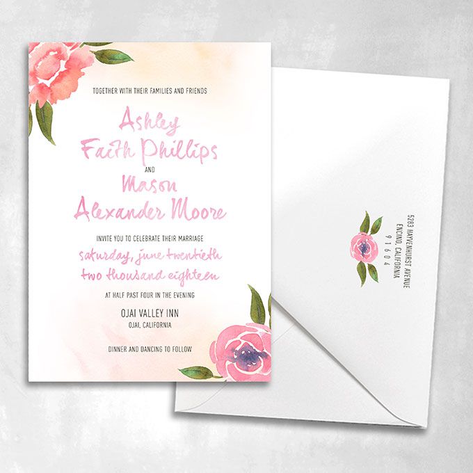“水彩花”的婚礼请柬,237 $ 100个邀请,爱与设计