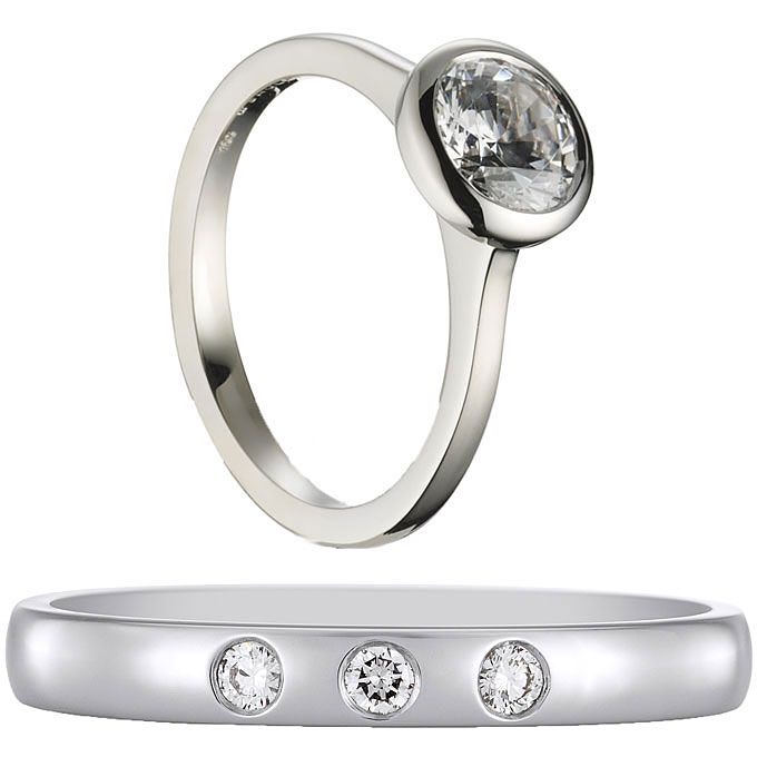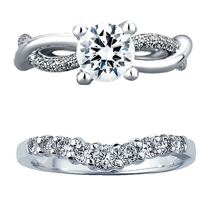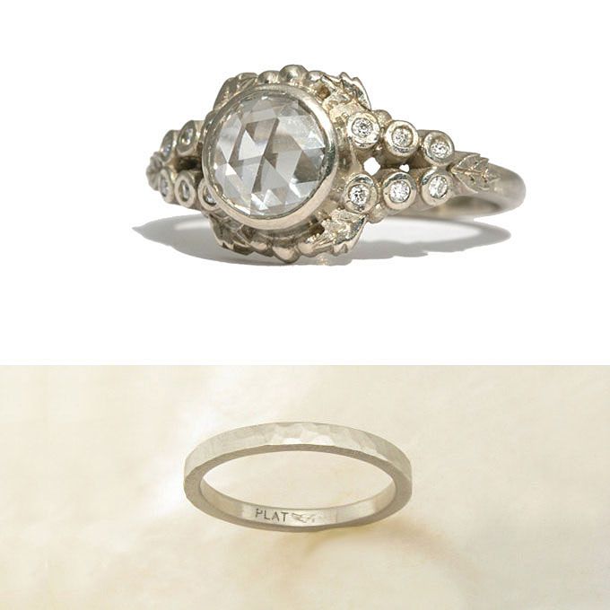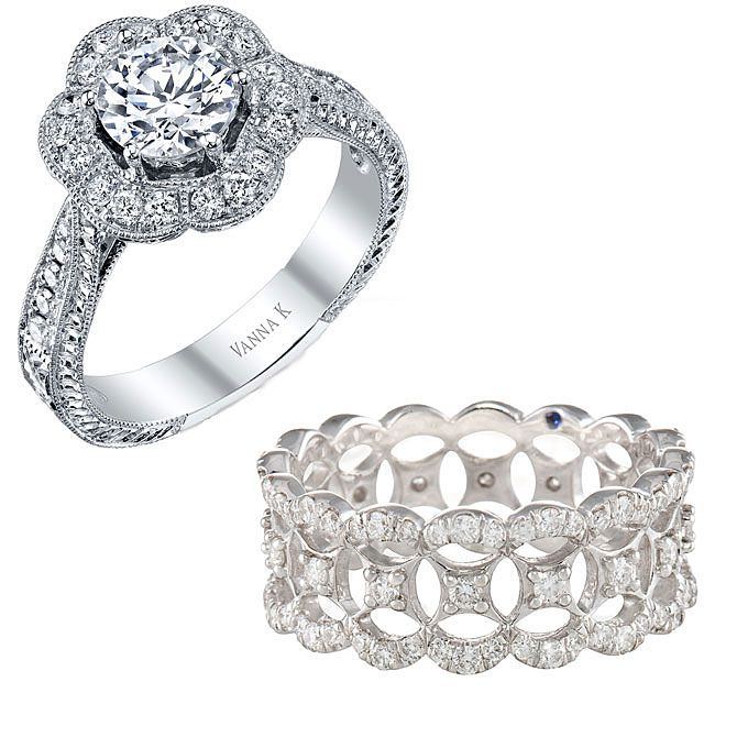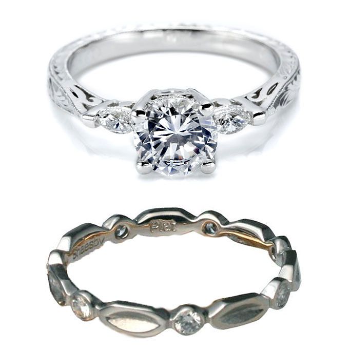 最上面看:18k白金订婚戒指,镶有钻石和圆形切割钻188bet官网88bet官网石中心石,3400美元(不含中心石),万纳ķ;18K白金和钻石乐队,$ 5,105,JudeFrances珠宝,可在Michael c .国际泳联