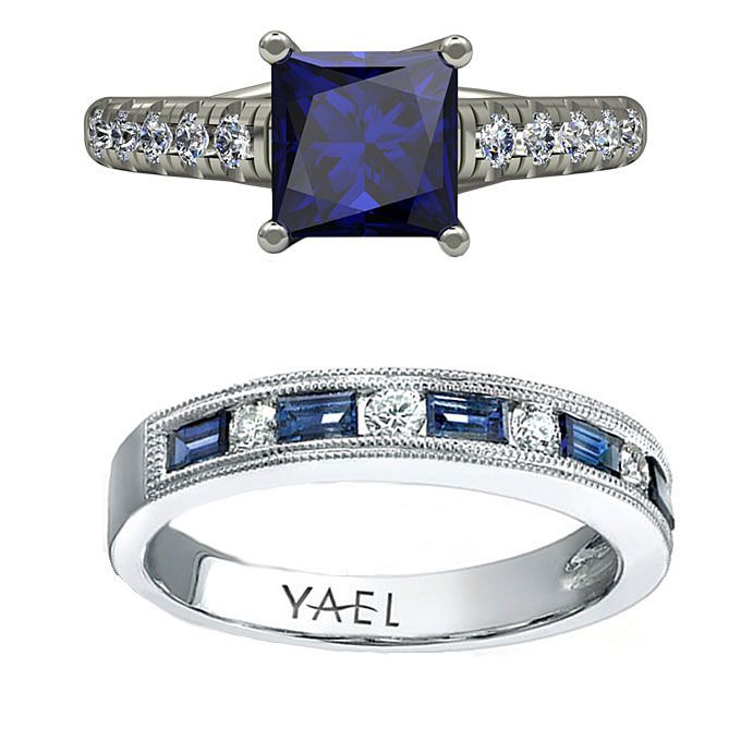 从上:18k白金和钻石乐队喝彩,价格根据要求,的Hearts On Fire;14K白金带钻石和粉红蓝宝石,$ 510蓝色尼罗河