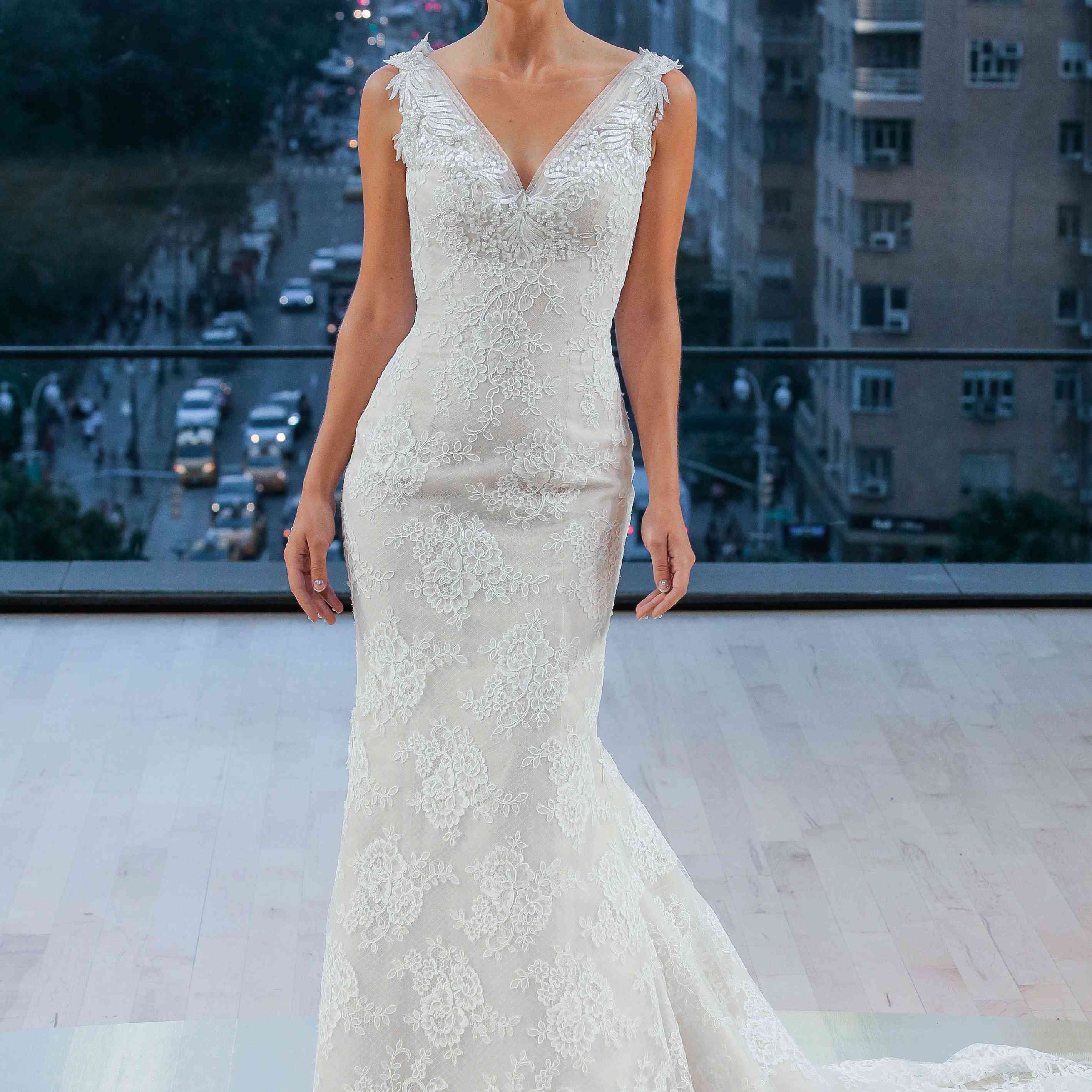 “佩里”蕾丝合体亮泽婚纱伊内斯迪桑托