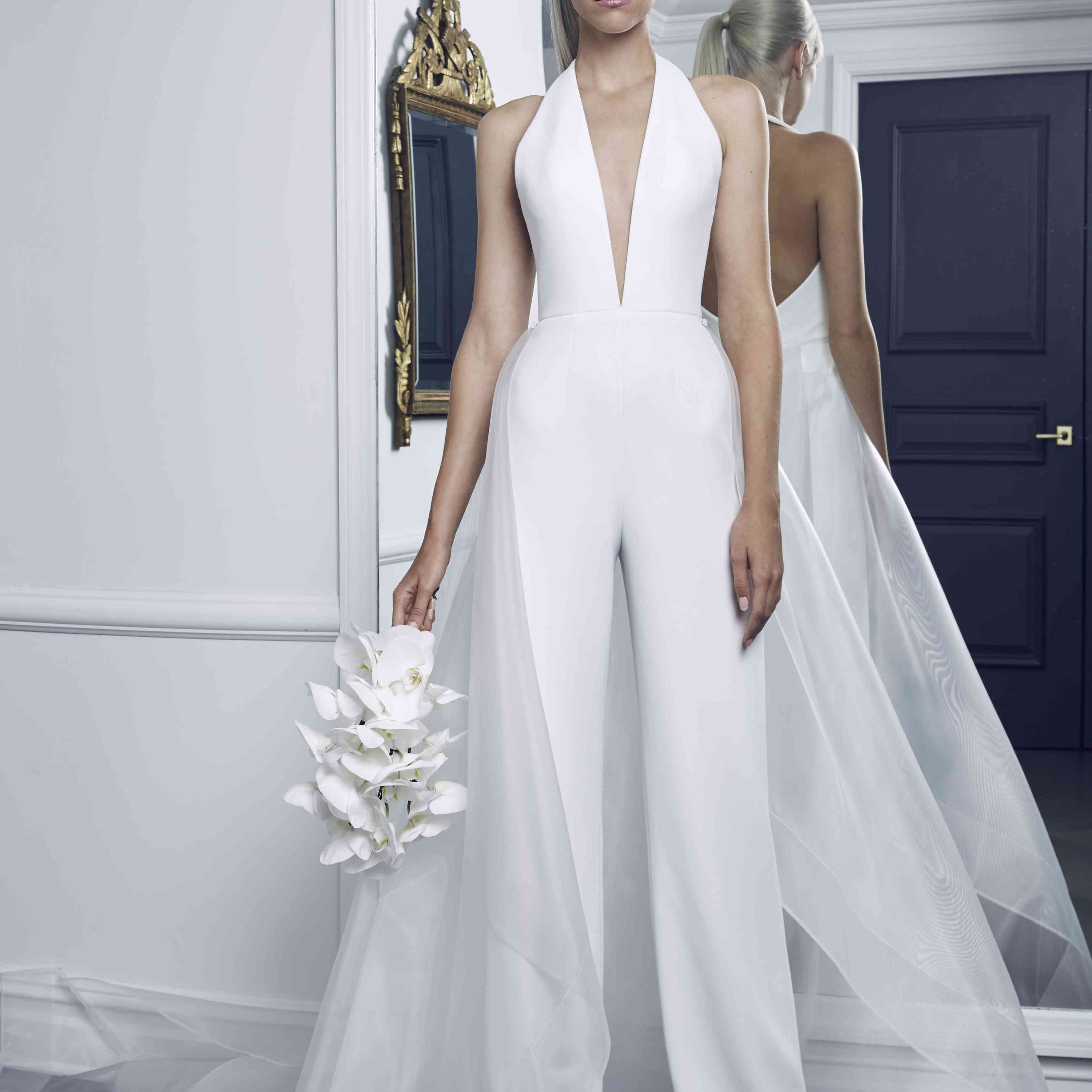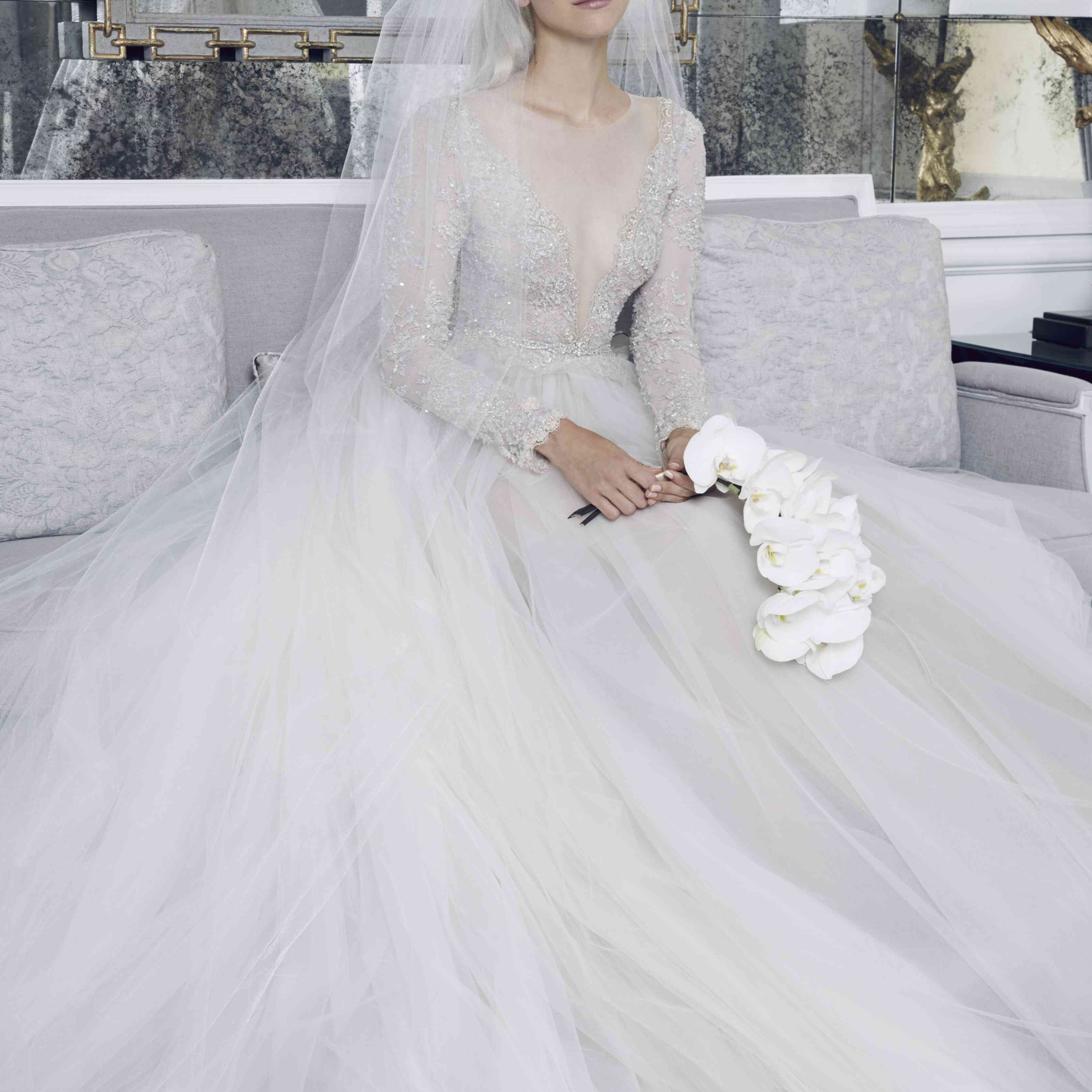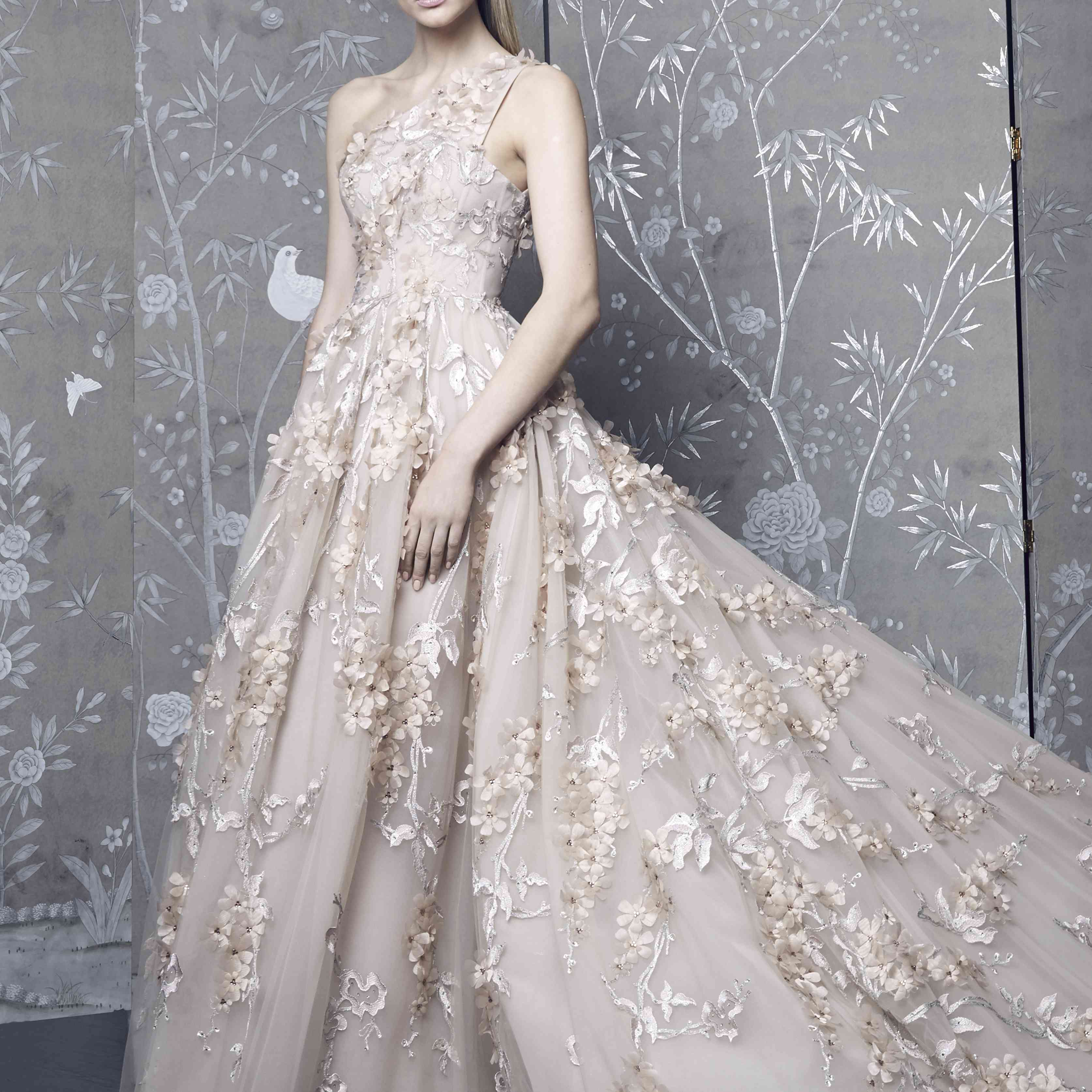 罗蒙娜·凯维扎(Romona Keveza)在婚礼上展示了她2018年秋季的婚纱新娘时装周. 滚动查看最新的婚纱从浮动的自然美态.