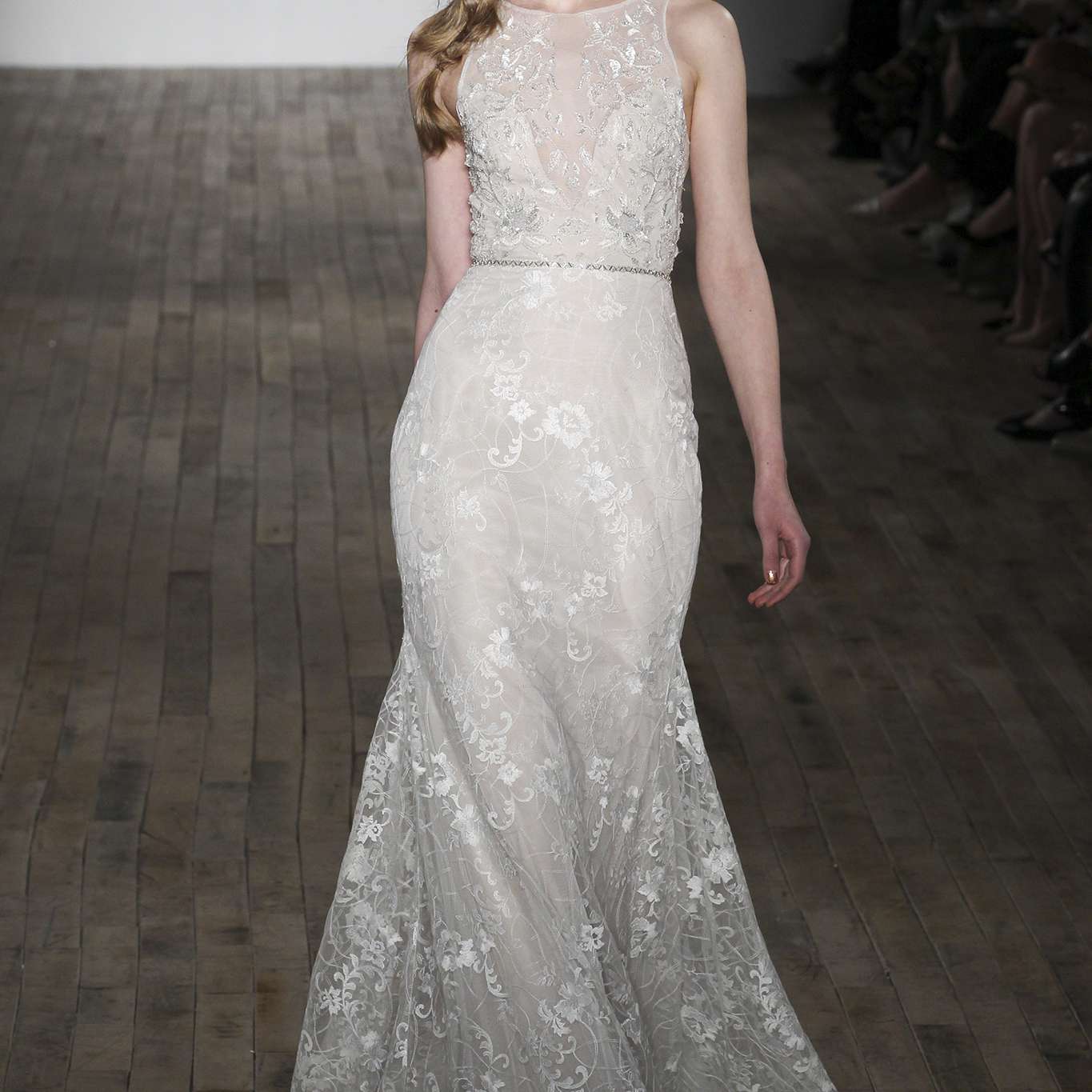 风格2758,象牙尚蒂伊蕾丝婚纱带小号的剪影,一个错觉露背上衣用串珠刺绣领口和羊绒深甜心底图,在腰部自然水晶装饰,一个纯粹的幻想回来,教堂火车,塔拉基利