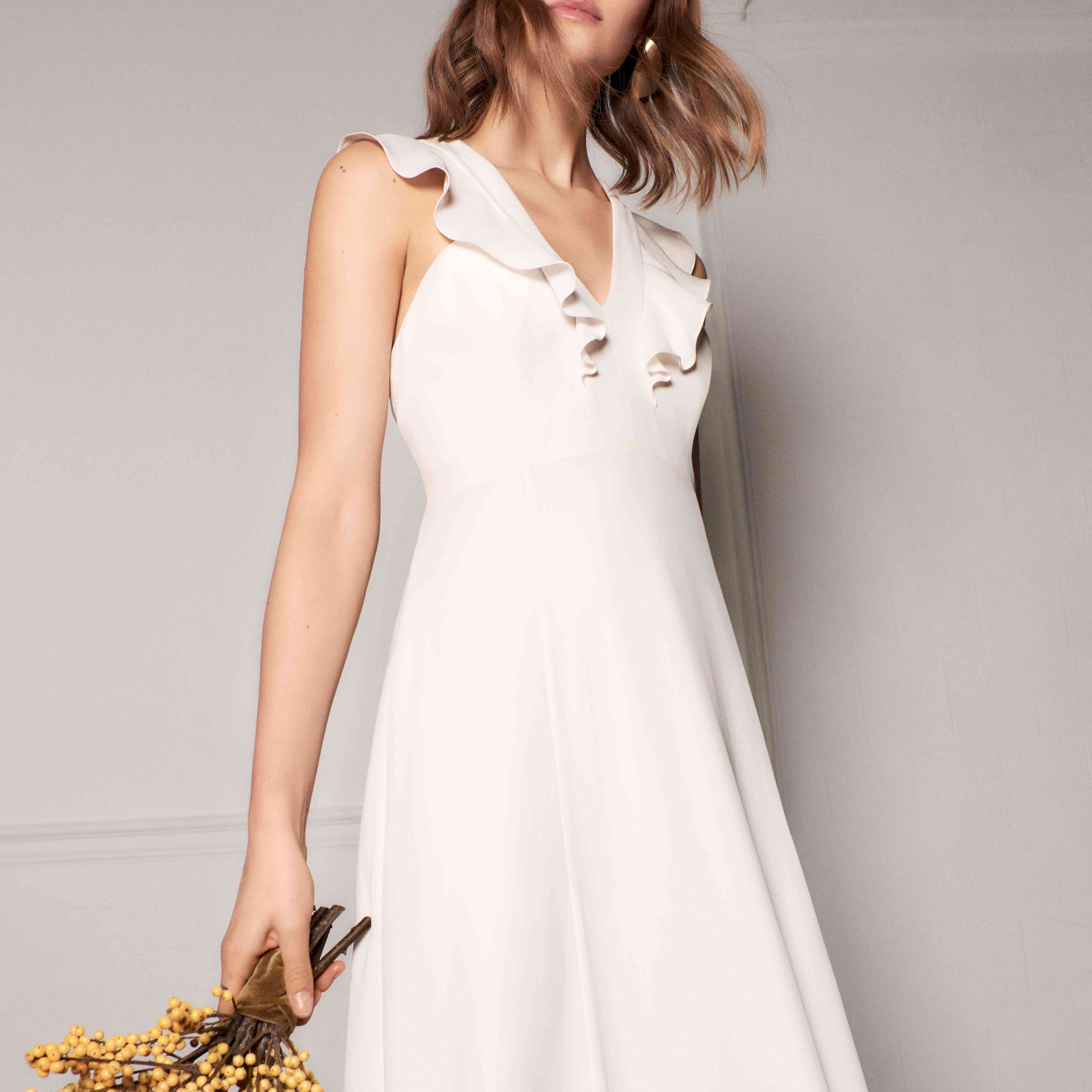 “Clementine”百褶裙及膝婚纱,吹口哨