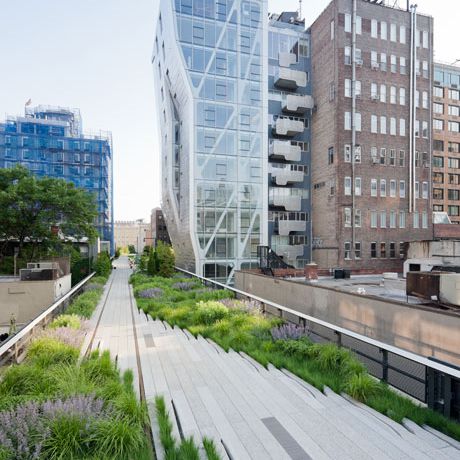 向西走到哈德逊河,在湖边停一下高线,一个已经转化为凉爽的城市公园和1.5英里长廊一个废弃高架轨道线。这是散步的理想场所(这是整齐地看到公寓和建筑物一对情侣的故事了),或者踢回,坐在长凳上,和人观看。