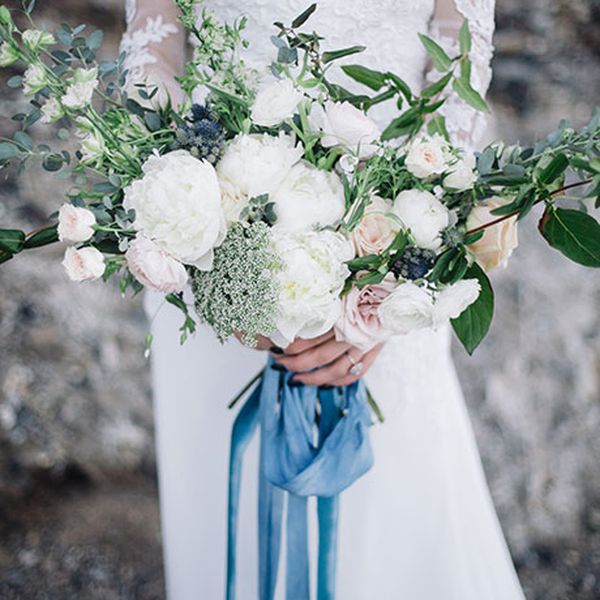 在花束的底部系上丝带不仅看起来可爱,而且是增加纹理、颜色、动感的好方法,而且是对婚礼主题或风格的微妙点头。