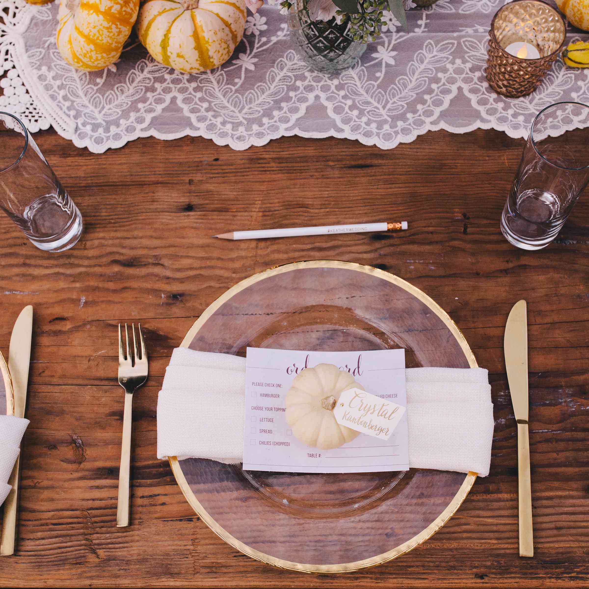 随着一张纸条和字符串的循环,自定义名称卡可以插入或附着到南瓜让大家知道他们要去哪里就座。使用后,他们将作出巨大客人喜欢在夜晚结束的时候。