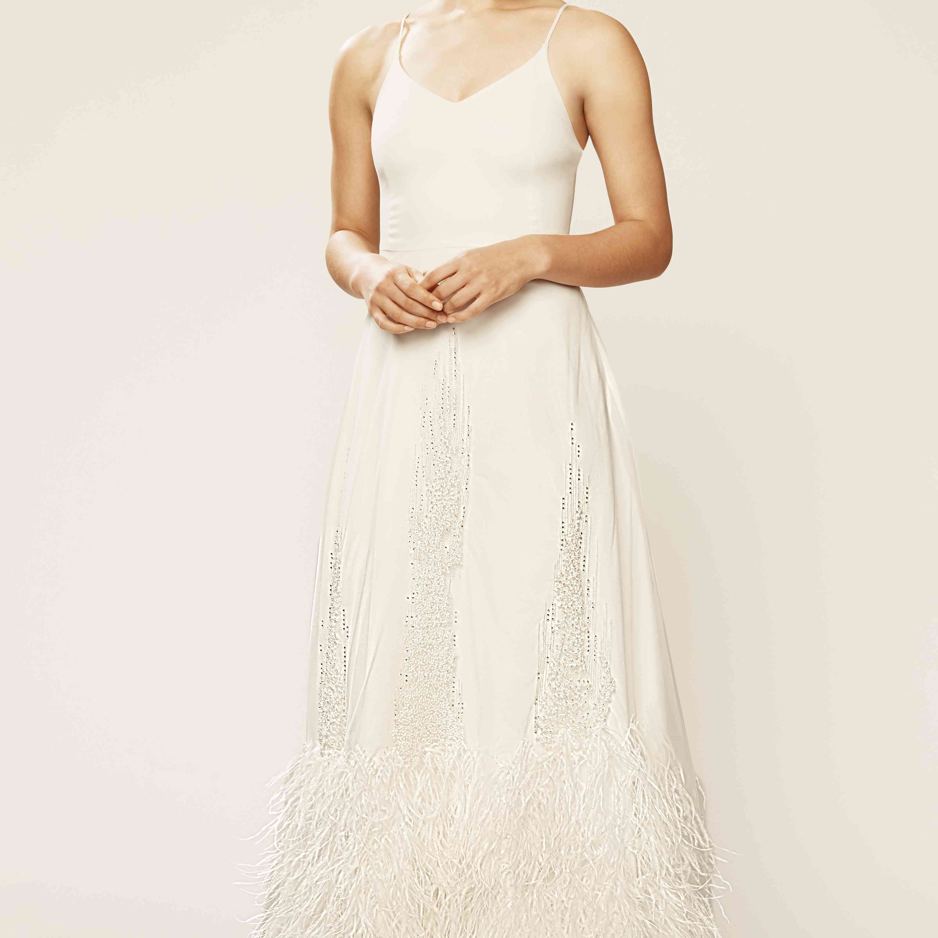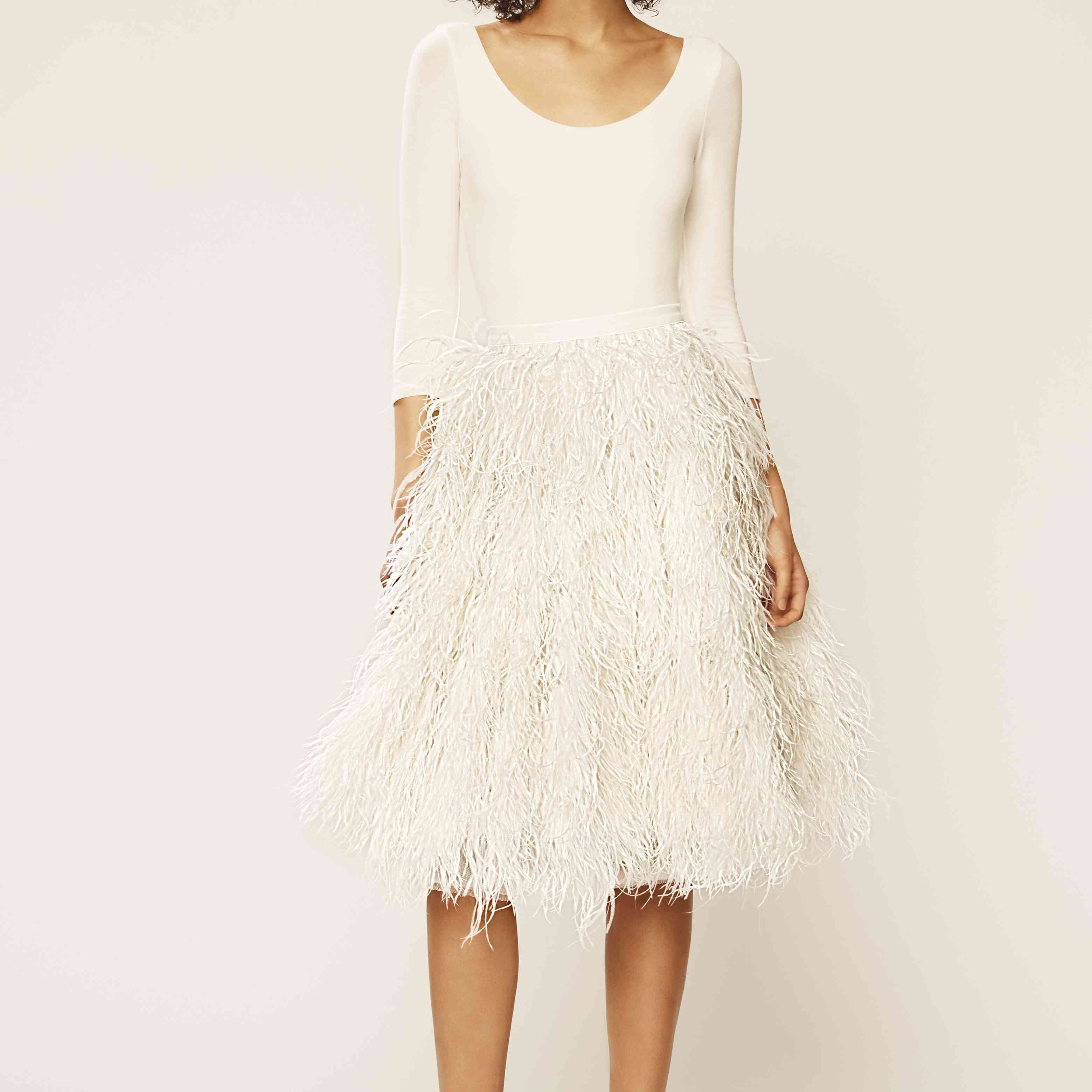 特色颓废面料(来自西班牙,意大利和法国采购)和一系列的颜色和设计(思弓,羽毛和手工缝制的钉珠),有真正的东西给每位新娘的大日子,所有其他庆祝活动导致它。从白羽袍的婚礼天准备一个黑色的连衣喊完“订婚派对装,”每件作品的收藏在纽约取得的当选,大小0到14加,与像简单的羊绒紧身衣镐和喇叭形188bet官网88bet官网MIDI裙子,你说这些后看起来还能持续多久“我做的。”
