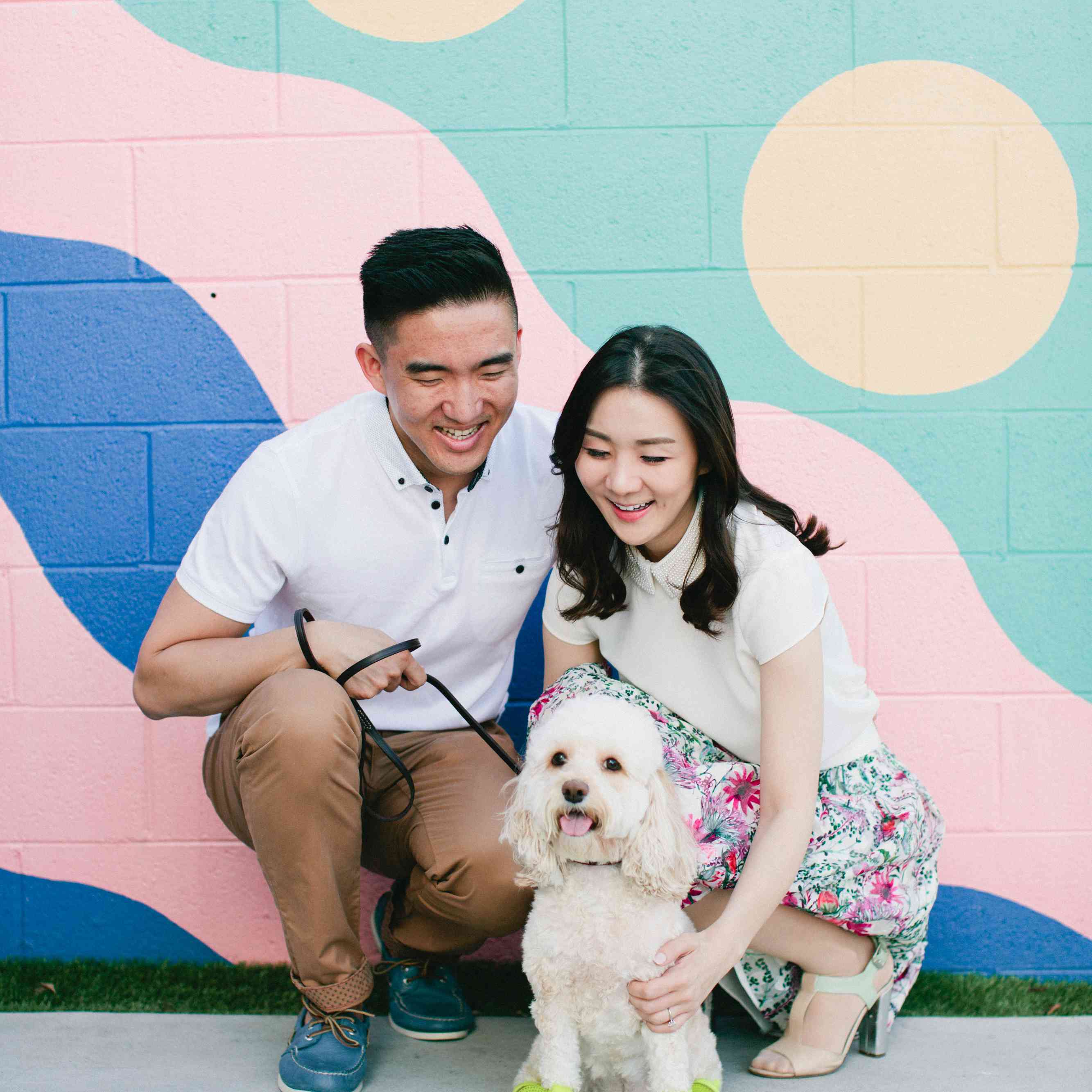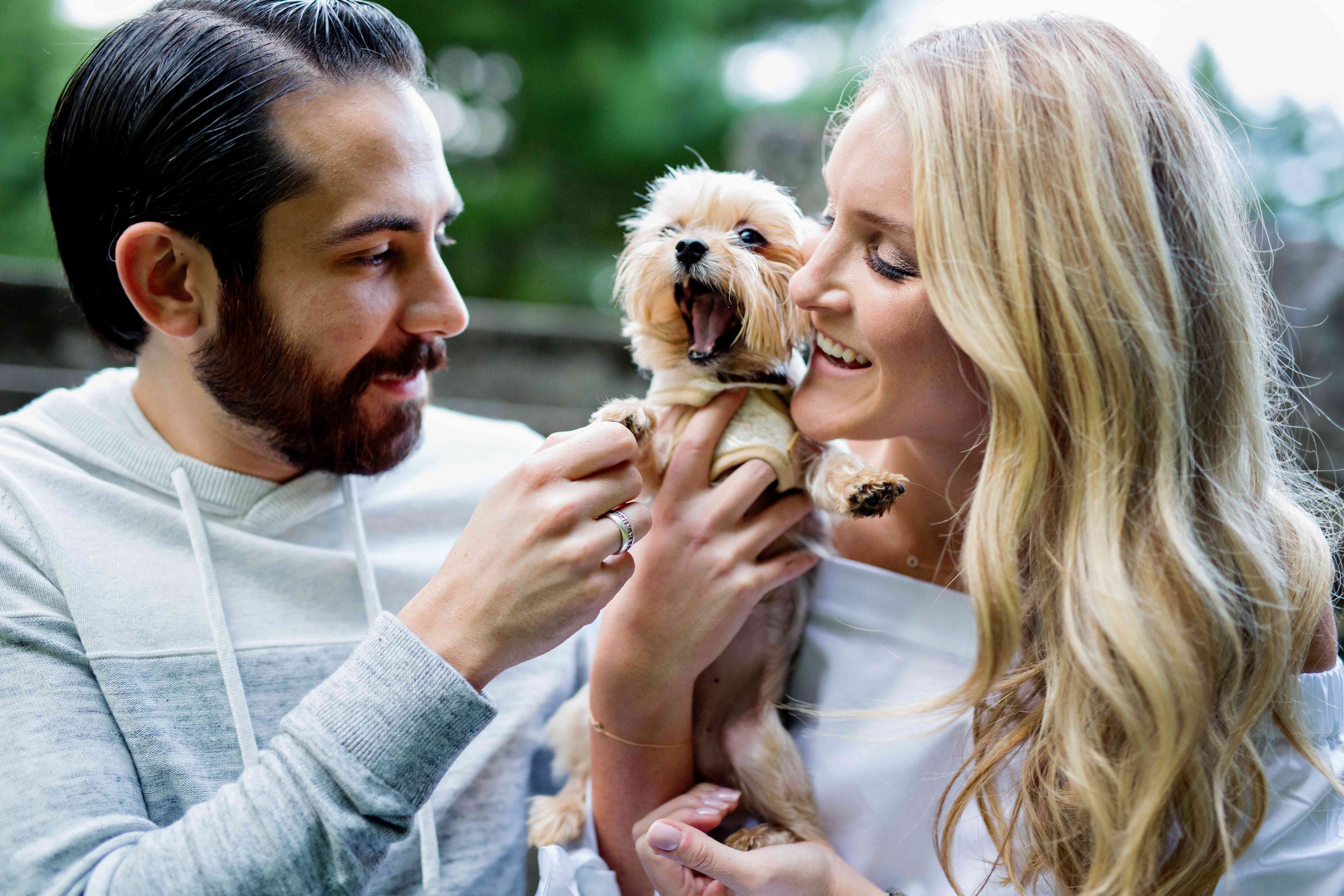 “我总是建议选择一个对他们的狗有意义的地方,就像狗最喜欢的公园一样,”Tracey Buyce.是一个萨拉托加斯普林斯的婚礼摄影师。这样他们更舒适,安心。如果你的心脏被设置在不熟悉的小狗的位置,试着在拍摄之前将它们带到几次,以使他们习惯于空间。