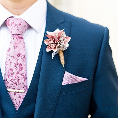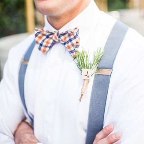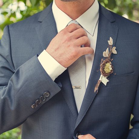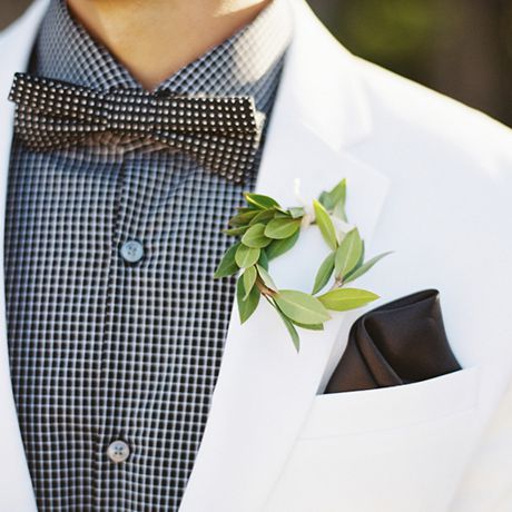 如果你的新郎在夹克上戴了一个用新鲜草木做成的微型花环,那一定会很有型。