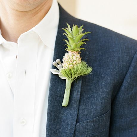 另一个可食用的钮扣创意:迷你菠萝!这个想法是完美的热带的旅行婚礼。