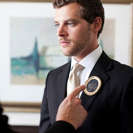 将传家宝像漂亮的胸针一样镶嵌在他的婚礼礼服上是一种很有意义的方式来增加他的个人风格。