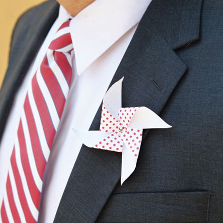 或者,如果想要一些更有趣和异想天开的东西,可以用纸风车做成的钮扣来搭配男士的西装。