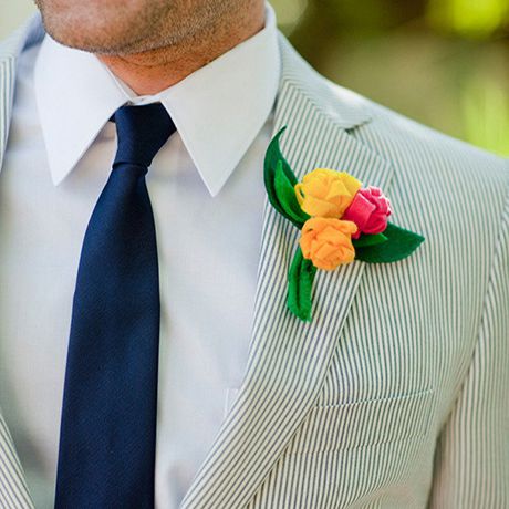 如果想要在婚礼结束后还能穿很久的饰品,那就选择一件彩色毛毡织成的花钮扣吧。