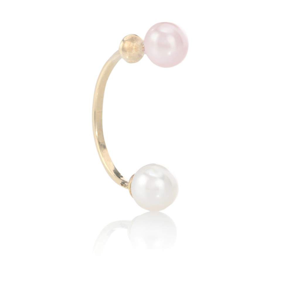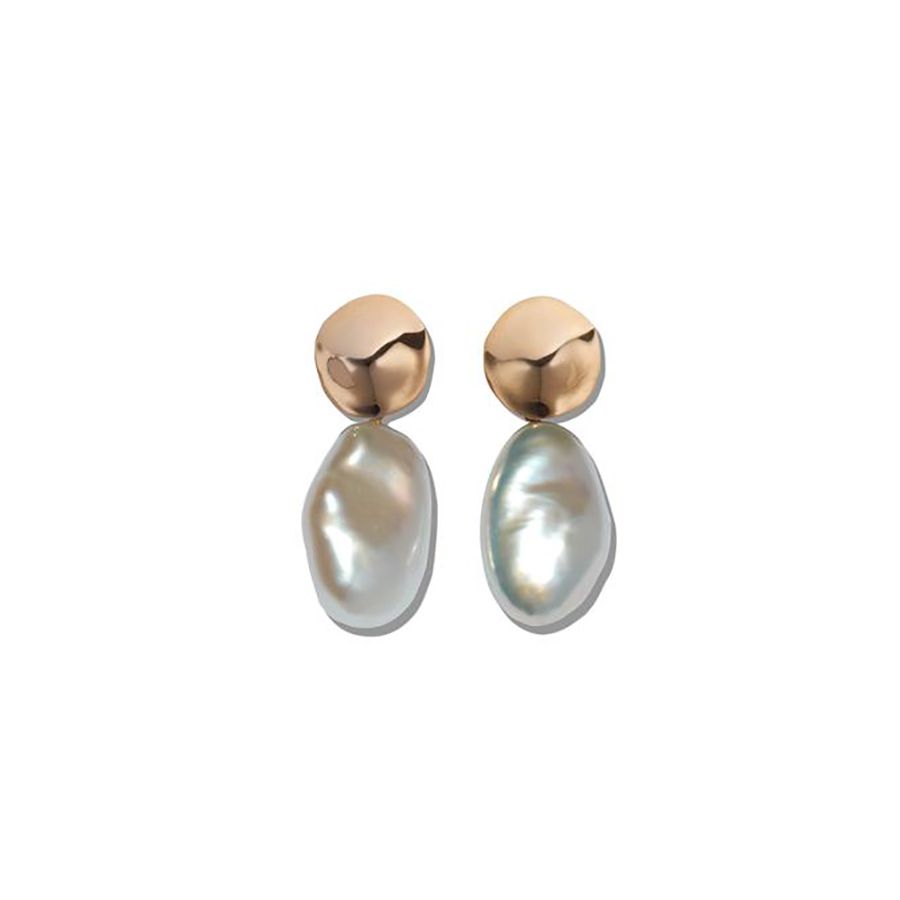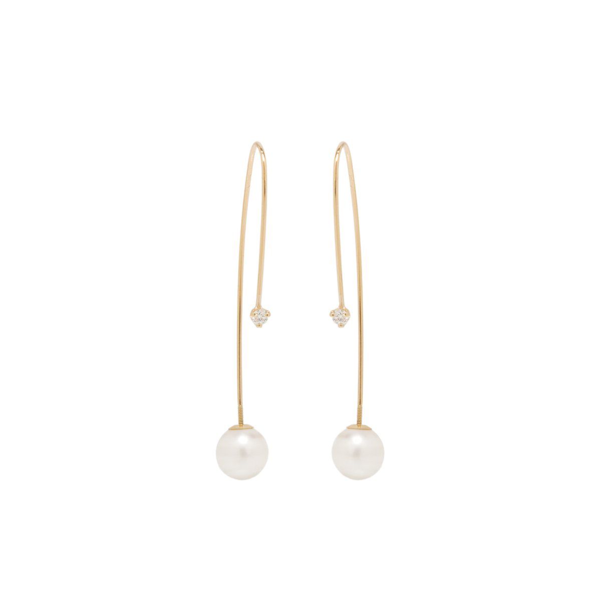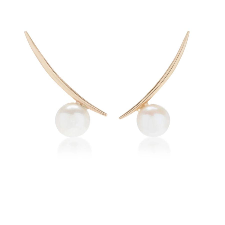 耳爬虫,穿线,好奇,吊带,和耳外套都是一些最时尚前卫的呈现珍珠耳环,一个从传统的螺栓远,但欢迎哭泣。你可以去全对珍珠像史密斯+ Mara的毕业珍珠耳环吊带(如果你想瞄准不对称和对其他耳环单独出售)。Or, you can go for a mix of metal like with Knobbly Studio’s delicate threader earring featuring a natural-shaped pearl encapsulated in a three-pronged cage (also sold as a single...are you following that asymmetry is a big trend, too?)