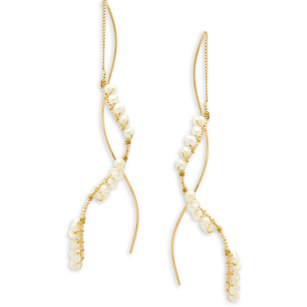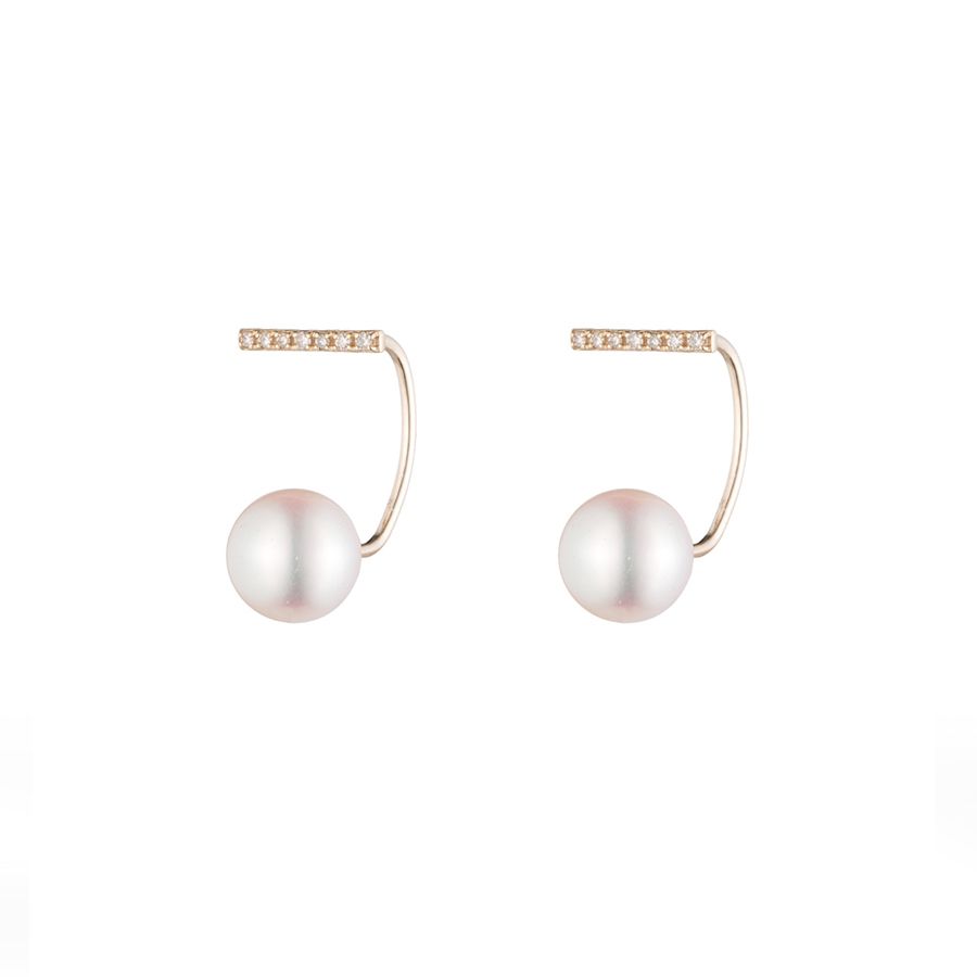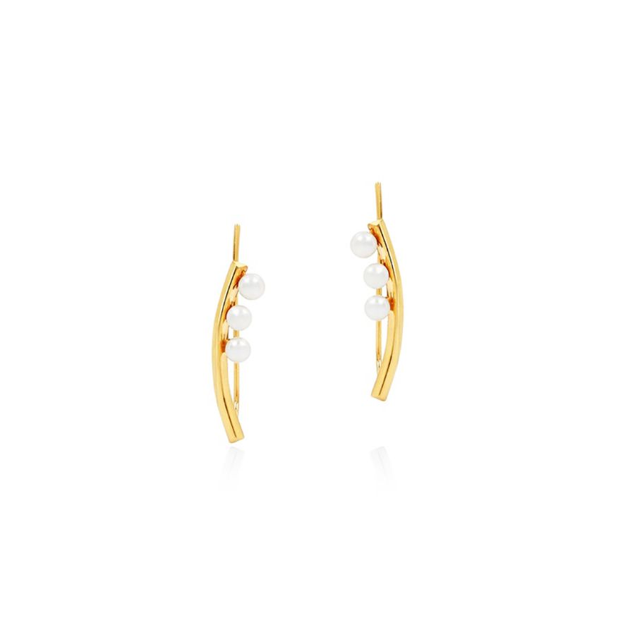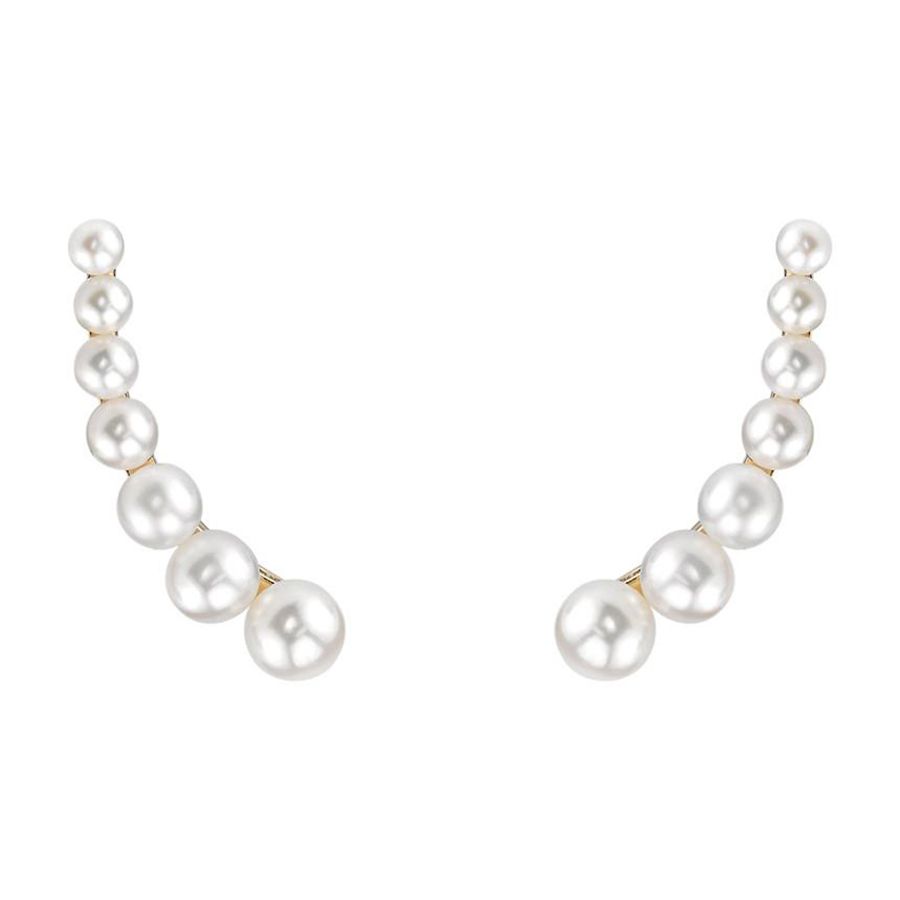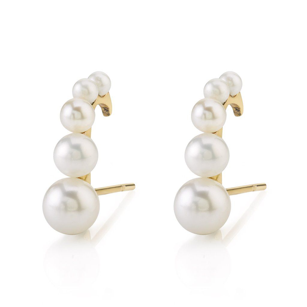 耳爬虫,穿线,好奇,吊带,和耳外套都是一些最时尚前卫的呈现珍珠耳环,一个从传统的螺栓远,但欢迎哭泣。你可以去全对珍珠像史密斯+ Mara的毕业珍珠耳环吊带(如果你想瞄准不对称和对其他耳环单独出售)。Or, you can go for a mix of metal like with Knobbly Studio’s delicate threader earring featuring a natural-shaped pearl encapsulated in a three-pronged cage (also sold as a single...are you following that asymmetry is a big trend, too?)