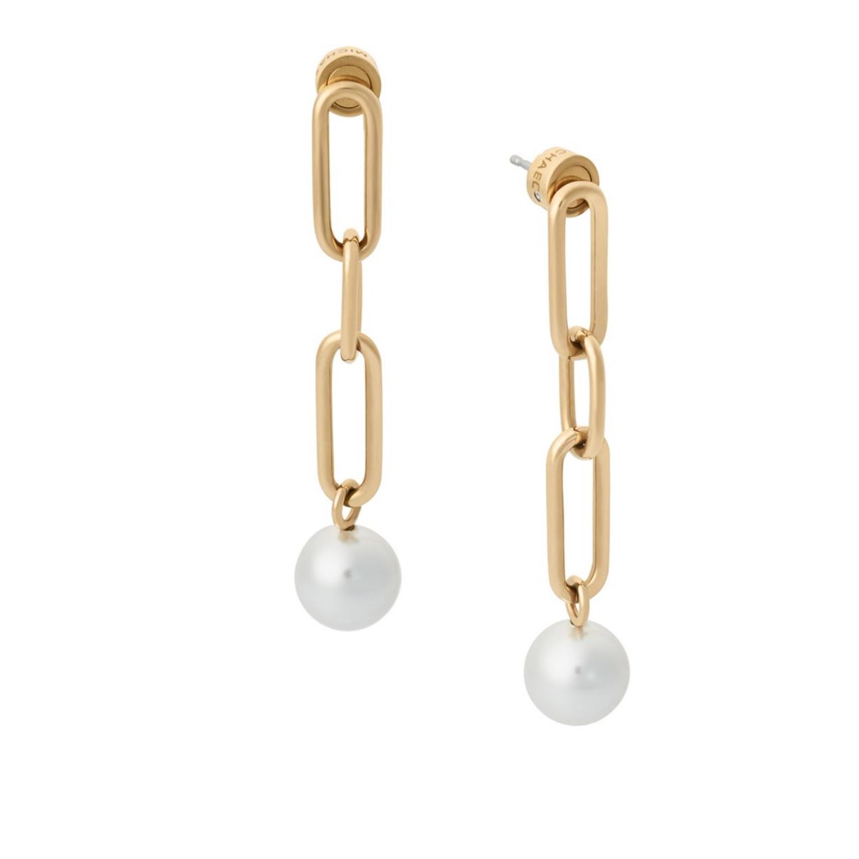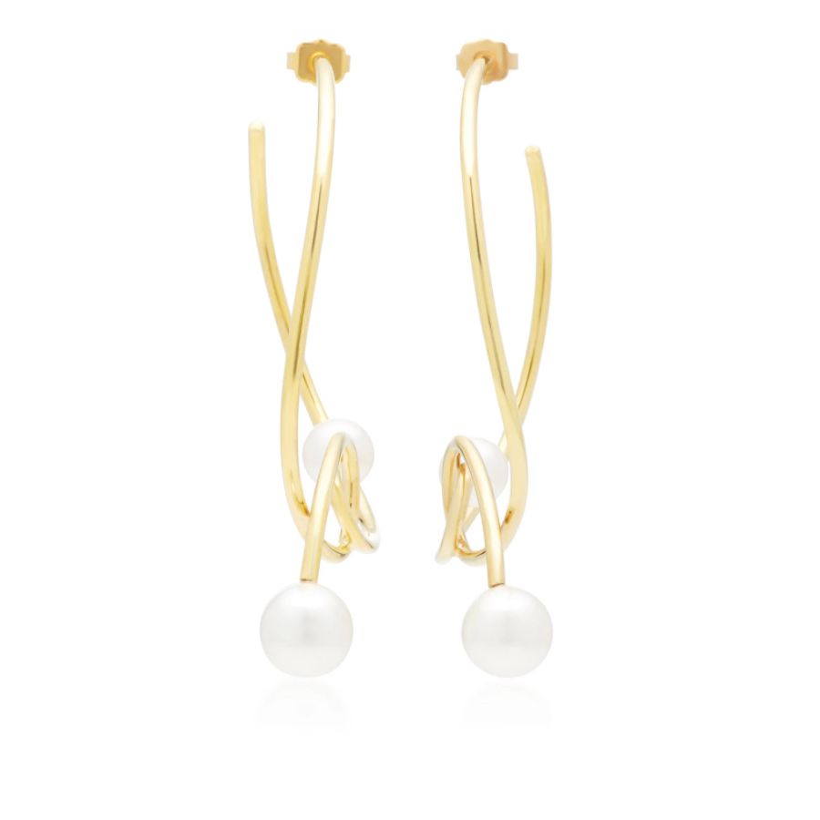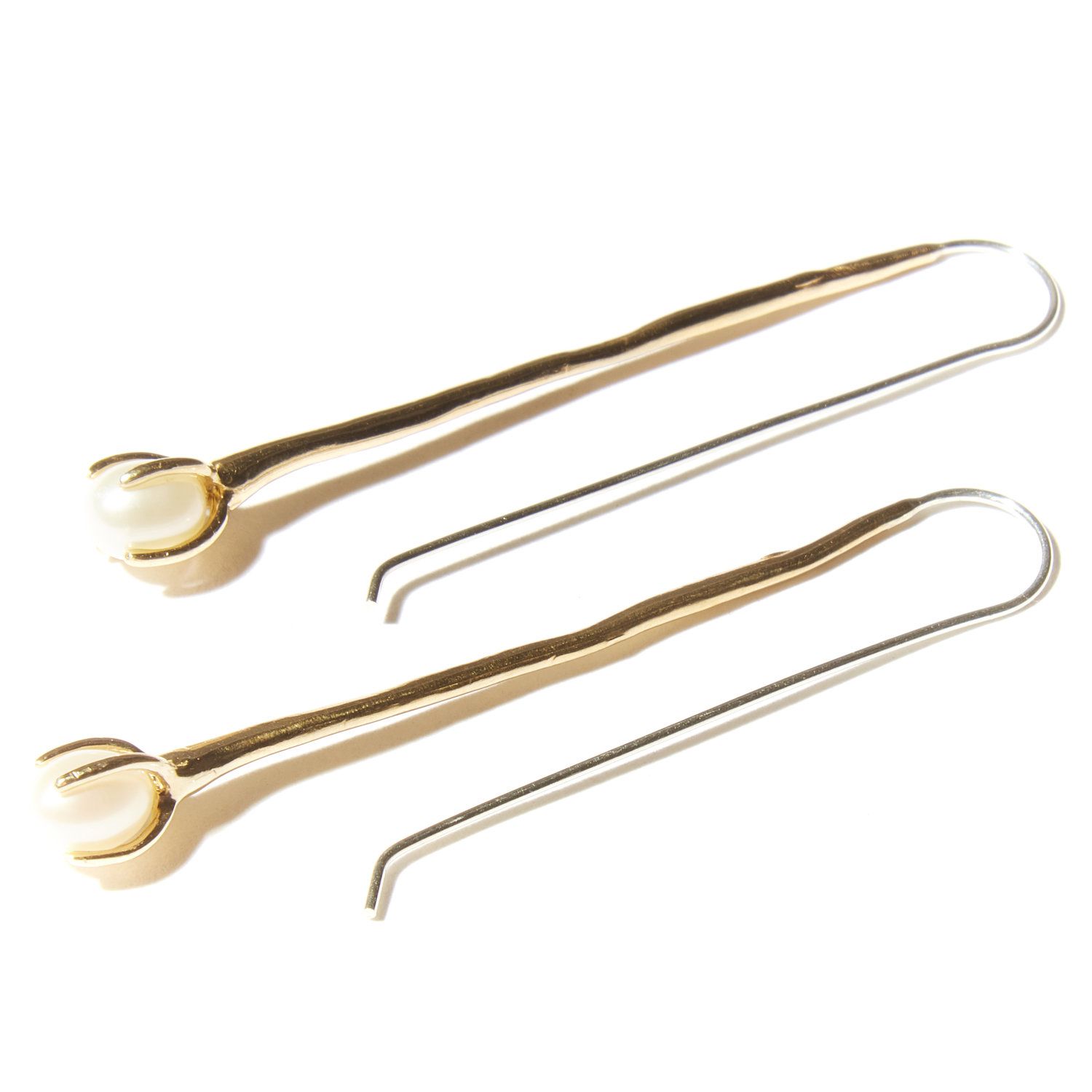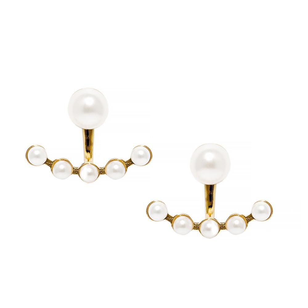 耳爬虫,穿线,好奇,吊带,和耳外套都是一些最时尚前卫的呈现珍珠耳环,一个从传统的螺栓远,但欢迎哭泣。你可以去全对珍珠像史密斯+ Mara的毕业珍珠耳环吊带(如果你想瞄准不对称和对其他耳环单独出售)。Or, you can go for a mix of metal like with Knobbly Studio’s delicate threader earring featuring a natural-shaped pearl encapsulated in a three-pronged cage (also sold as a single...are you following that asymmetry is a big trend, too?)