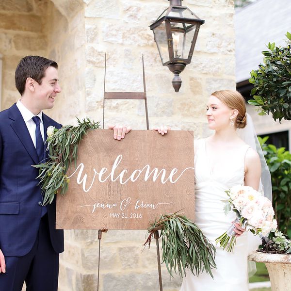 一个可爱的横幅可以增加一点效果乡村给你的蛋糕施魔法。这款帽子非常适合更轻松、低调的婚礼,如果搭配奶油蛋糕的话会很好看。婚礼后,把它合并到一个影子盒显示,并挂在你的家里。