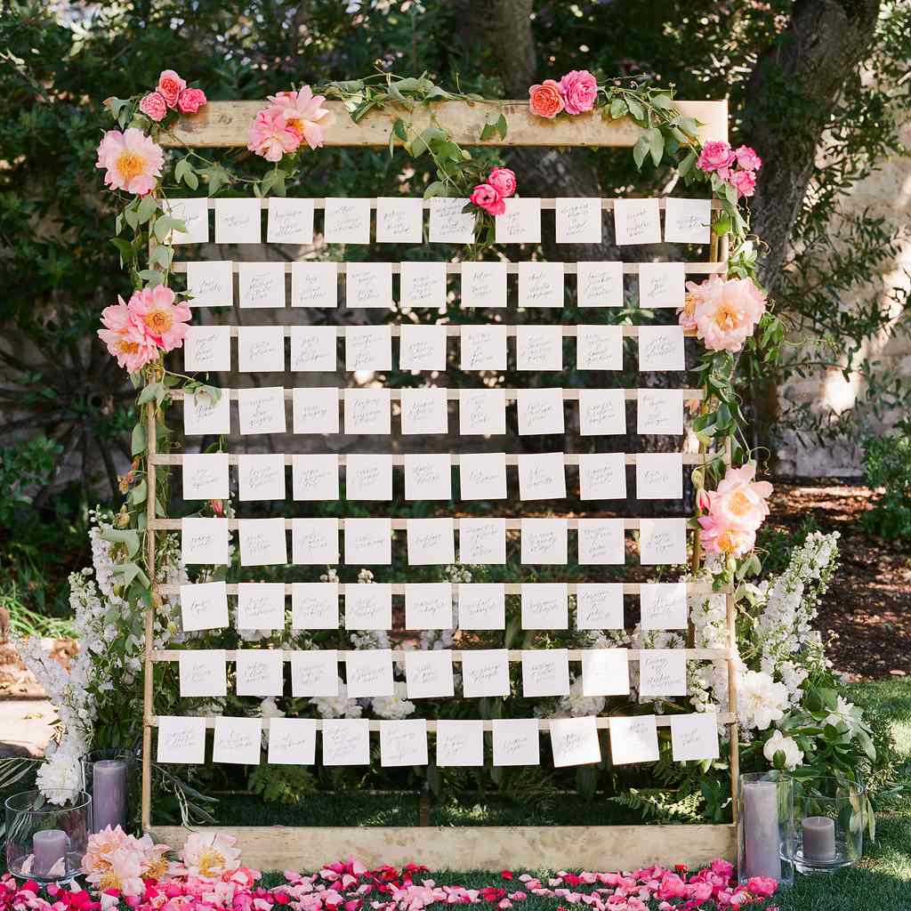 在这场位于加州后院的婚礼上,一幅悬挂的伴游卡片看起来就像一个现代的枝形吊灯。多么有趣啊!