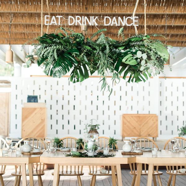 “许多预算精明的新娘知道的预订郁郁葱葱,自然美丽的场地将帮助您节省了很多的装饰,”克里斯蒂安雷曼的老板说真正的你的事件。但是更进一步,把这种美融入你的设计中!如果你们在户外交换誓言,选择一棵华丽的树作为你的圣坛,并挂一些飘逸的丝带。或者,与其把伴游卡放在桌子上,还不如把它们系在麻绳上,缠绕在鸡尾酒区的树上,让你的设计真正与大自然融为一体。这两种想法都不贵,但它会把你的客人的注意力吸引到他们的环境上!
