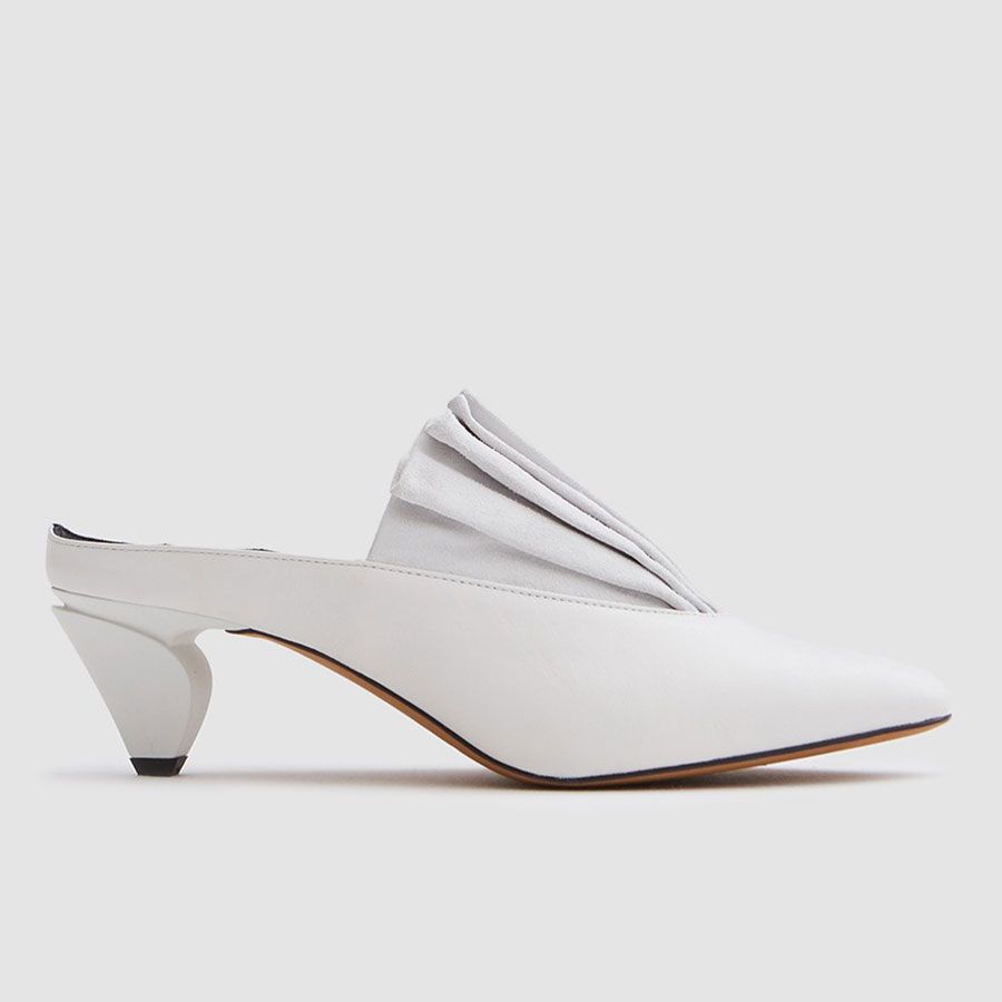Fall’s white shoes are delivered with graphic elements to steer even the simplest to high-fashion territory—a Mary Jane is so-now with a pared-back chunky heel, stiletto mules appear nuanced with sharp lines, ankle boots are eye-catching by nil embellishment,块脚跟生动与暗部细节并列雕塑高跟鞋或当。磨损与礼服,西装,甚至牛仔布,对比效果在作怪,感觉在任何情况下心痛别致而耐磨,并为affianced,称心的新娘。