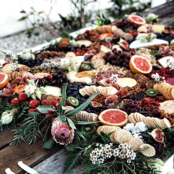“你不希望奶酪和肉在外面待太久,”穆伦说。“一种选择是把你的桌子放在板上,放在你的招待会之前,或者在仪式结束时让别人帮你把桌子放出来。”确保你提前做好准备,把你的桌子摆好,准备好屠宰纸、鲜花和其他任何你要加入的装饰也会对整个过程有所帮助。