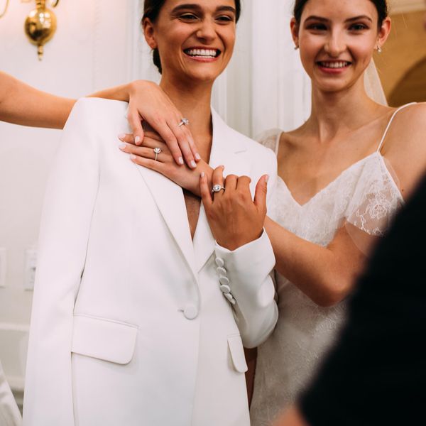 让维罗妮卡·比尔德(Veronica Beard)来设计一套你可能全年都想穿的西装吧。用闪闪发光的粉色棉缎制作而成,这种风格很适合春季或夏季的婚礼。