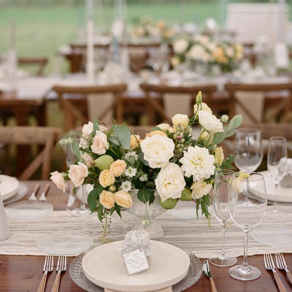 艾米丽说:“婚礼和接待的每个方面都有很多定制和细节,但一切都很自然地结合在一起。”“我们想把正式场合和后院婚礼融为一体。”