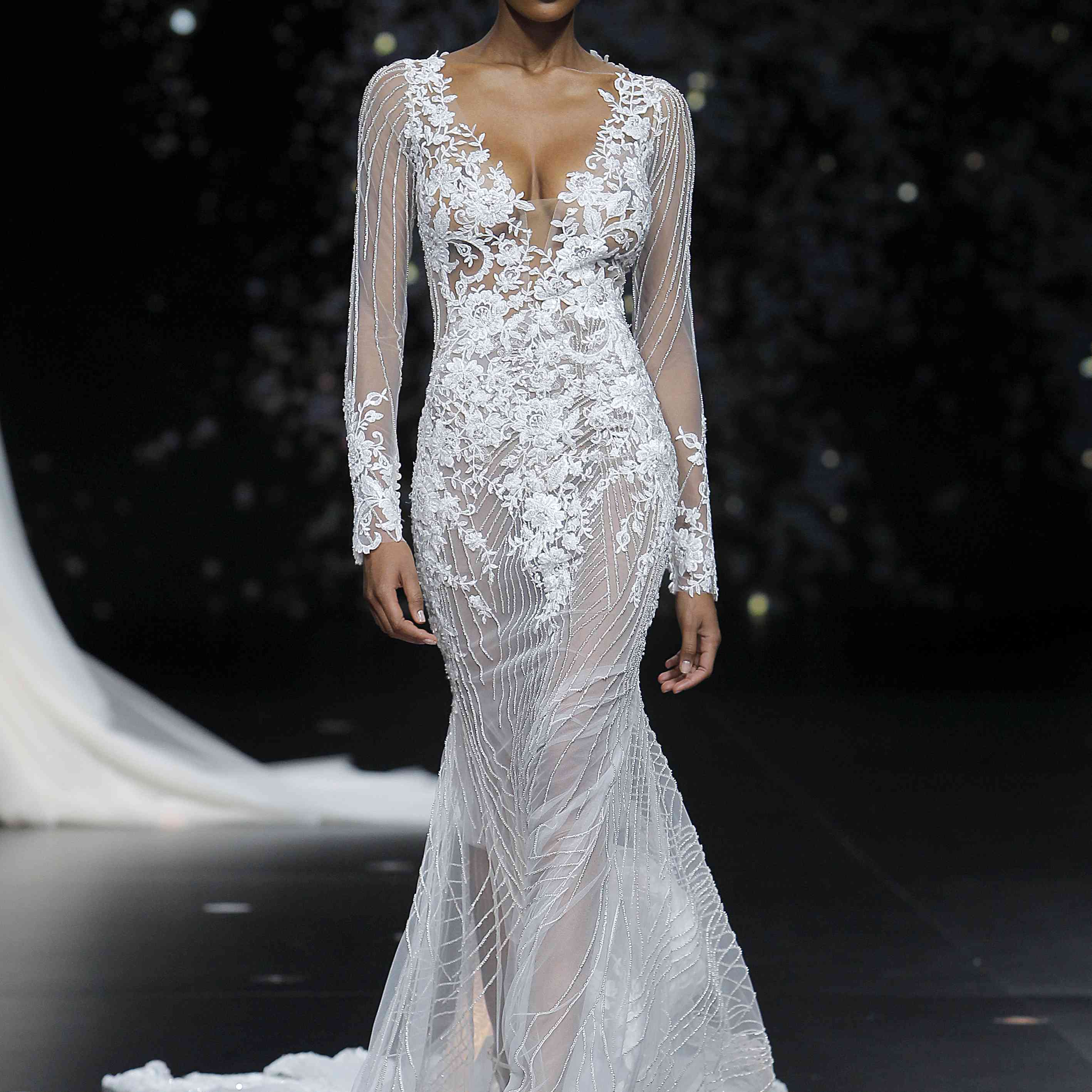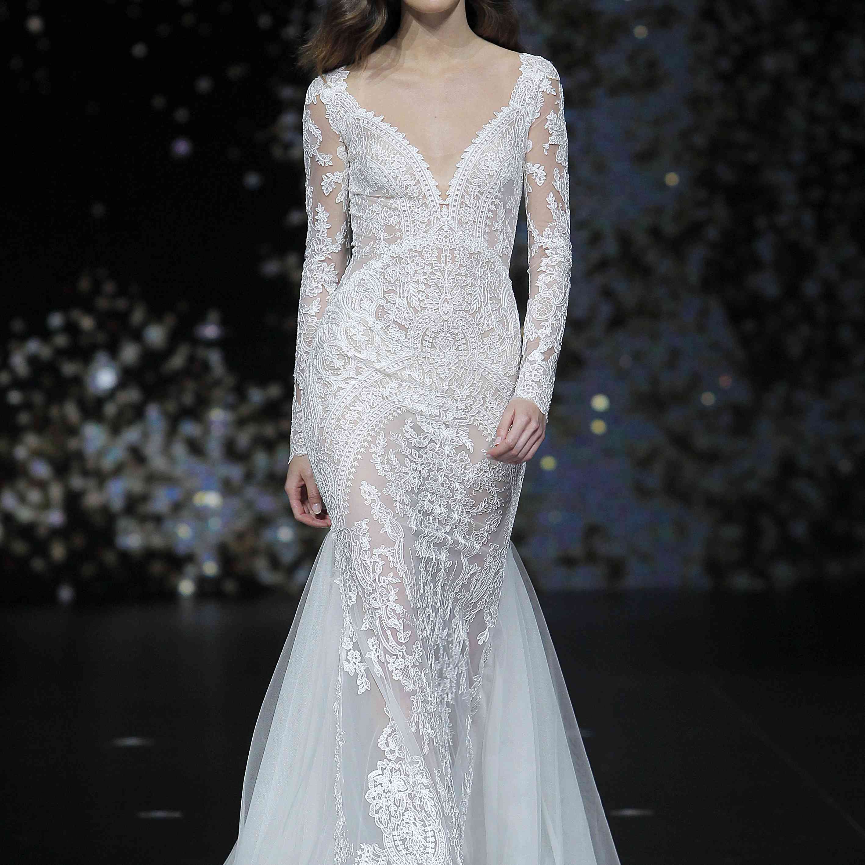 “卡特琳娜”长袖,blouson美人鱼礼服bateau领口和v-back, Pronovias