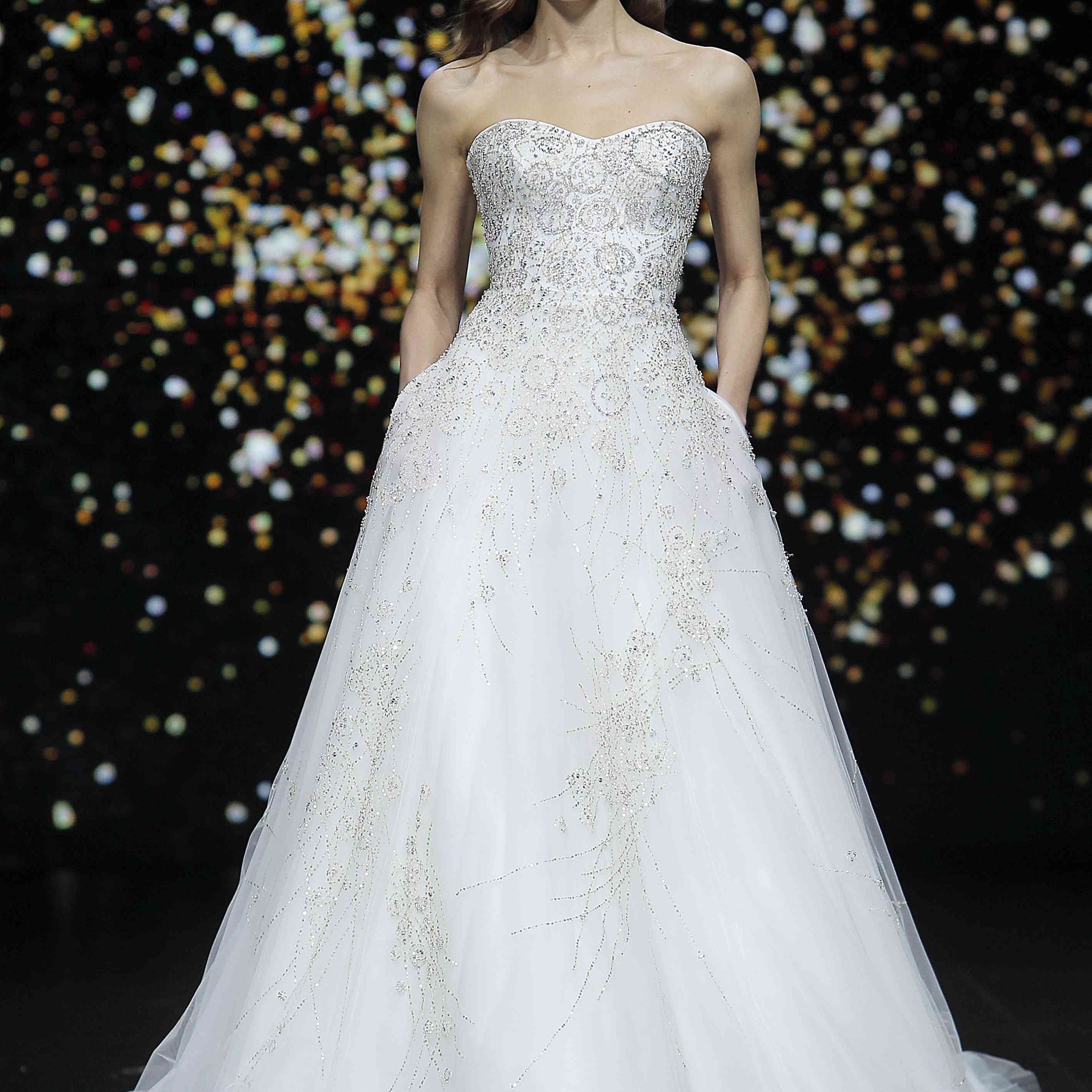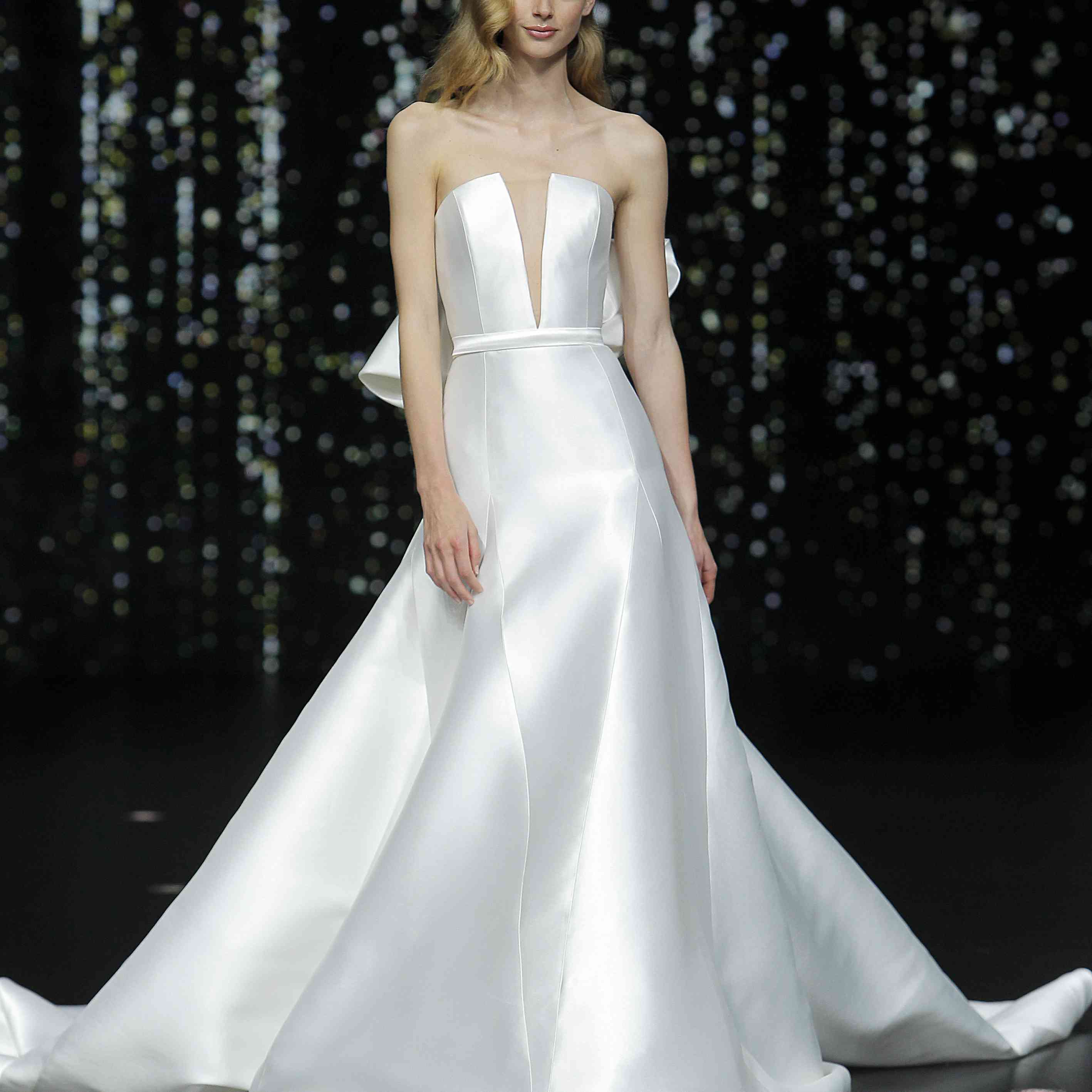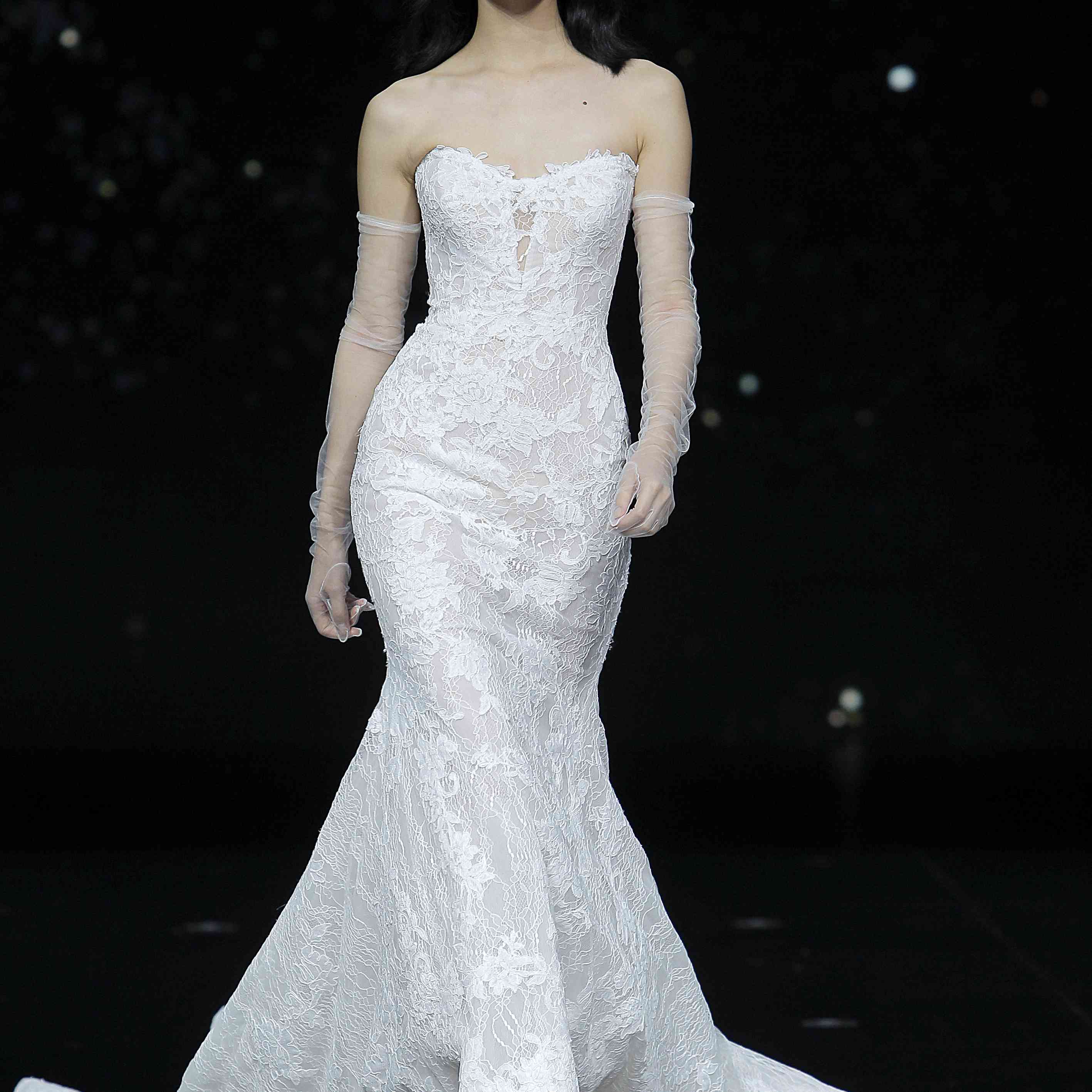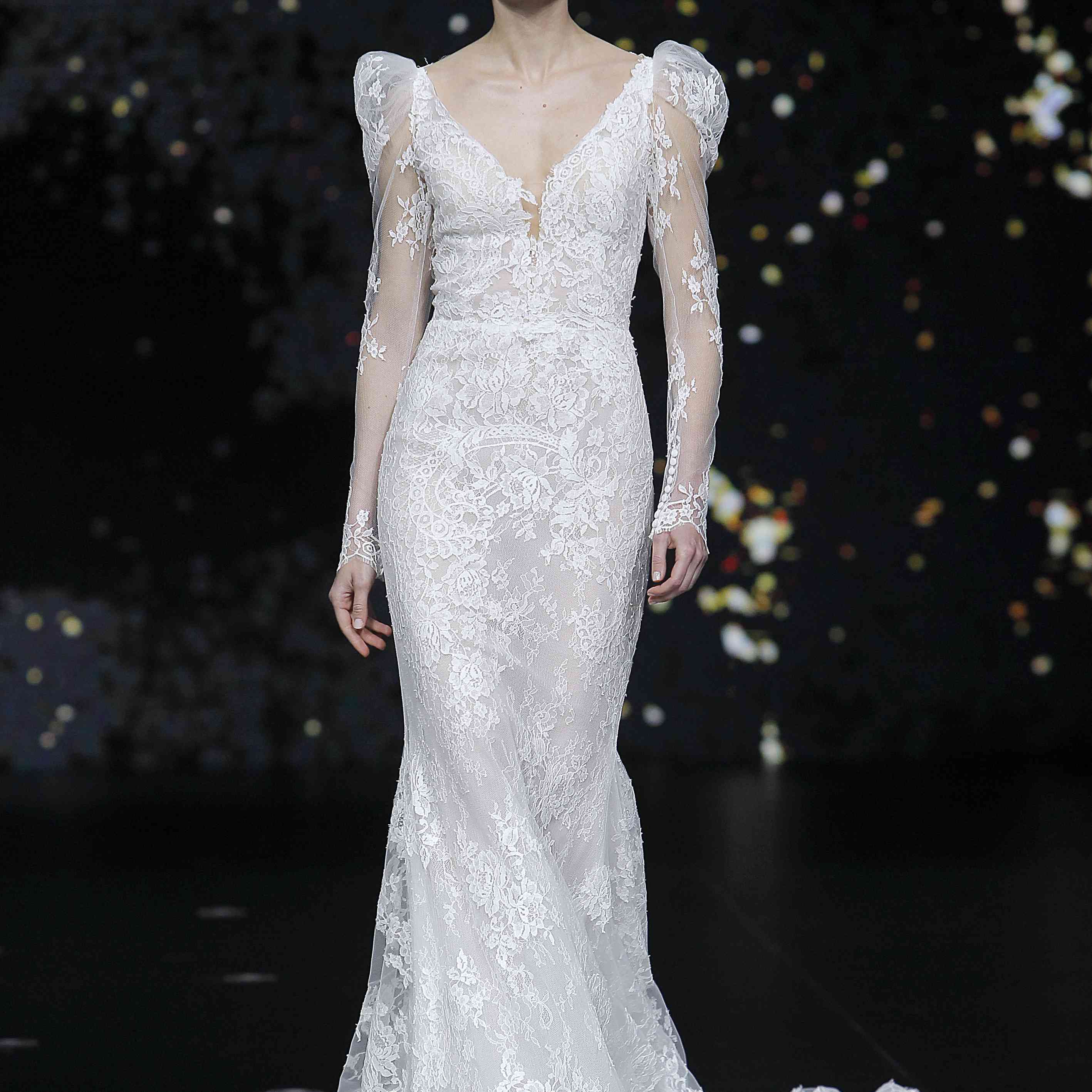 Pronovias是一个家族品牌,最初是巴塞罗那一家高质量的蕾丝和丝绸面料店。快进到2020年,Pronovias在全球拥有50多家特许经营权,他们令人神往的礼服被无数的顶级名人穿过。Pronovias的首席艺术总监亚历山德拉·里纳乌多(Alessandra Rinaudo)以喜爱精致的面料和凸显身体轮廓而闻名,她设计的系列设计能让所有新娘在婚礼当天都感觉特别。
