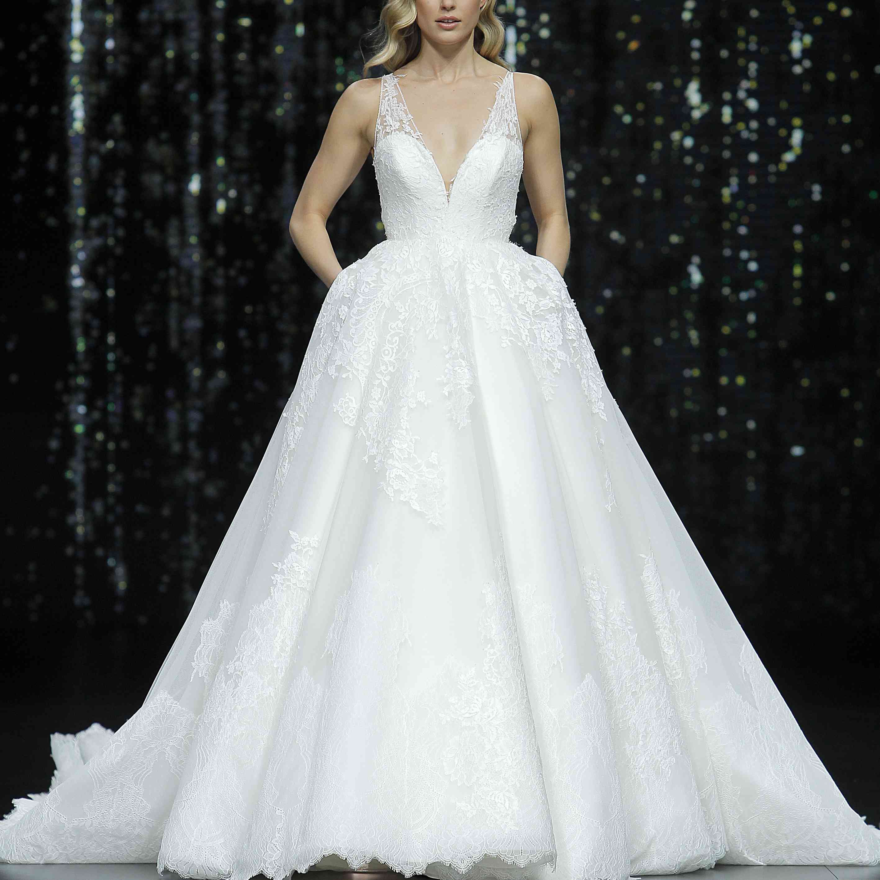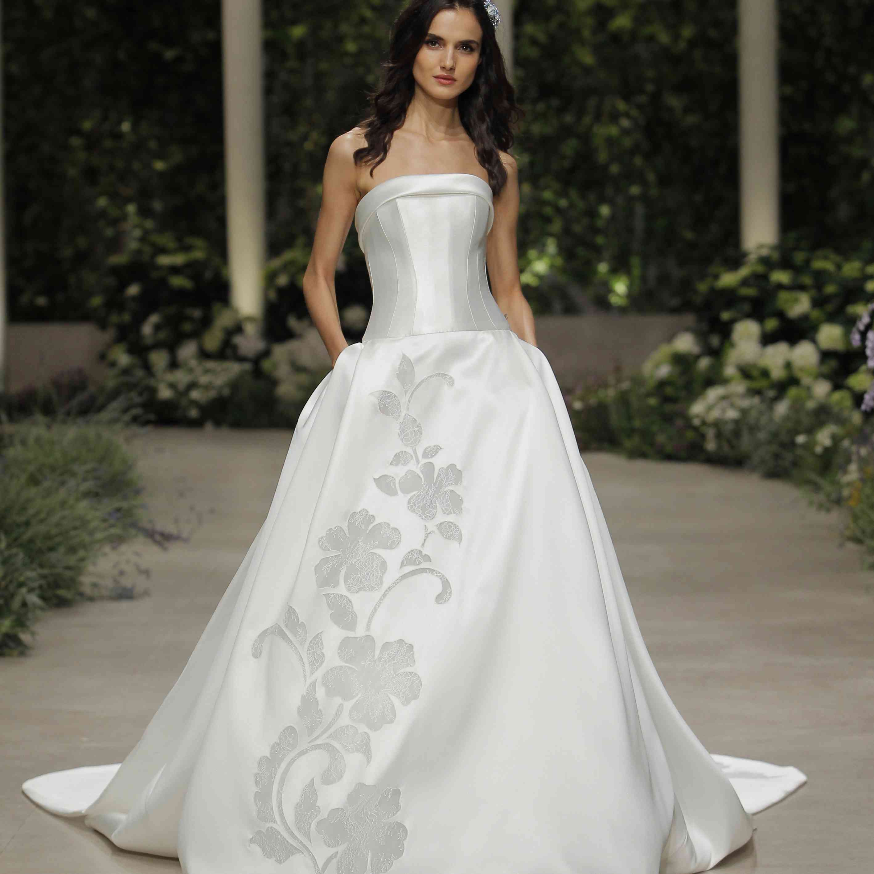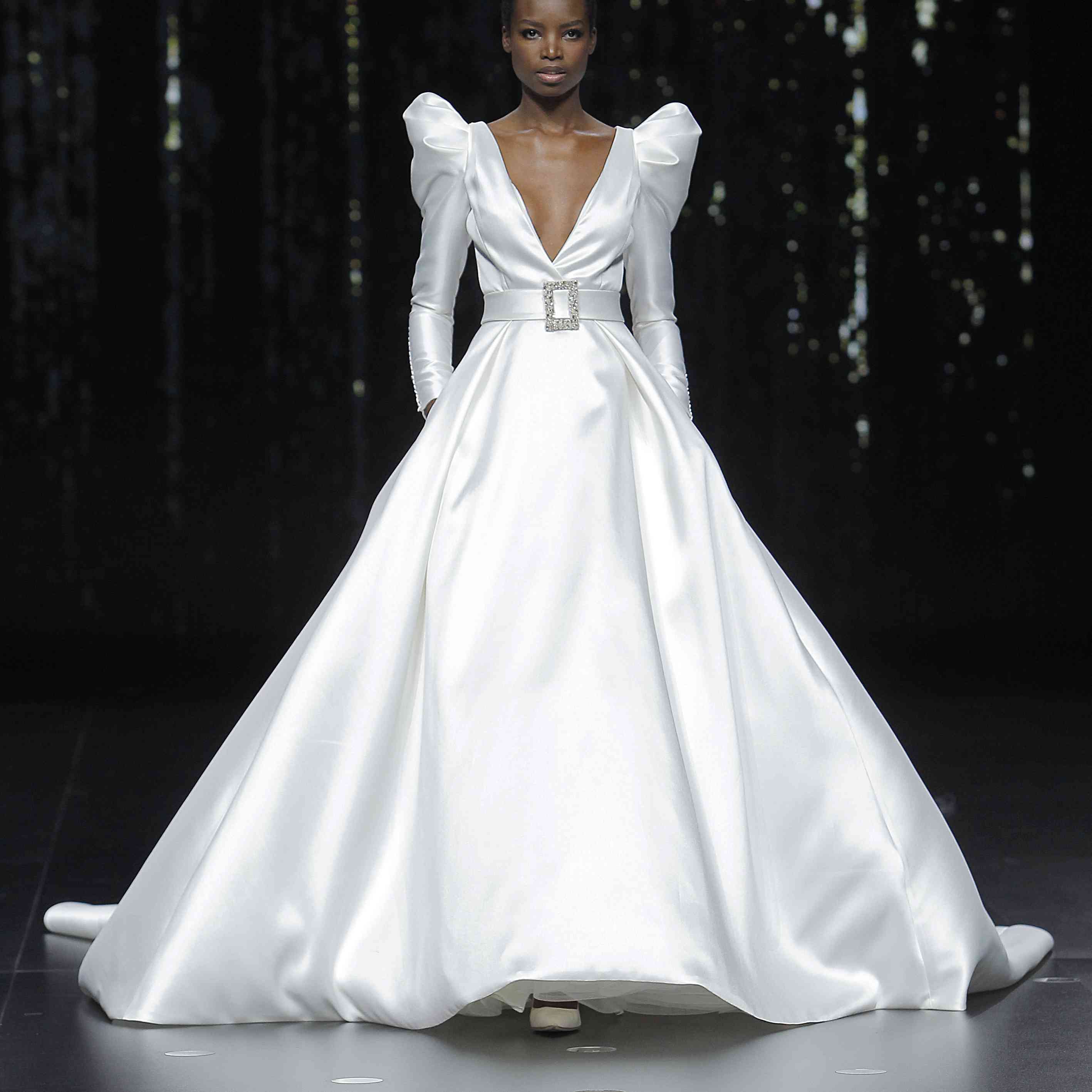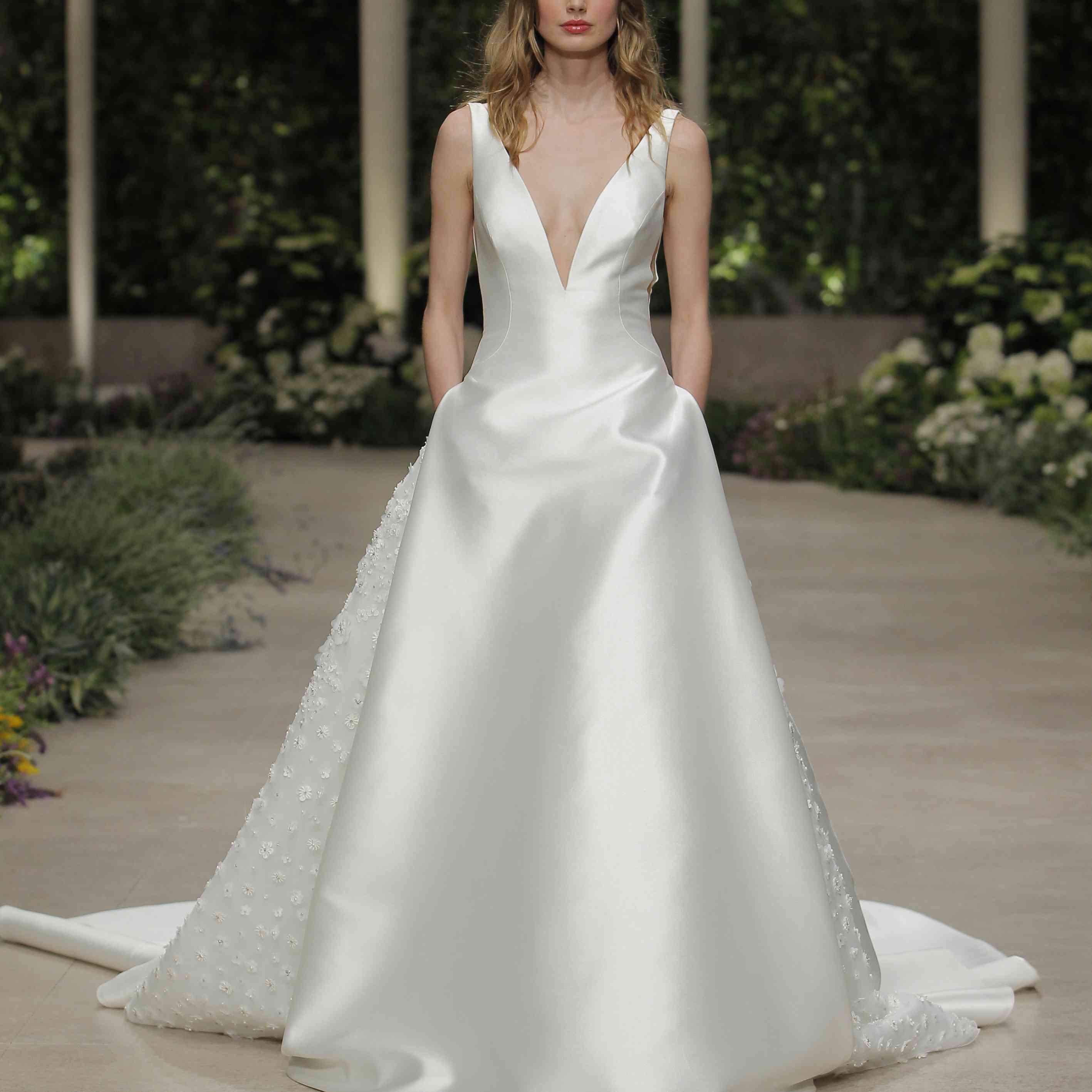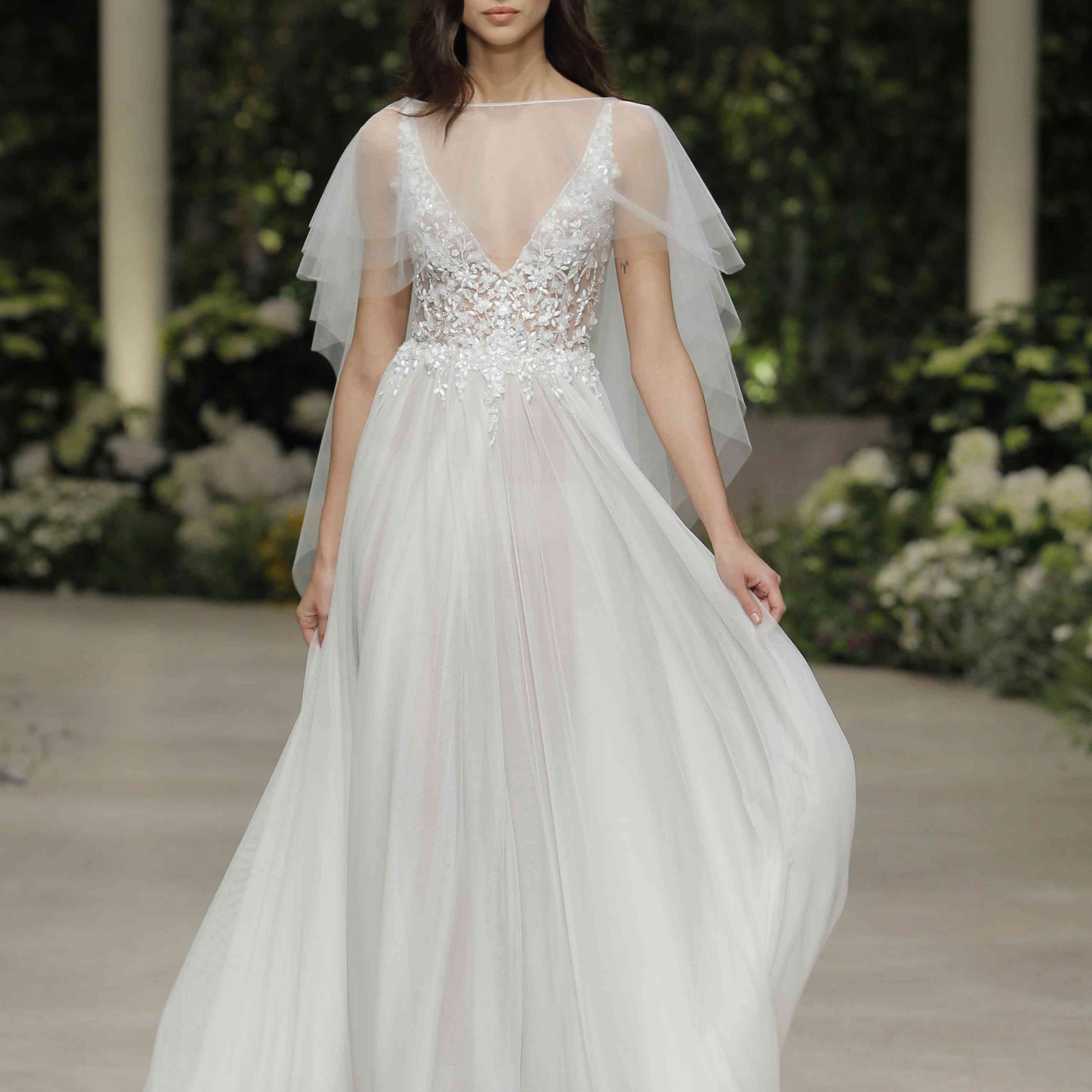 Pronovias是一个家族品牌,最初是巴塞罗那一家高质量的蕾丝和丝绸面料店。快进到2020年,Pronovias在全球拥有50多家特许经营权,他们令人神往的礼服被无数的顶级名人穿过。Pronovias的首席艺术总监亚历山德拉·里纳乌多(Alessandra Rinaudo)以喜爱精致的面料和凸显身体轮廓而闻名,她设计的系列设计能让所有新娘在婚礼当天都感觉特别。