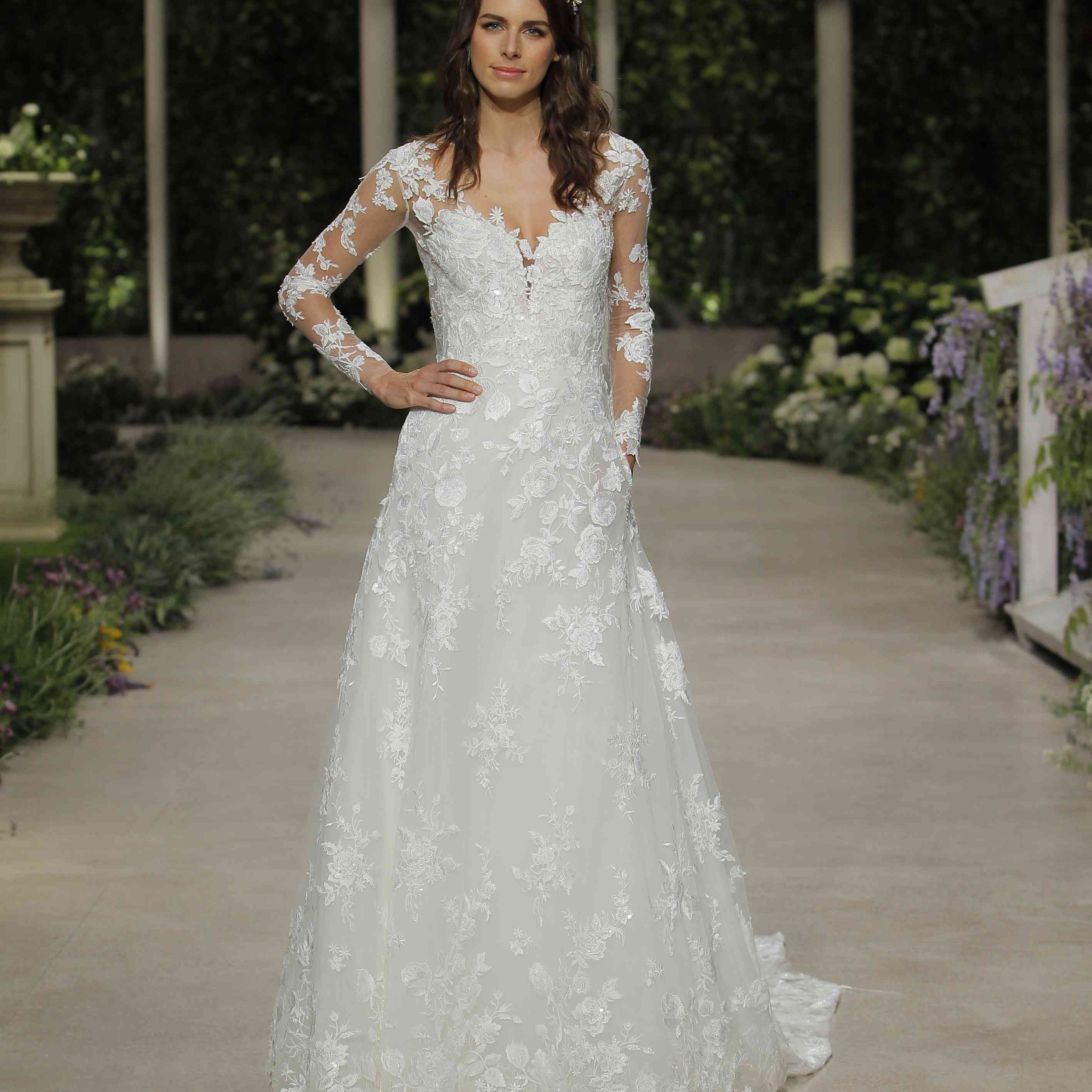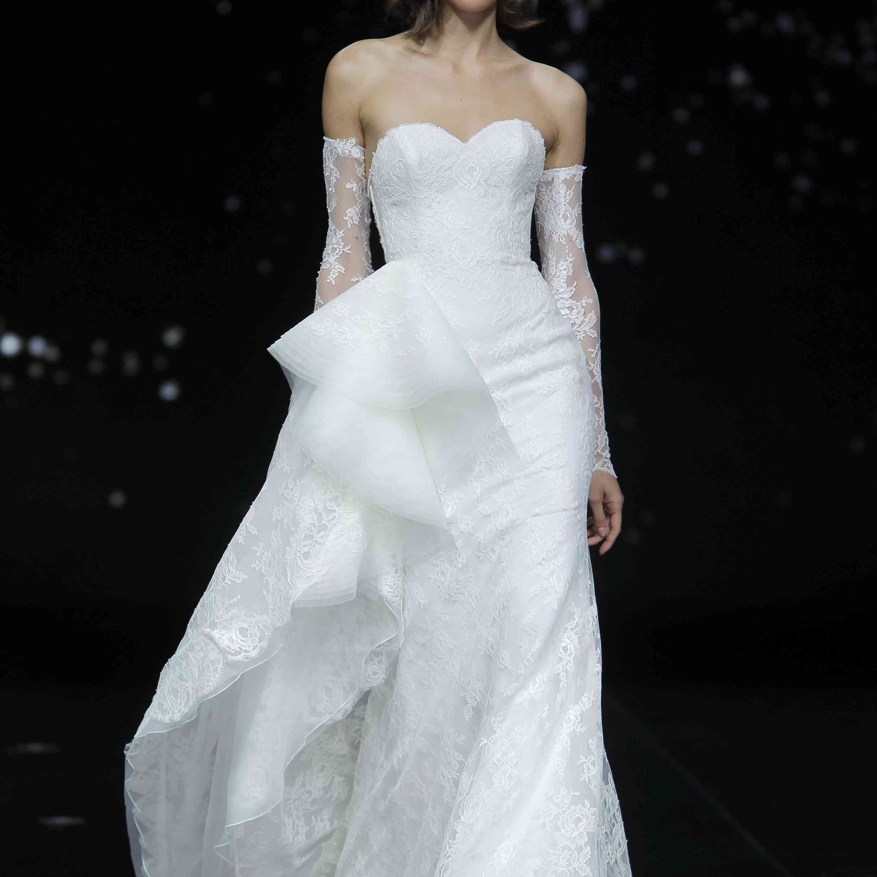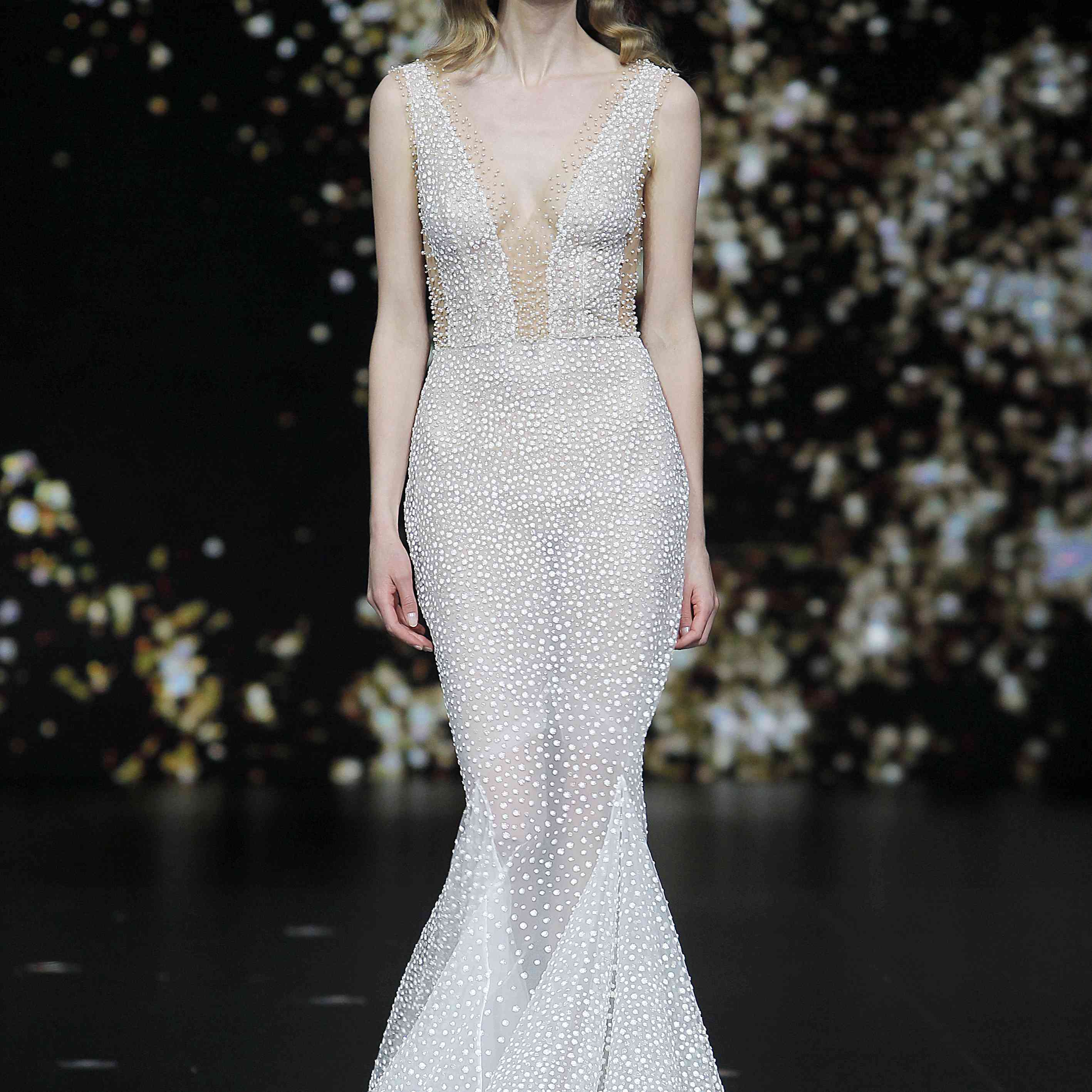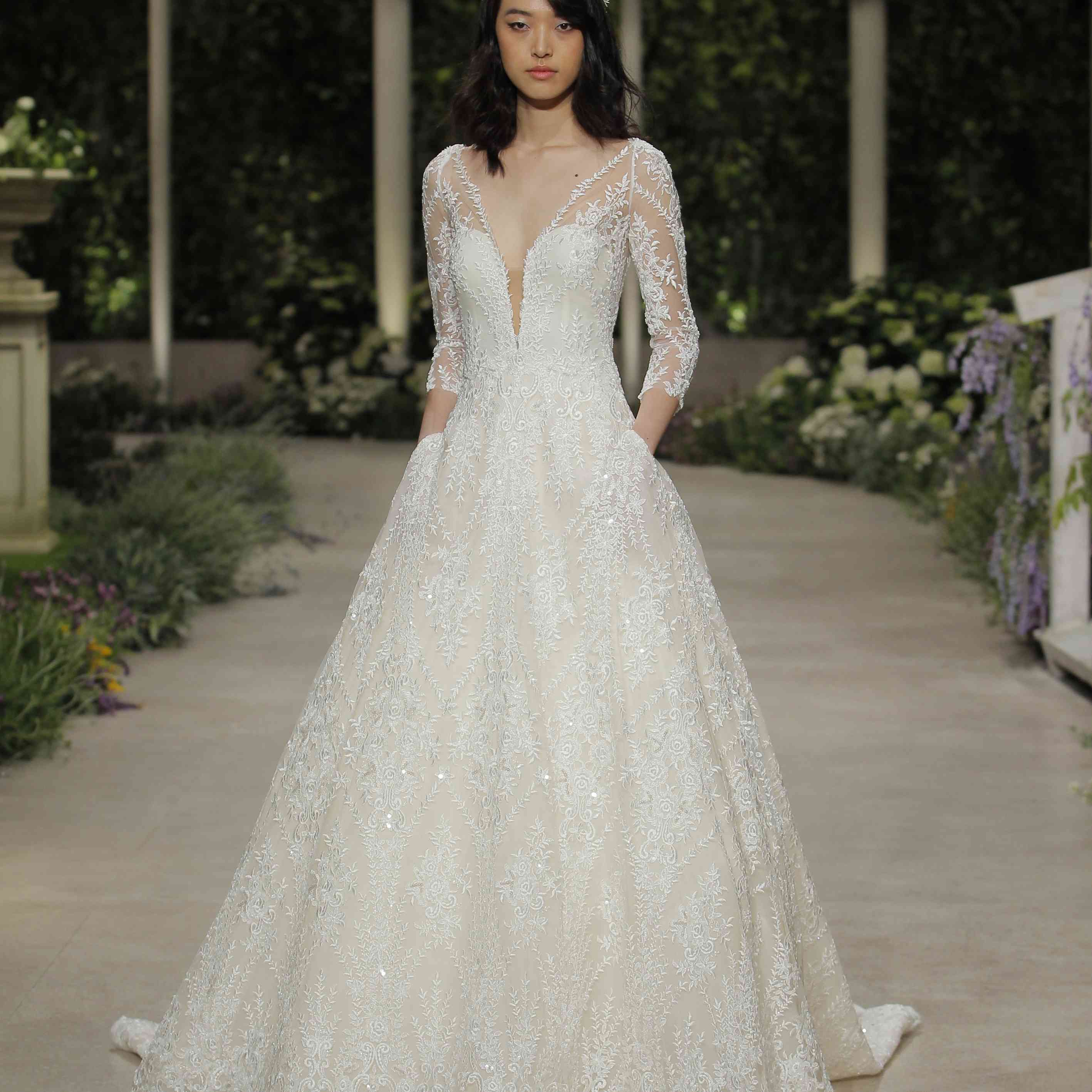 Pronovias是一个家族品牌,最初是巴塞罗那一家高质量的蕾丝和丝绸面料店。快进到2020年,Pronovias在全球拥有50多家特许经营权,他们令人神往的礼服被无数的顶级名人穿过。Pronovias的首席艺术总监亚历山德拉·里纳乌多(Alessandra Rinaudo)以喜爱精致的面料和凸显身体轮廓而闻名,她设计的系列设计能让所有新娘在婚礼当天都感觉特别。