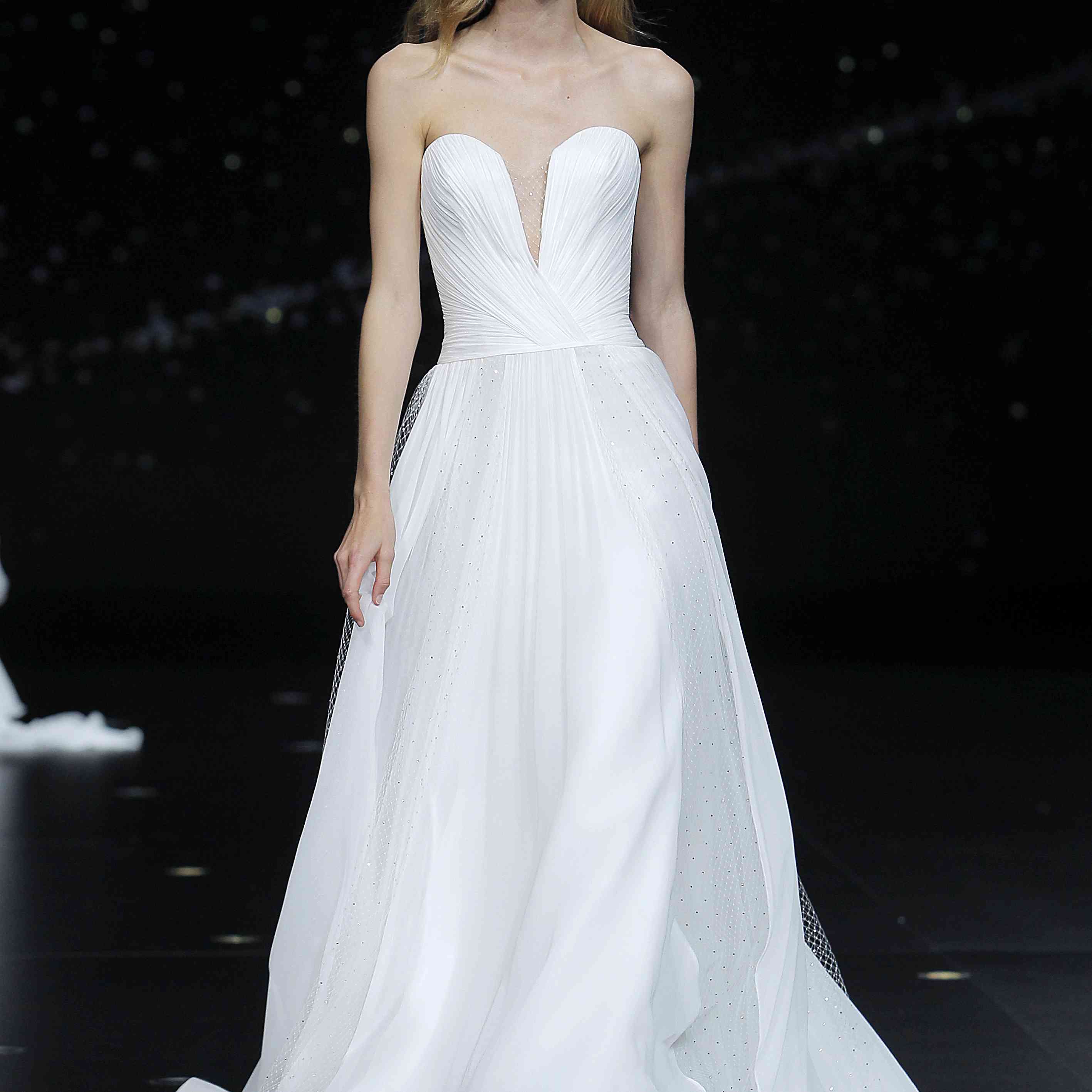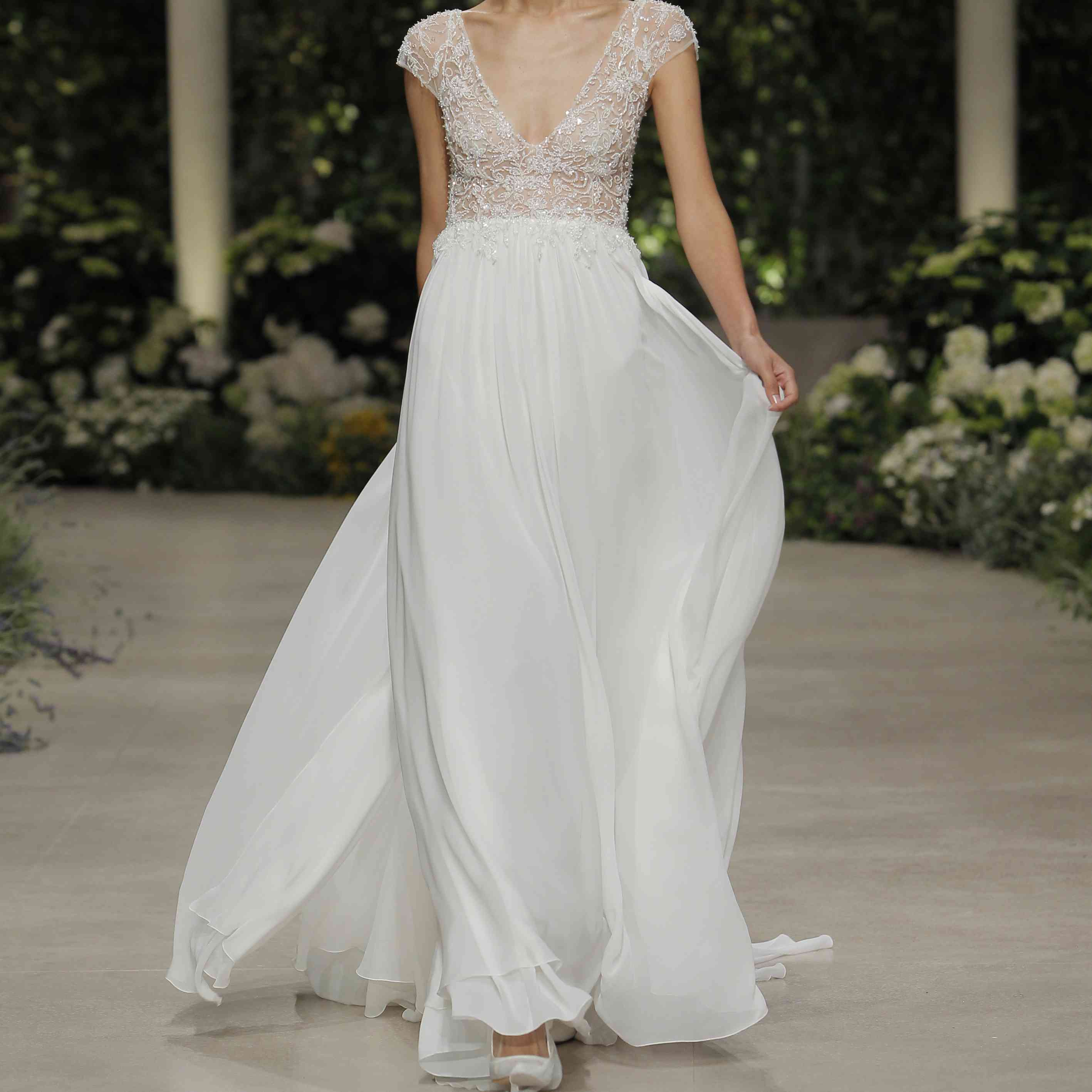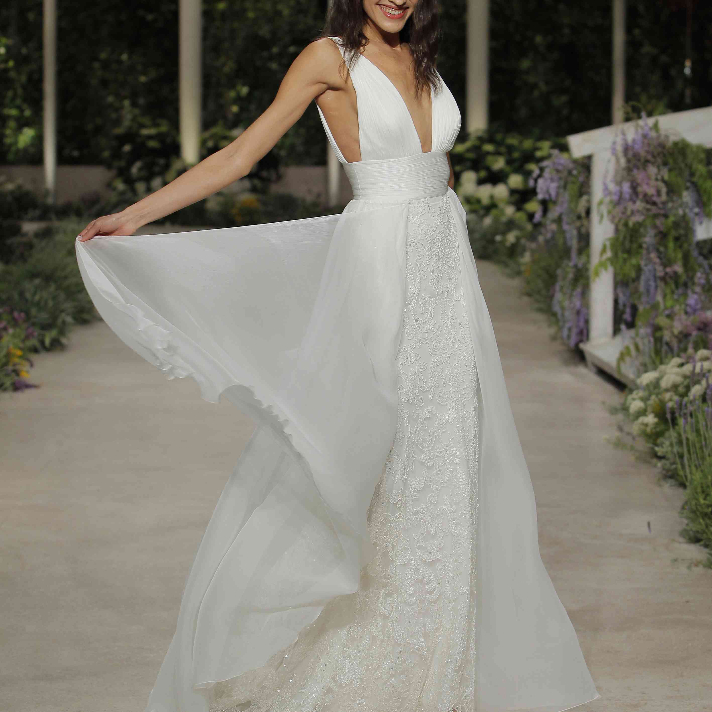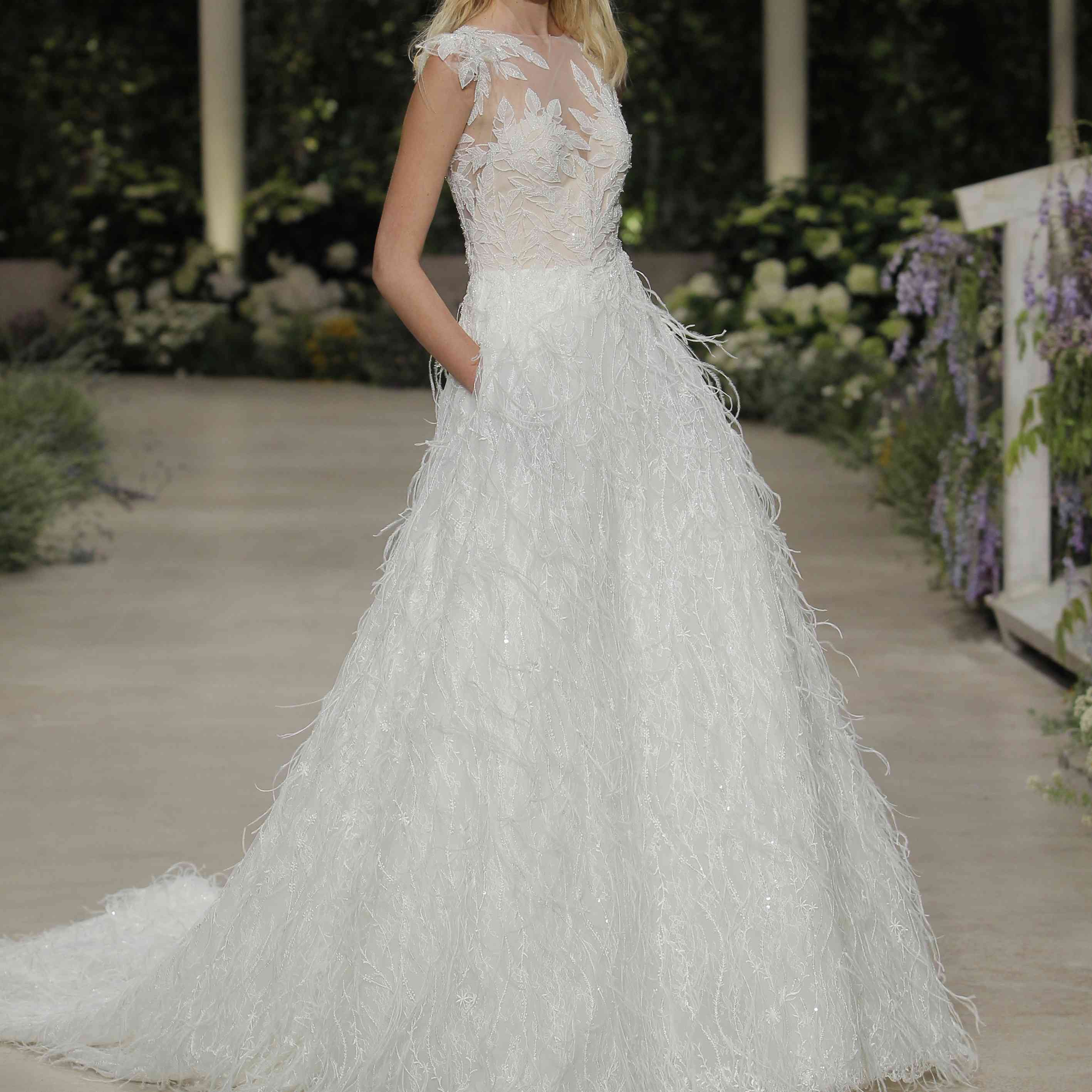Pronovias是一个家族品牌,最初是巴塞罗那一家高质量的蕾丝和丝绸面料店。快进到2020年,Pronovias在全球拥有50多家特许经营权,他们令人神往的礼服被无数的顶级名人穿过。Pronovias的首席艺术总监亚历山德拉·里纳乌多(Alessandra Rinaudo)以喜爱精致的面料和凸显身体轮廓而闻名,她设计的系列设计能让所有新娘在婚礼当天都感觉特别。