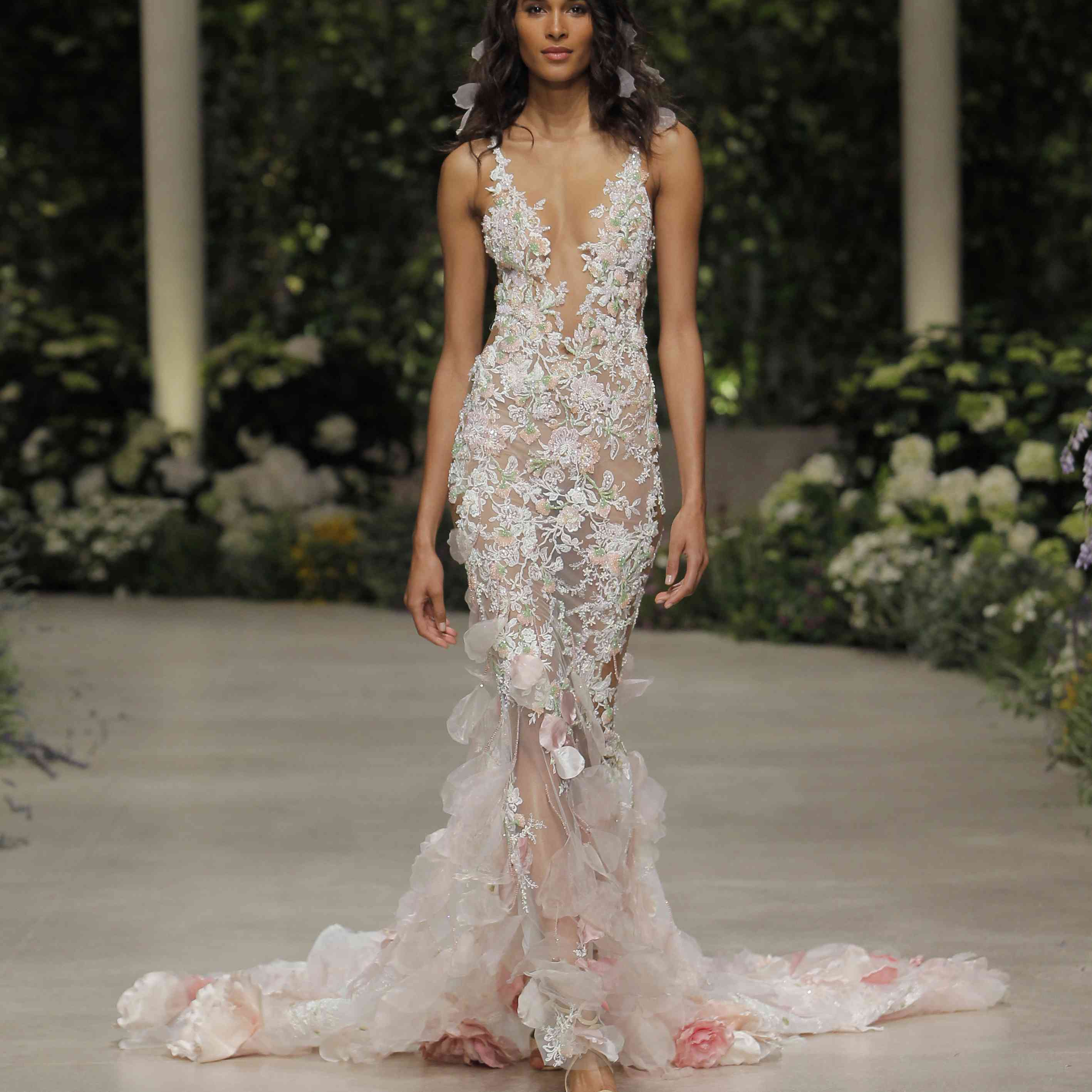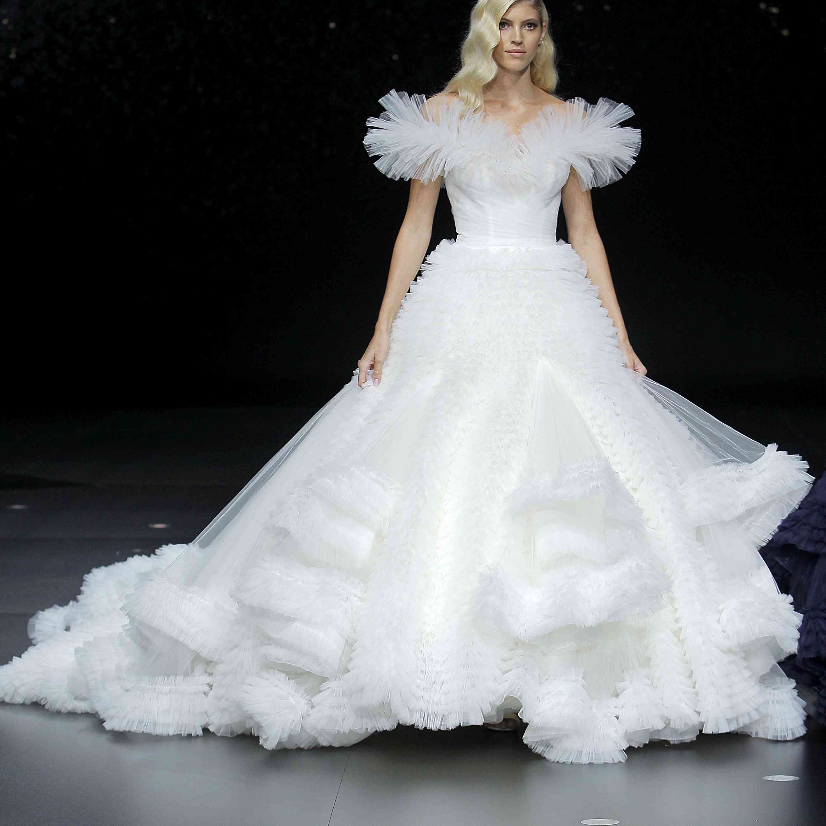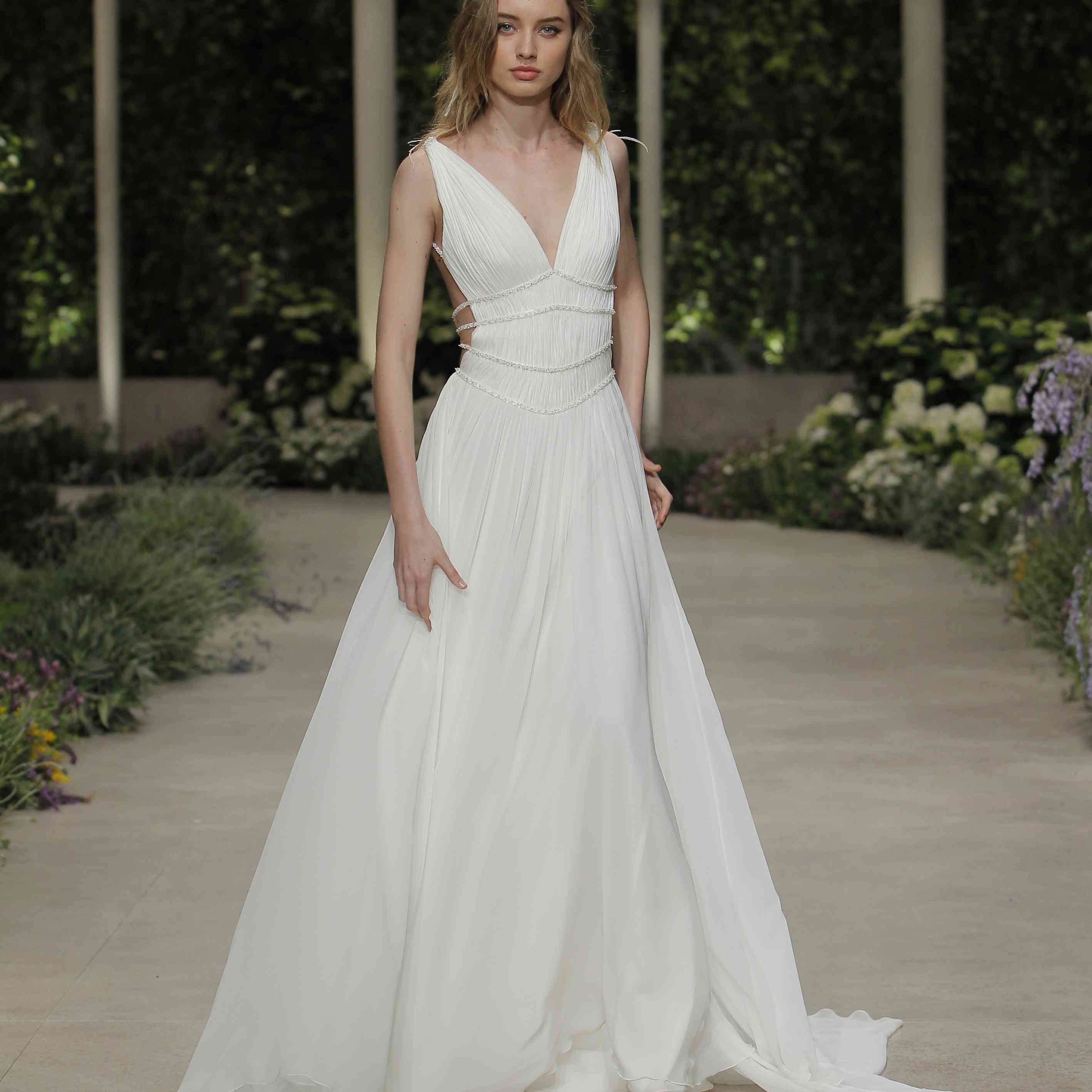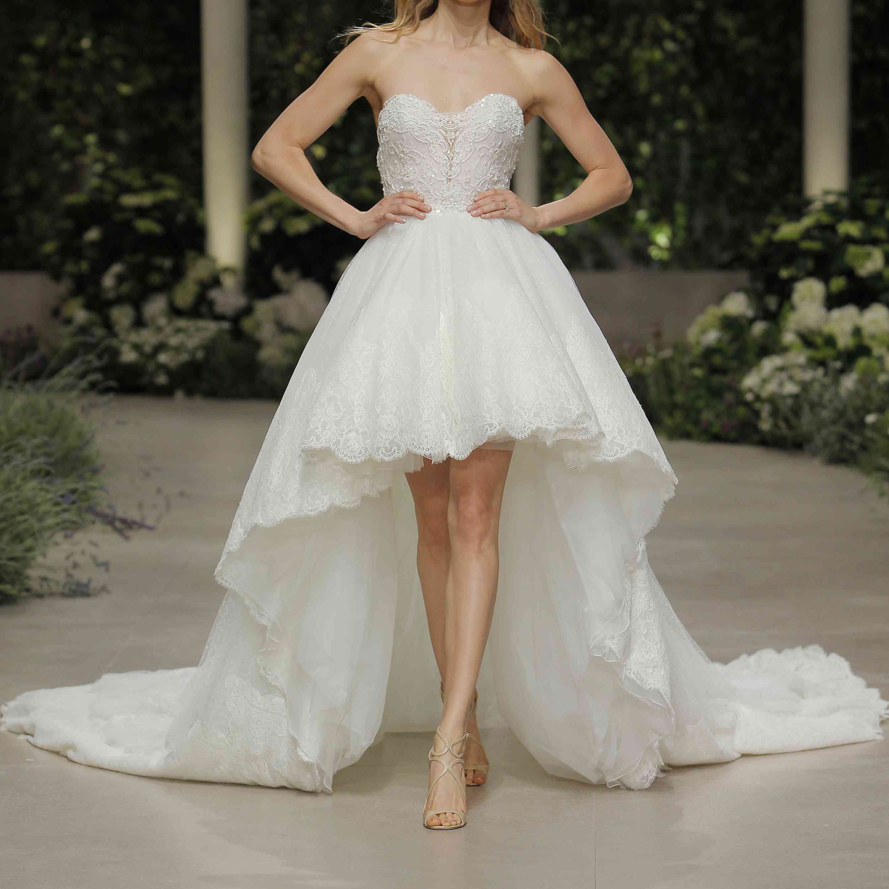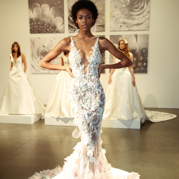 Pronovias是一个家族品牌,最初是巴塞罗那一家高质量的蕾丝和丝绸面料店。快进到2020年,Pronovias在全球拥有50多家特许经营权,他们令人神往的礼服被无数的顶级名人穿过。Pronovias的首席艺术总监亚历山德拉·里纳乌多(Alessandra Rinaudo)以喜爱精致的面料和凸显身体轮廓而闻名,她设计的系列设计能让所有新娘在婚礼当天都感觉特别。
