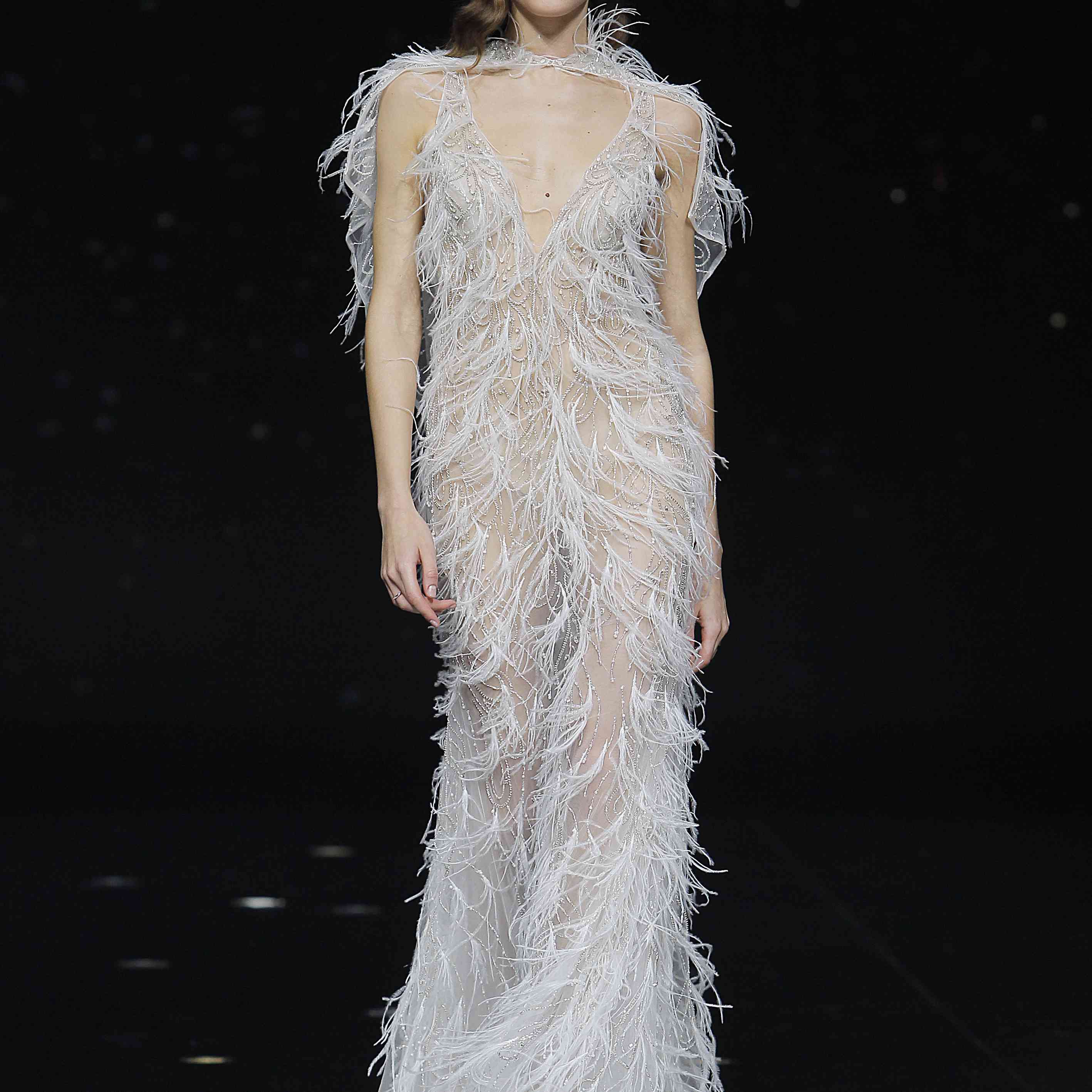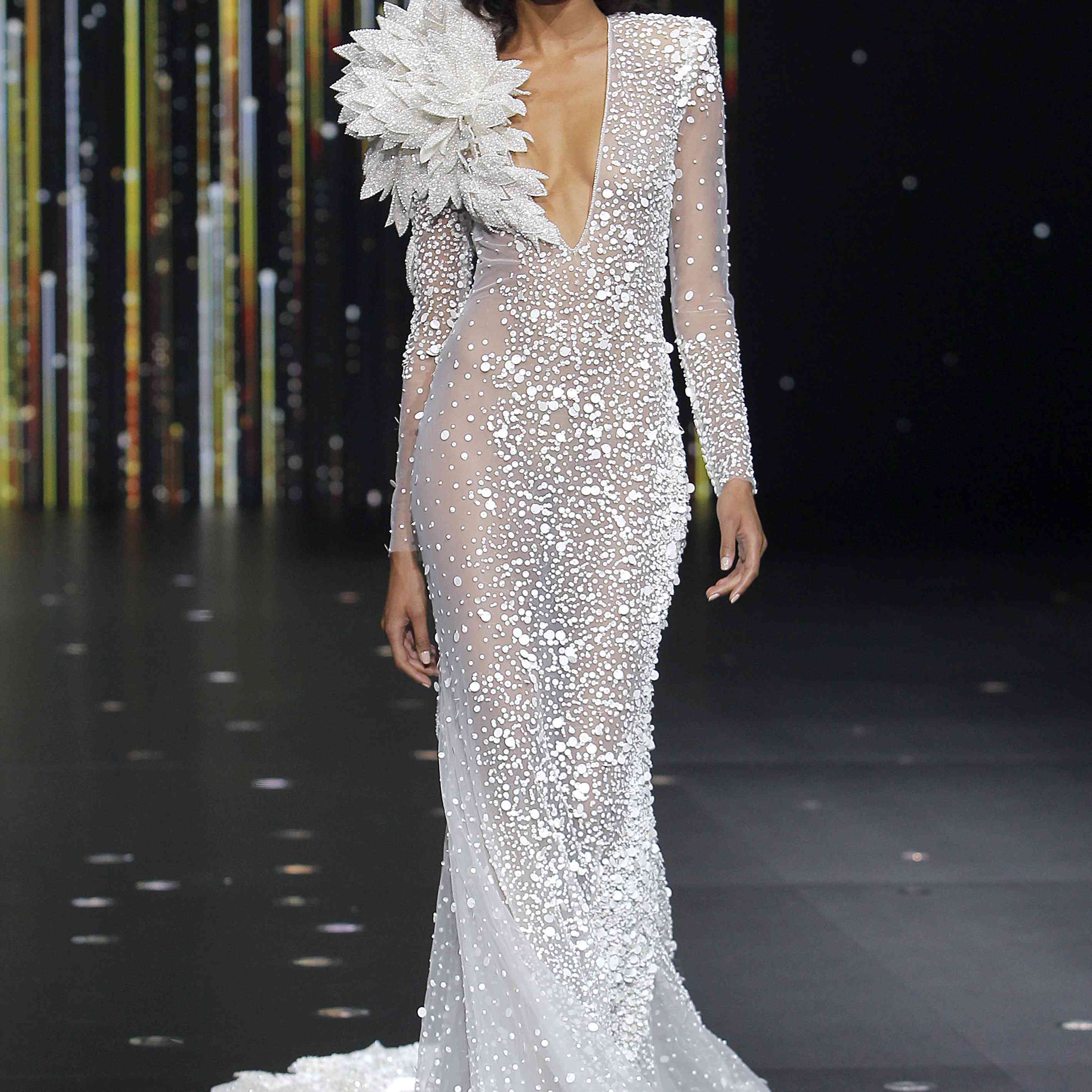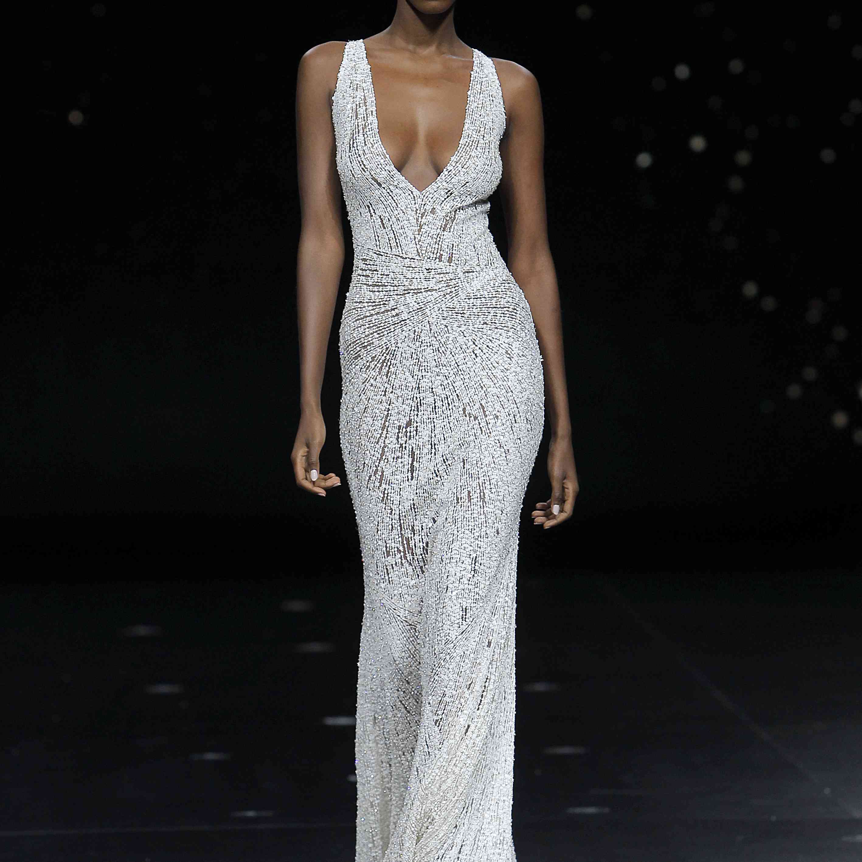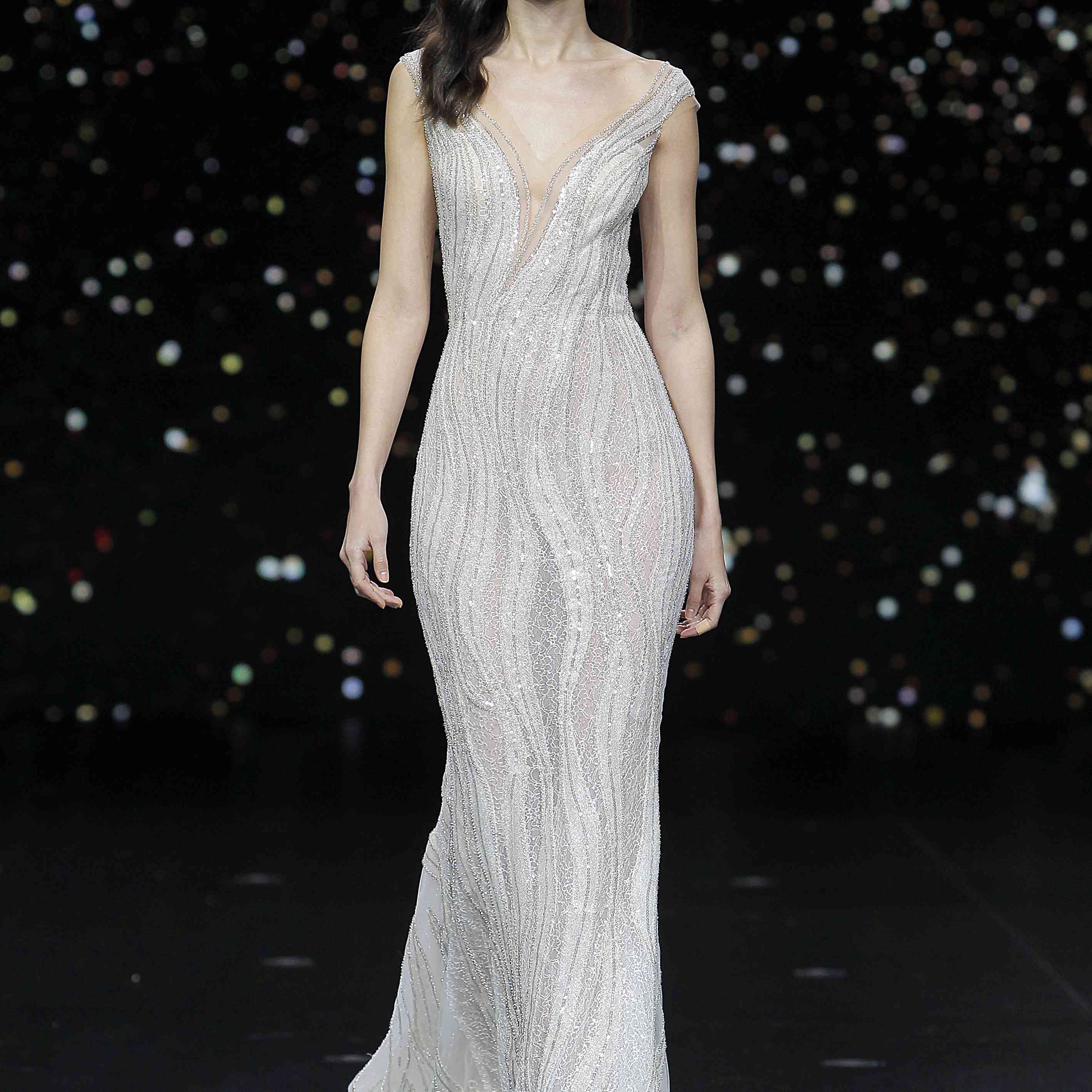 令人眼花缭乱的“超越星辰”系列在巴塞罗那新娘时装周和纽约新娘时装周上展出,其灵感来自所有天体。下面你会看到闪闪发光的礼服用全珠装饰,时尚的建筑风格,和紧身的缎子数字。