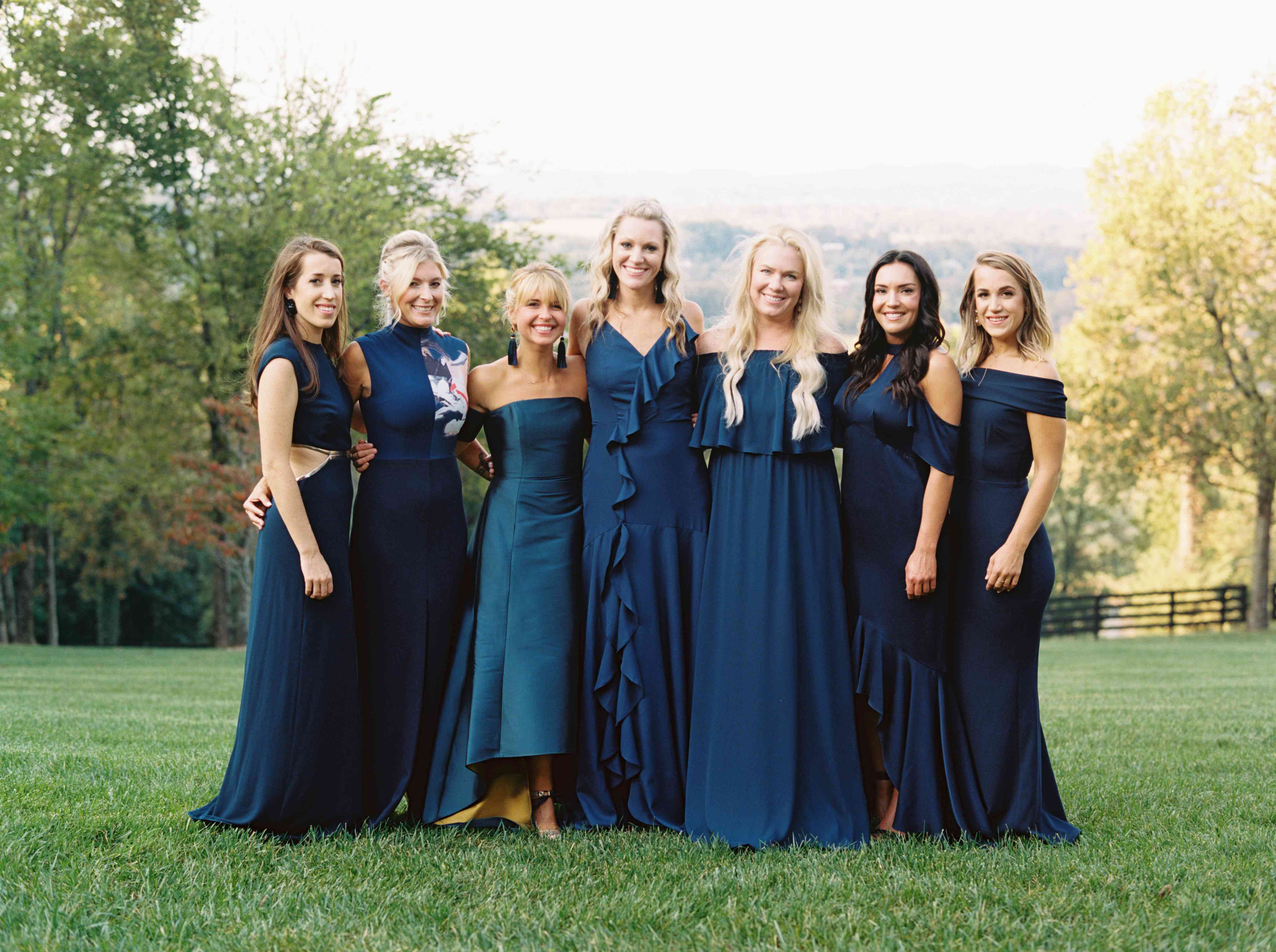 艾丽的两个姐妹,斯隆和莉莉,担任她的伴娘。“我希望她们穿着舒适,让她们选择自己喜欢的裙子,只要是海军蓝的就行,”新娘谈到她们的外貌时说。她还要求她的好朋友们穿海军蓝礼服。