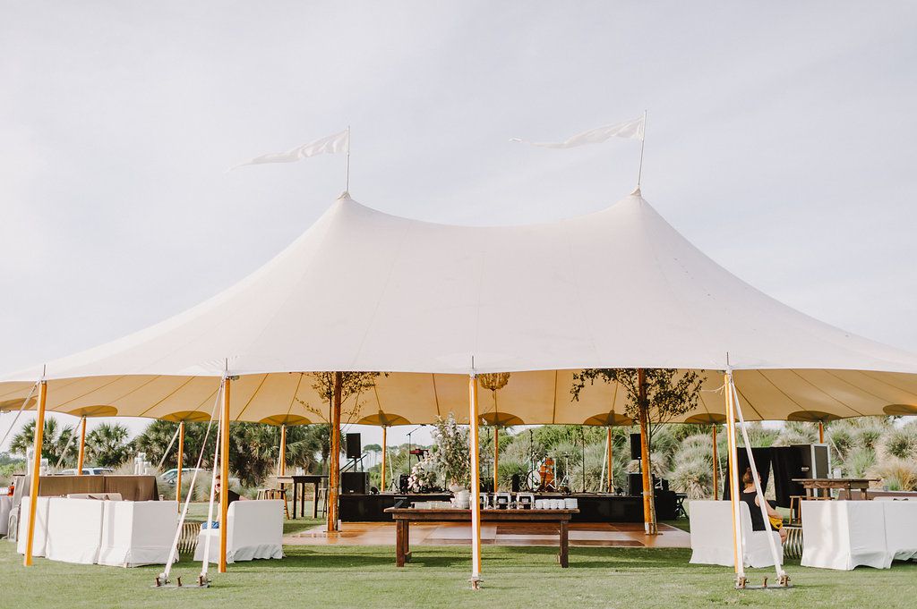 敞开的帆布帐篷为当晚的舞蹈和狂欢提供了完美的环境。三盏牡蛎壳吊灯悬挂在舞池上方,一簇簇的休息室座椅和灯笼充满了整个空间。