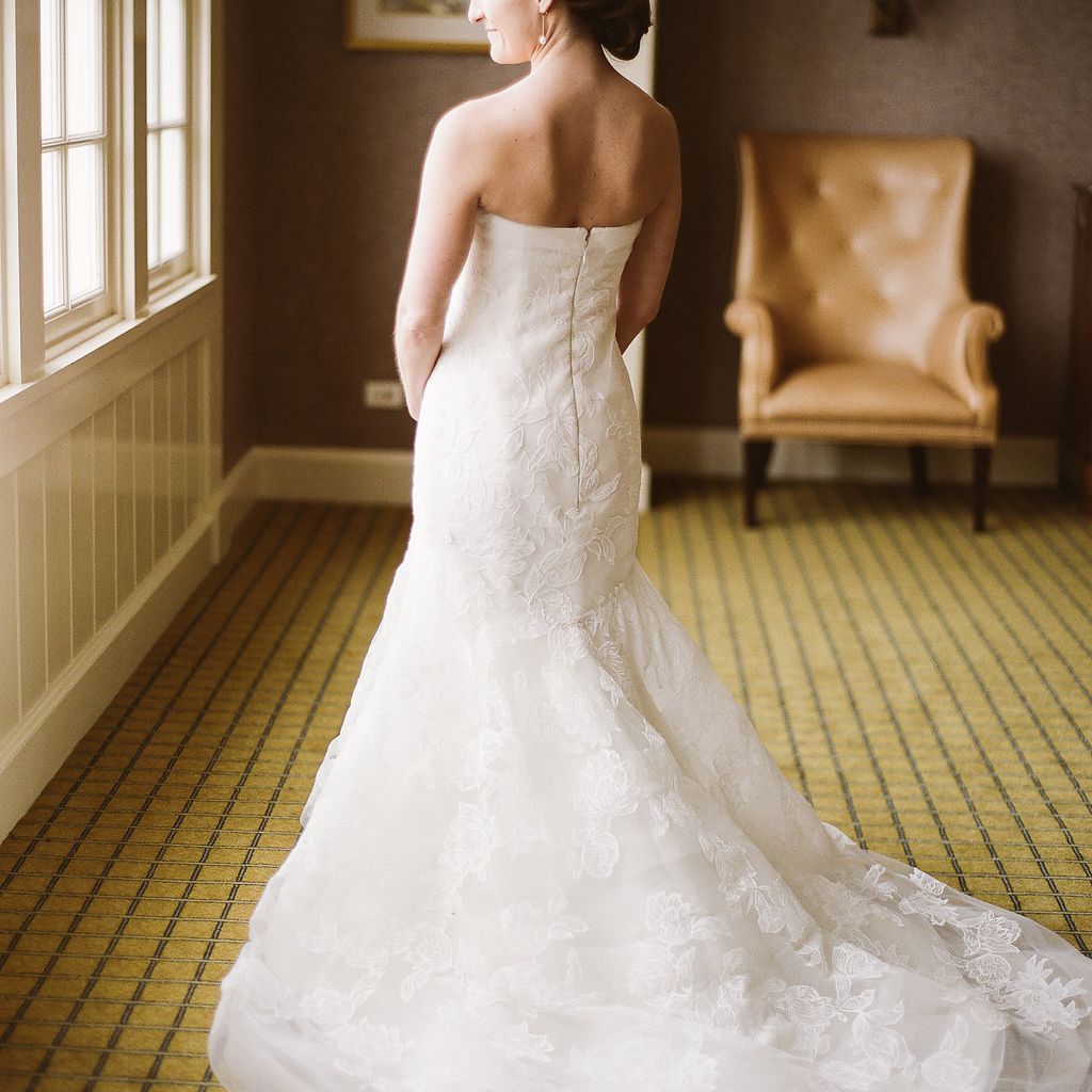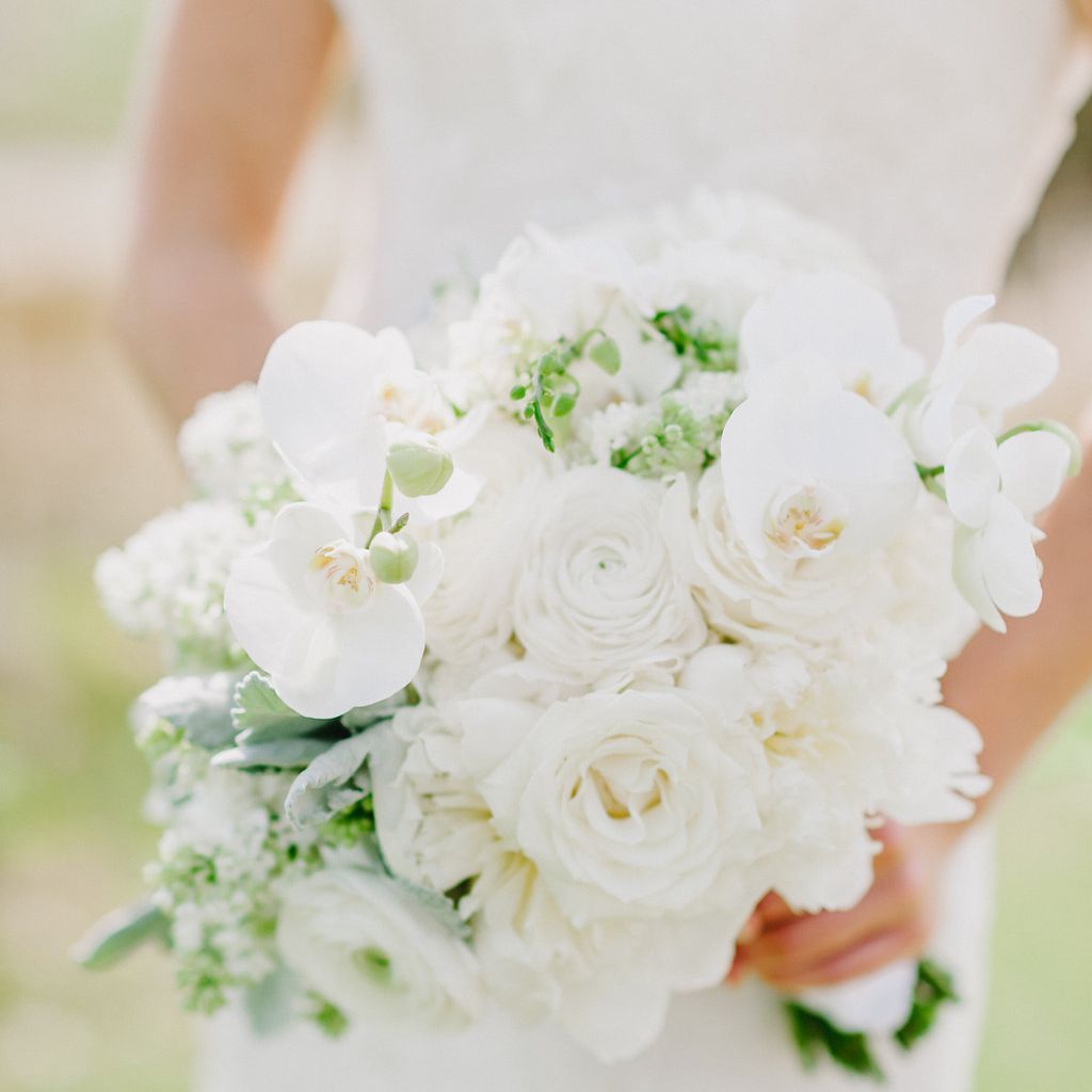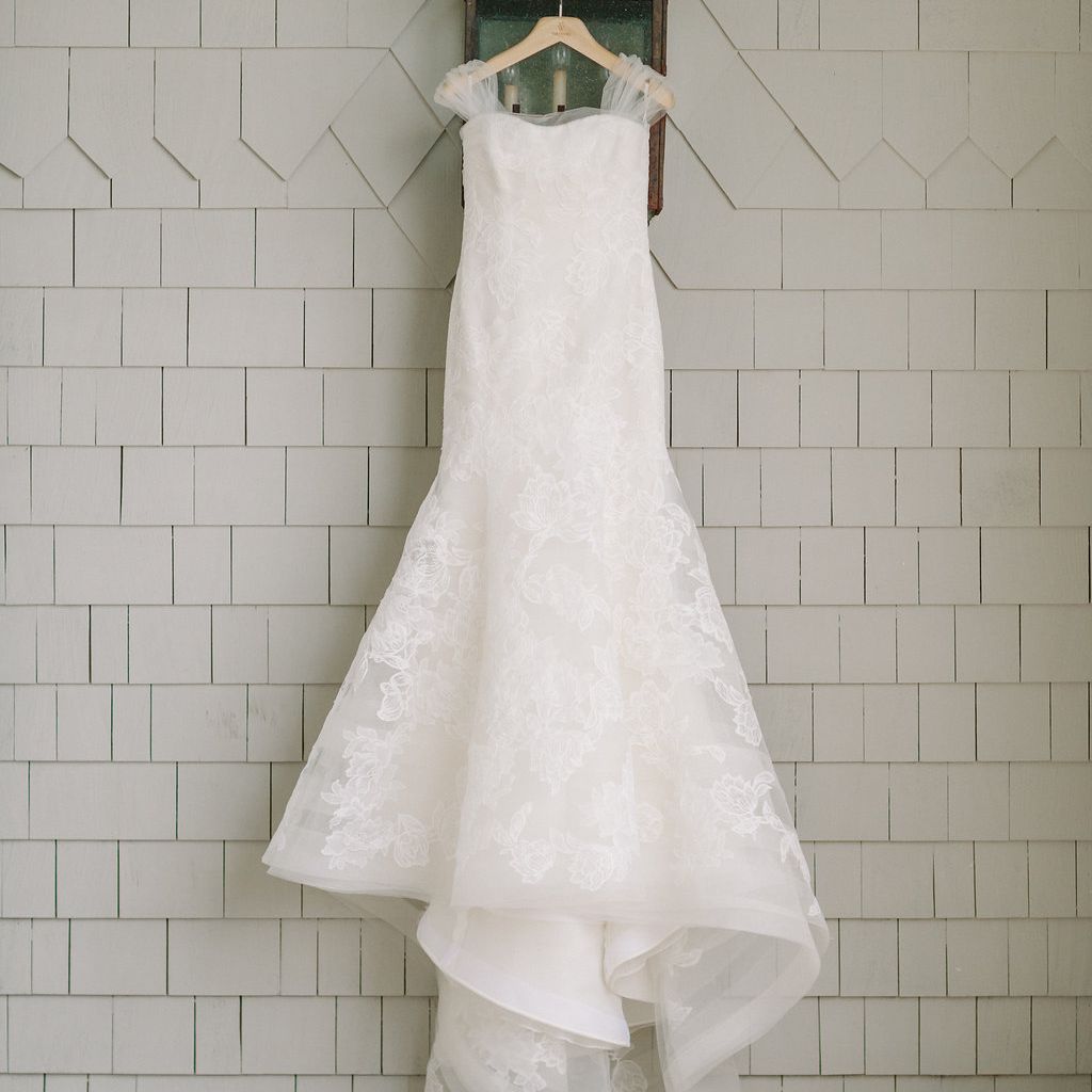 帕特里夏说:“我去过另外两家商店,但我尝过的东西都不喜欢。”“实际上,我是自己去王薇薇(Vera Wang)的,带着几件我想试穿的特定服装。它们要简单得多,但当我穿上这条裙子时,我感觉自己就像个新娘。”她为合身的礼服配上了一束全白的兰花、毛茛、花园玫瑰、丁香和甜豌豆。满是灰尘的米勒树叶增添了一抹绿灰色的对比。