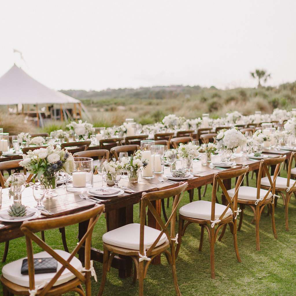 为了让他们的客人享受一个像度假一样的周末(不需要长途旅行),这对夫妇选择了位于Kiawah岛作为他们2016年4月30日婚礼的背景。“这是接近查尔斯顿,有令人难以置信的海景,让我们尽可能多地留在外面的婚礼上,“Patricia说。他们选择简单地利用白花和柔软的灰色口音,以及像多肉植物和海草等自然元素。的设计,Regan的活动,是一个完美的匹配,令人惊叹的位置,和照片朱莉·利文斯顿摄影是证明!