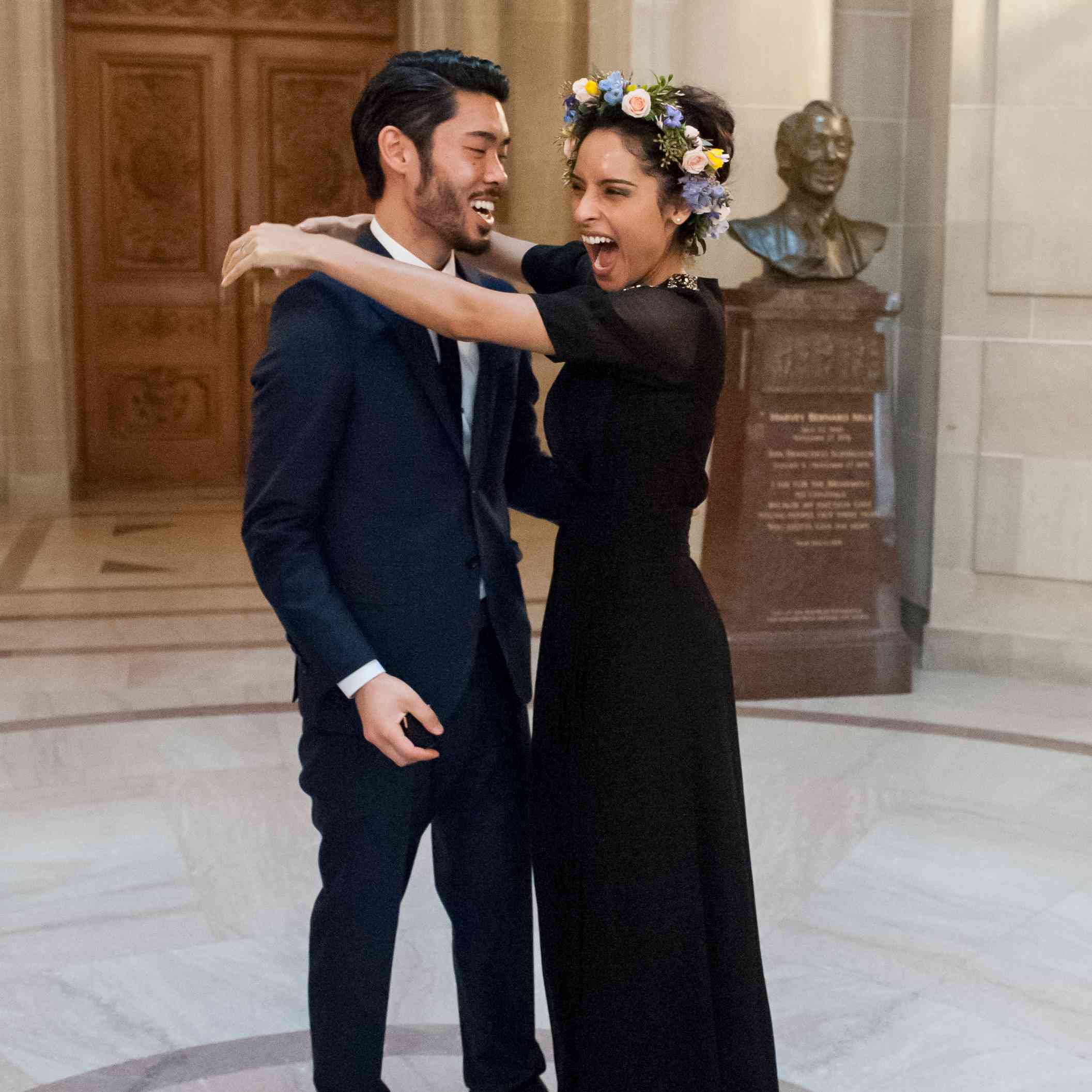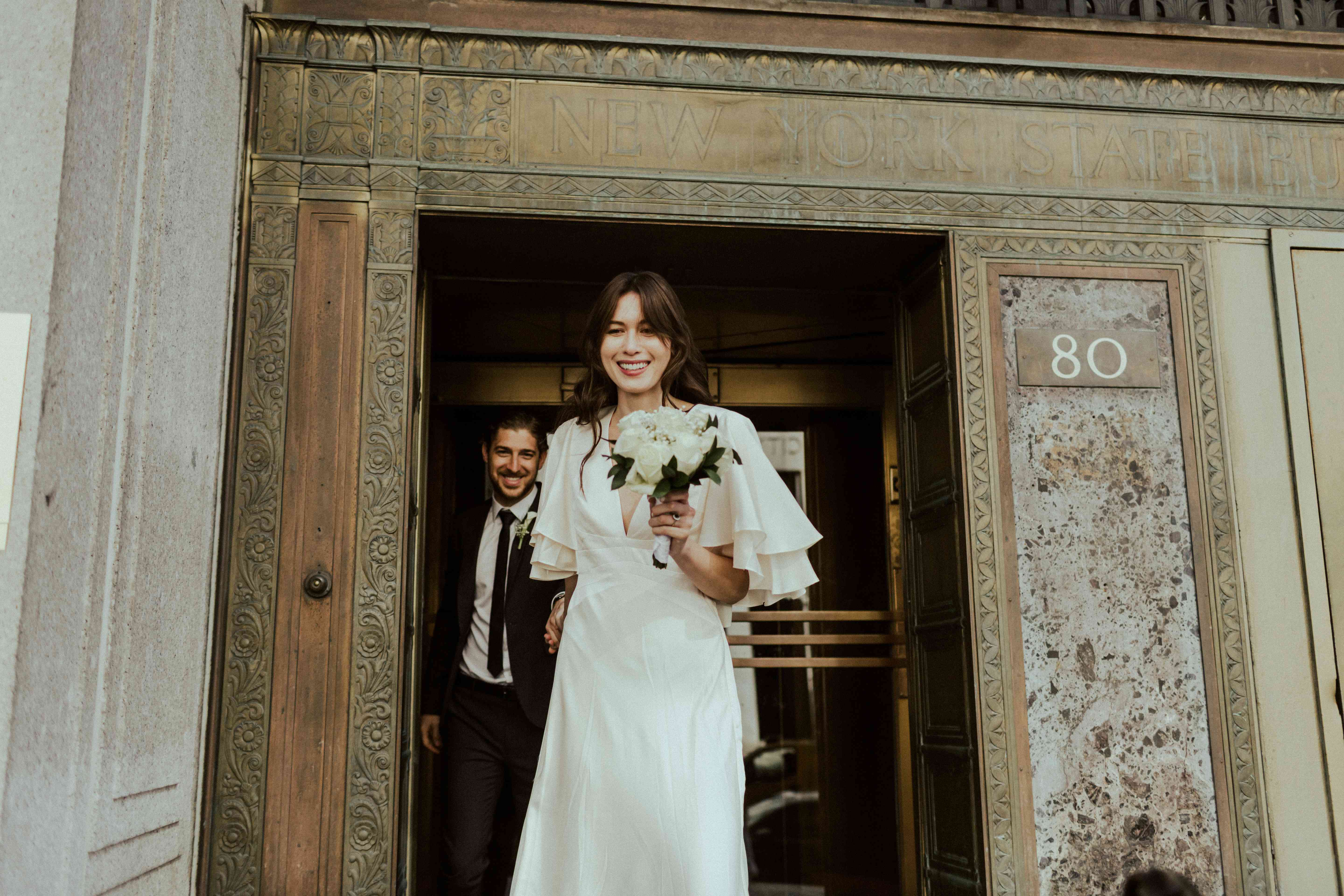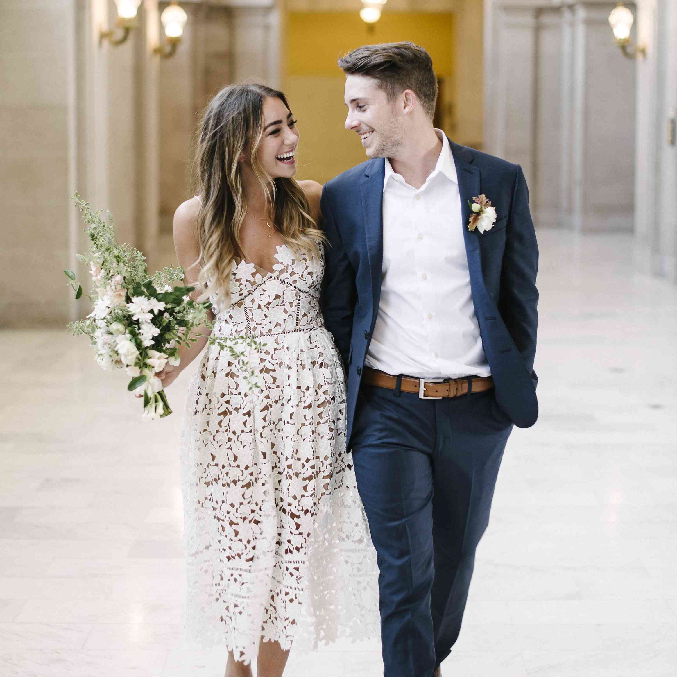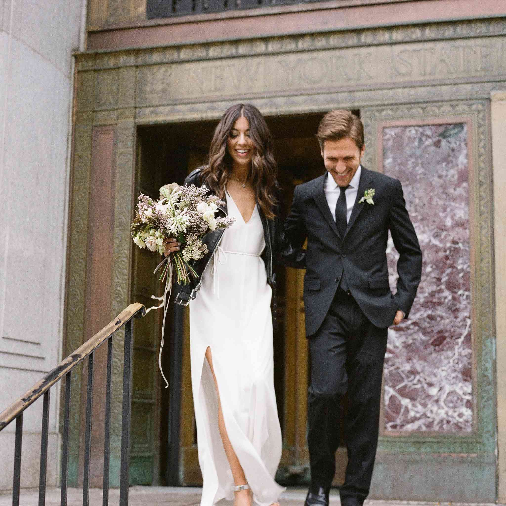 虽然您可能不会用妆容和400个Bobby Pins的脸部旁边的店员脱颖而出,但您仍然希望自己的外观特别特别:“市政厅的婚礼具有纯正而真实的氛围,”洛杉矶发型师说。克莱顿·霍金斯(Clayton Hawkins)。“您正在寻求较少的,仅仅是您的方法。”